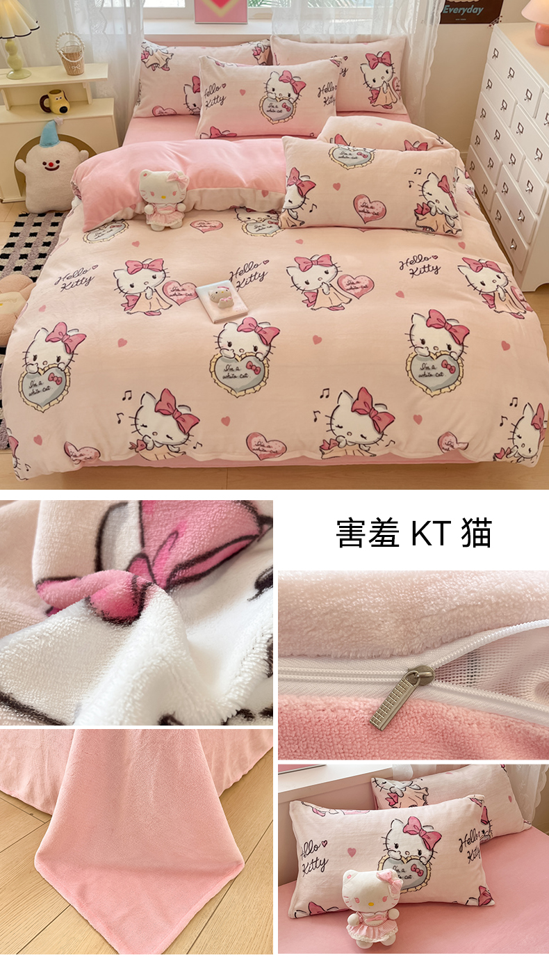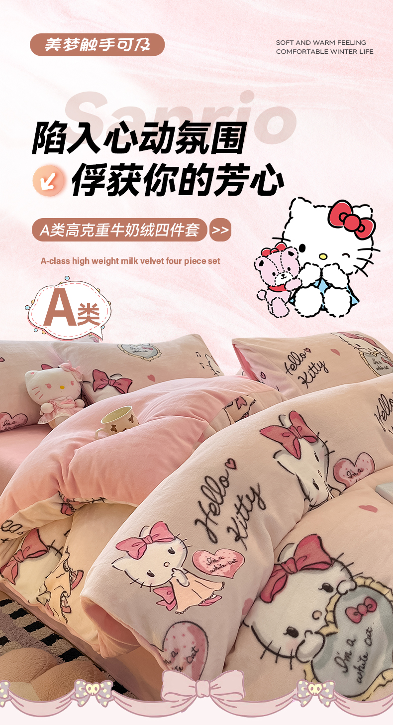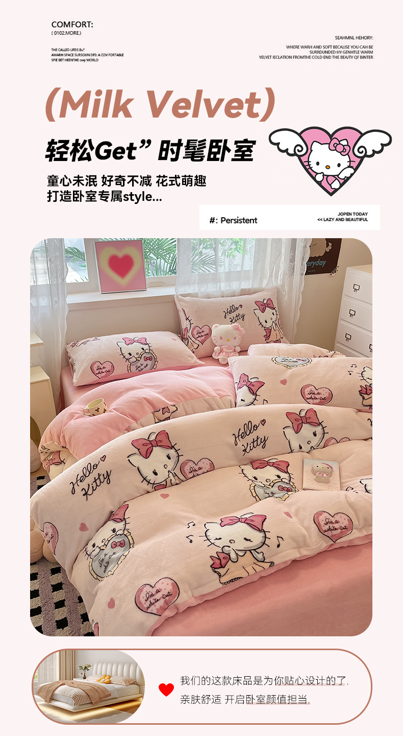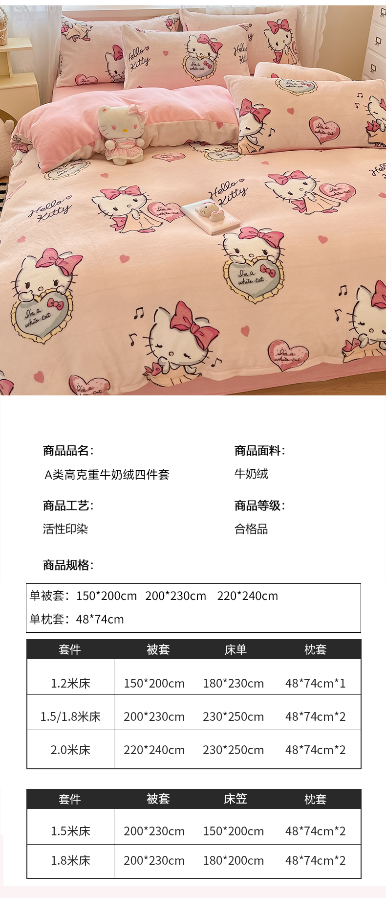 (总)佰亿莱 2025新款重工牛奶绒贴布绣四件套,豹纹KT猫-咖,豹纹KT猫-蓝,快乐朋友,礼物狗狗,猫咪公主,木马猫咪-小粉格