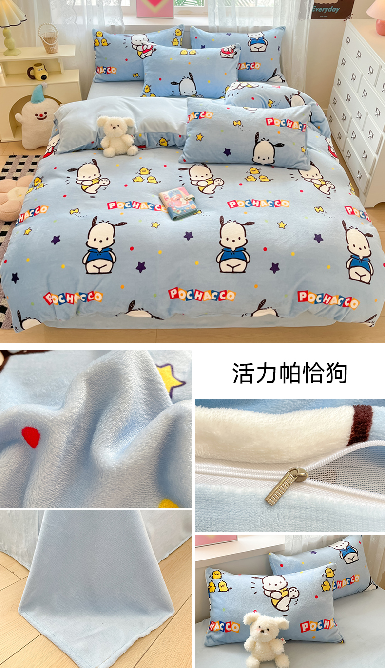 (总)佰亿莱 2025新款牛奶绒豆豆绒印花床盖四件套,百富蓝,豹纹狗狗,瑾紫花,可可蓝,猫咪酱,奶油波波,手捧玫瑰,条纹蝴蝶结,旺仔乐园