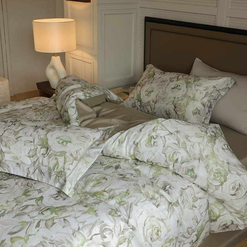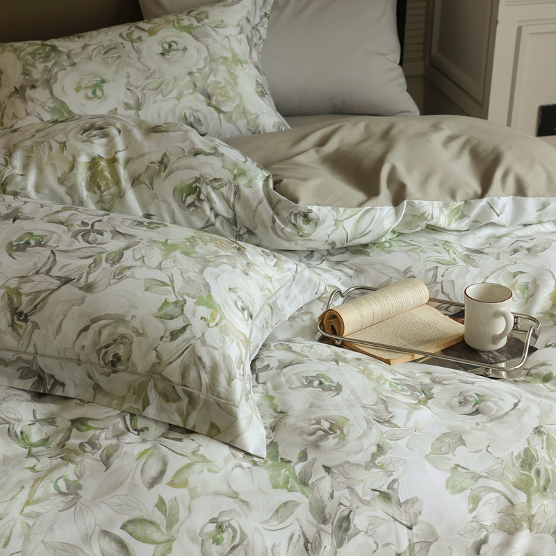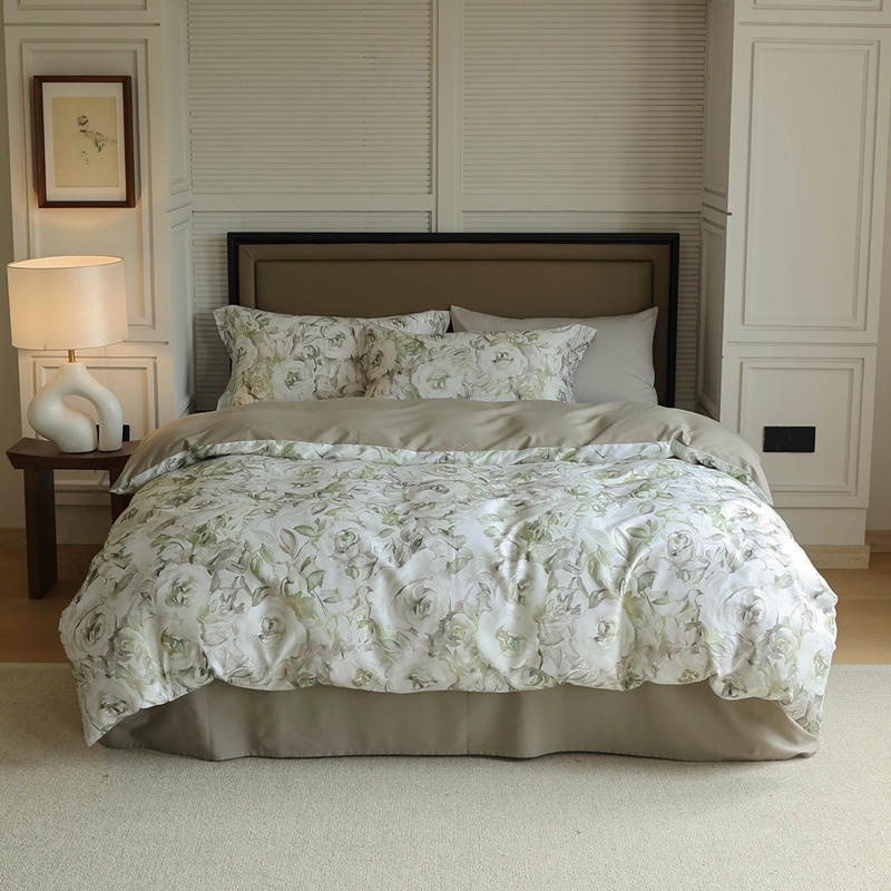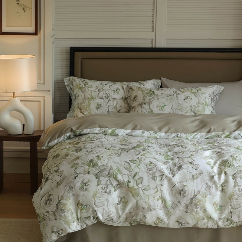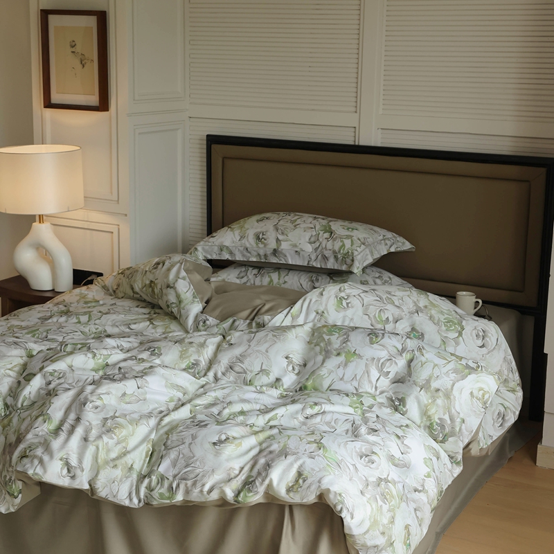 (总)久典家居 2026新款A类全棉纯棉数码印花天丝棉双层纱四件套,锦瑟-咖,锦瑟-绿,锦韵-蓝,锦韵-绿