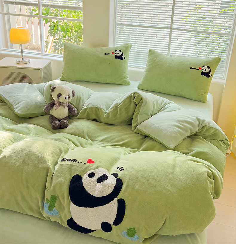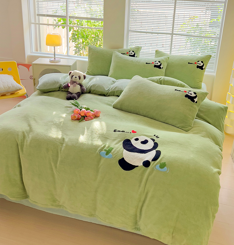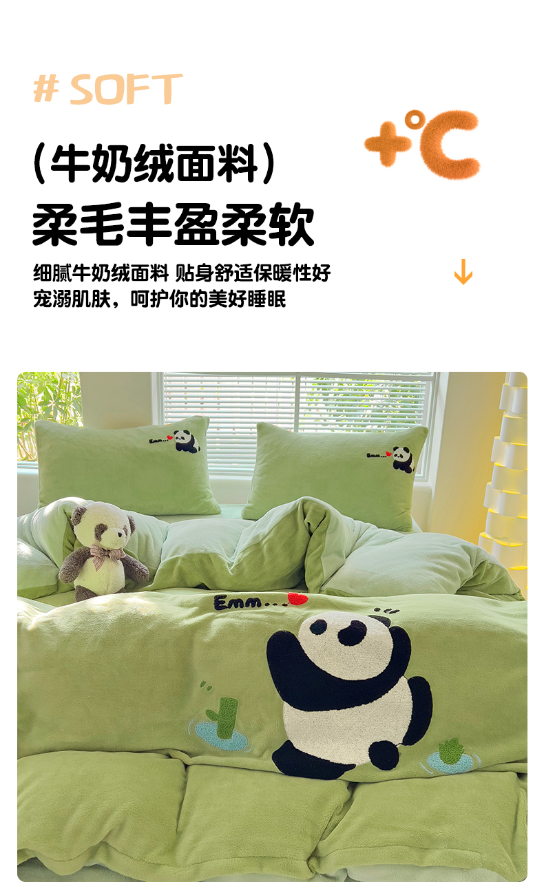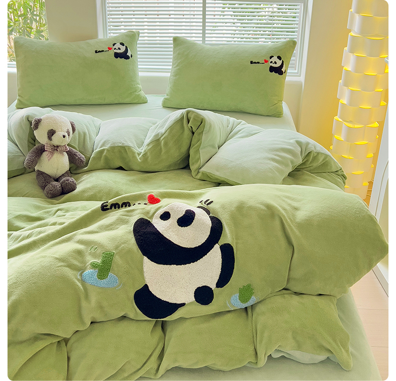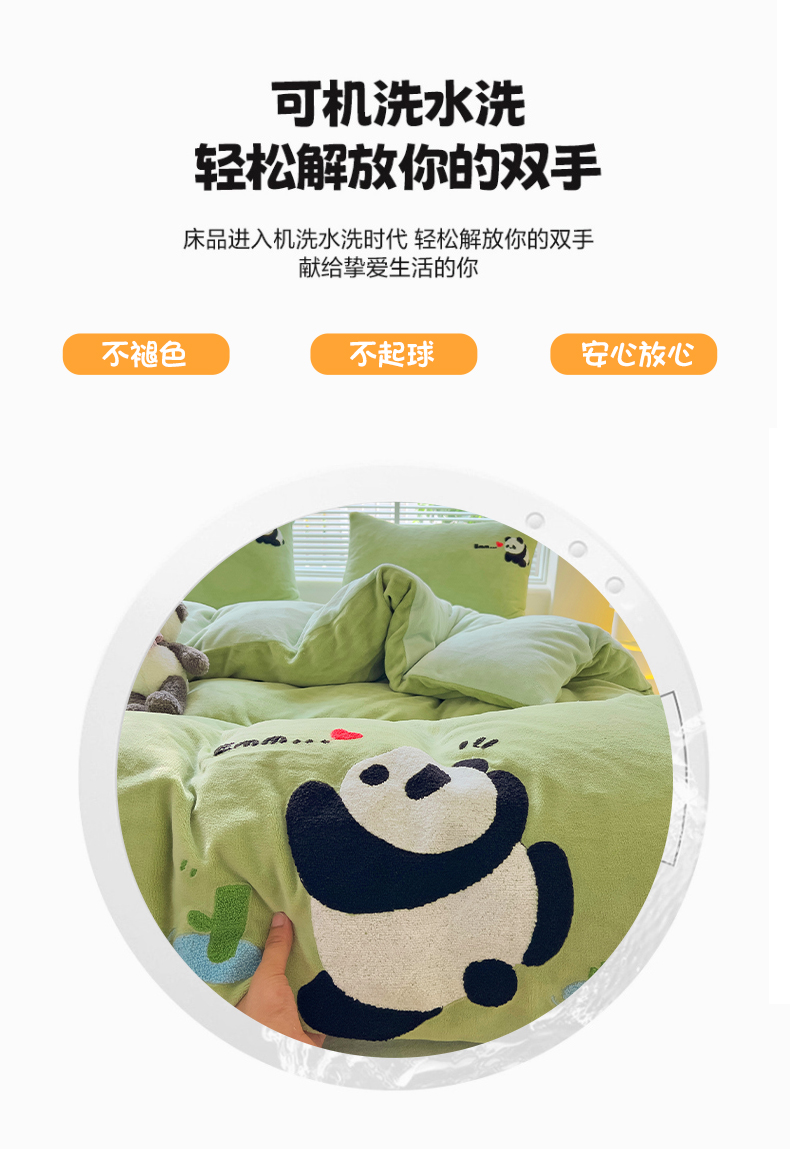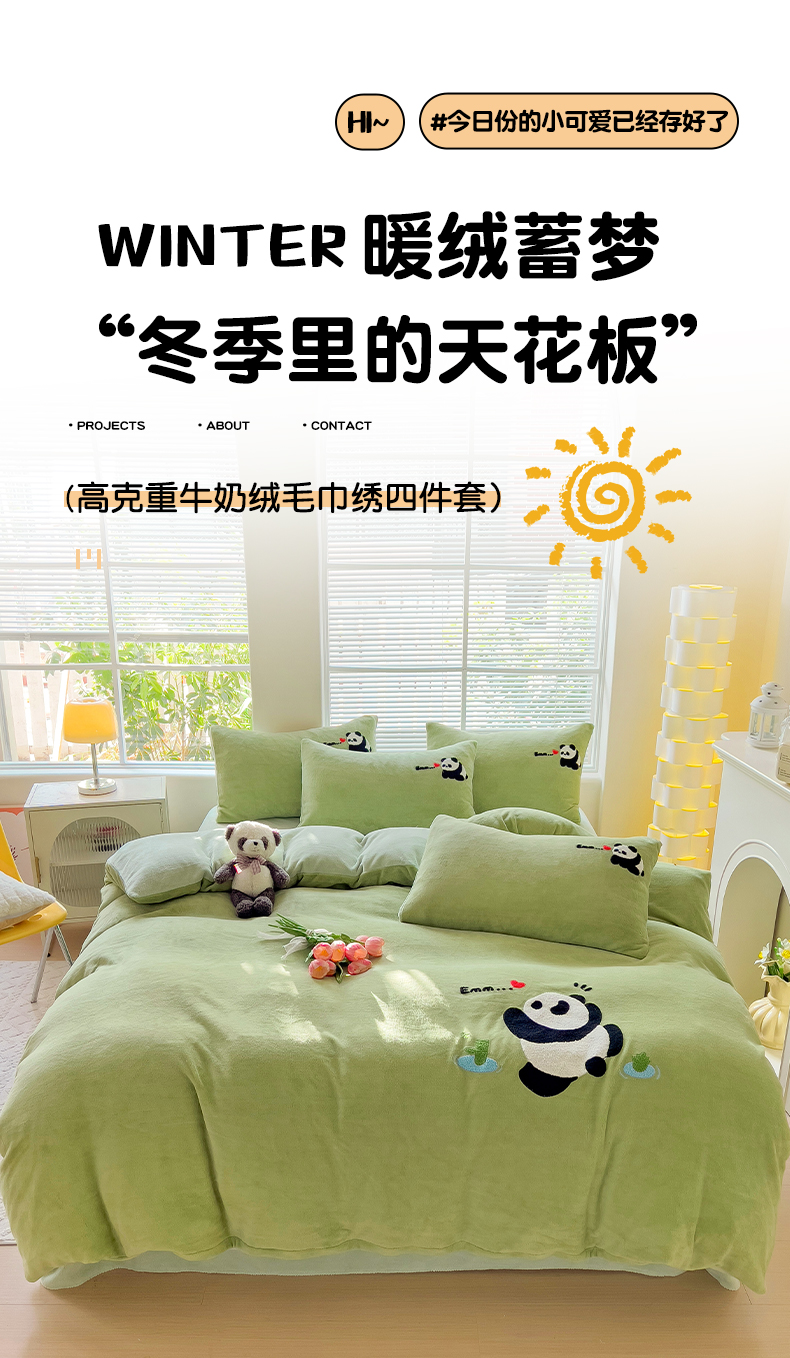 商品名称:卡普二店 2024新款高克重牛奶绒毛巾绣四件套 熊猫宝宝
