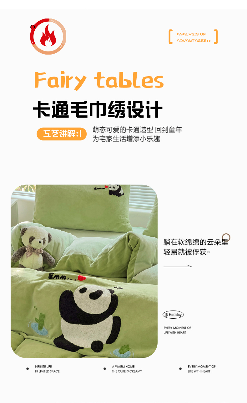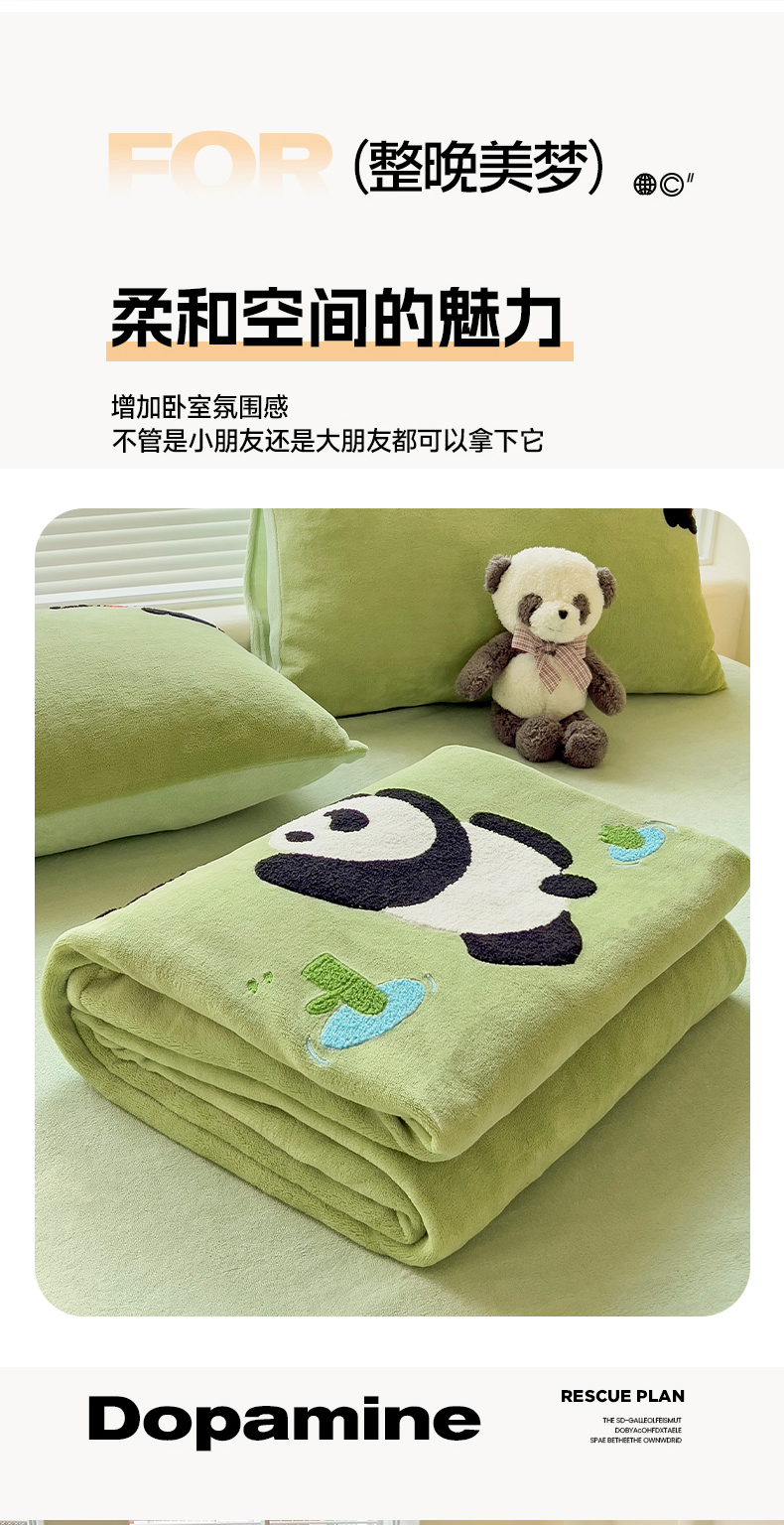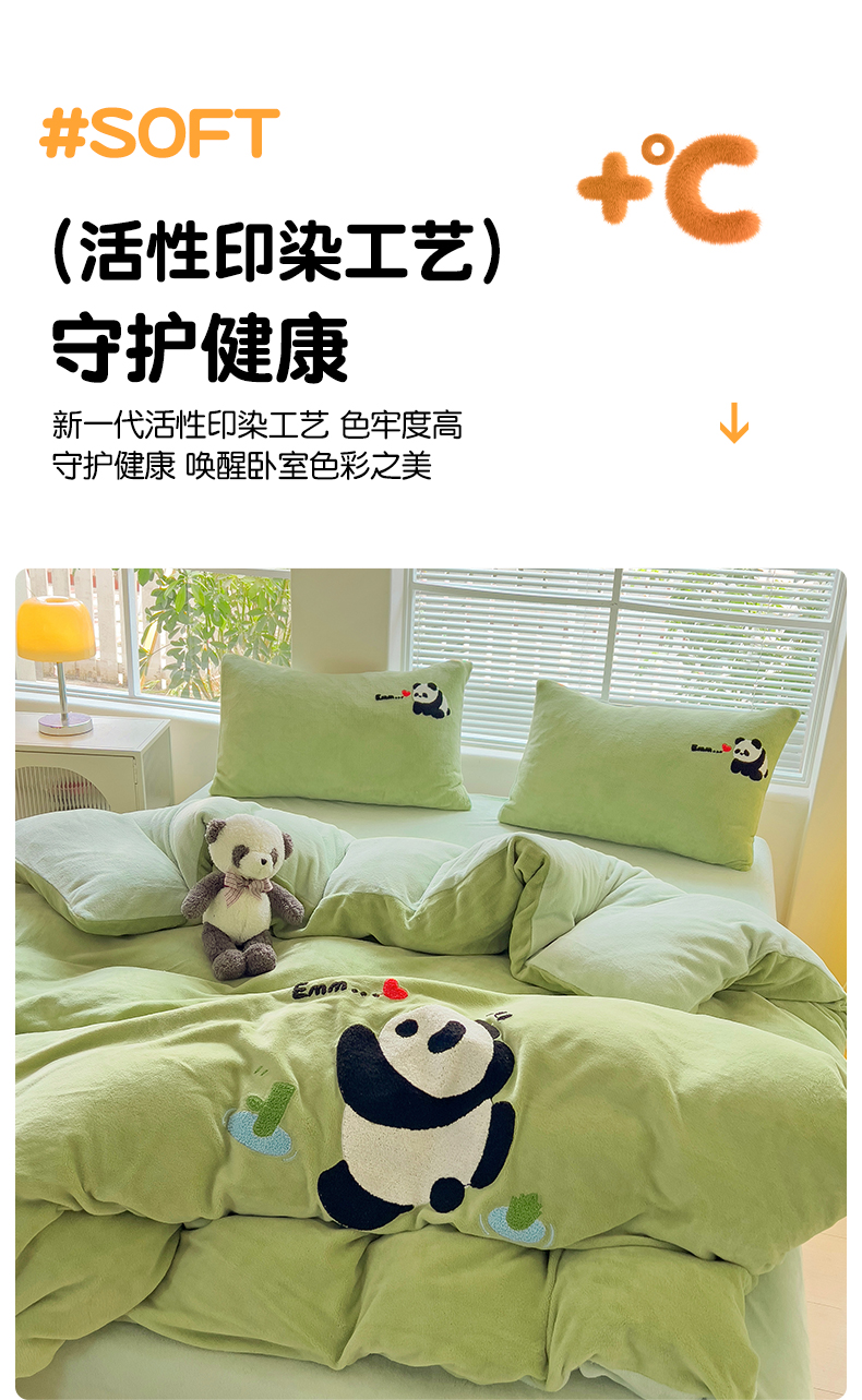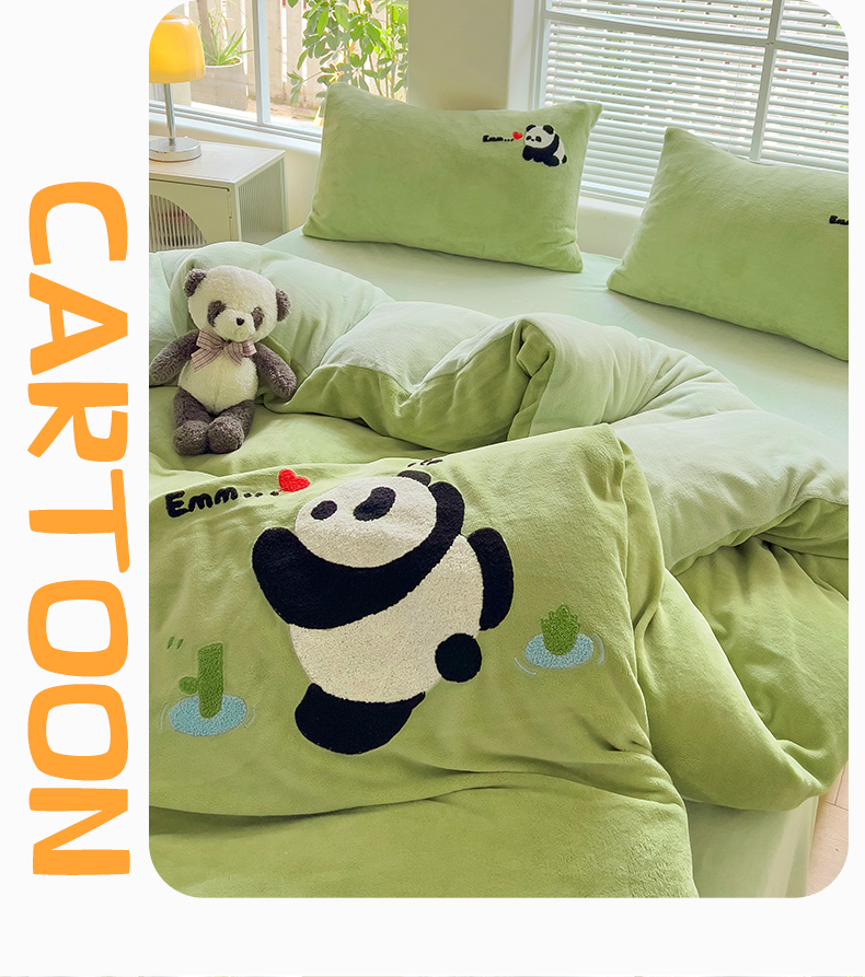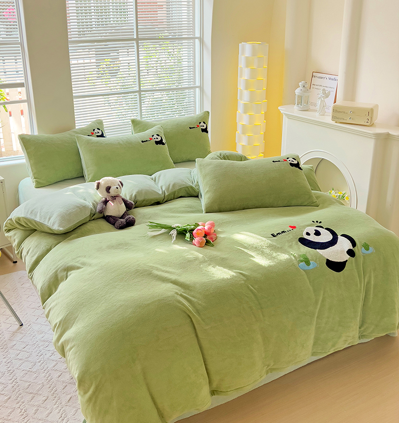 商品名称:卡普二店 2024新款高克重牛奶绒毛巾绣四件套 熊猫宝宝