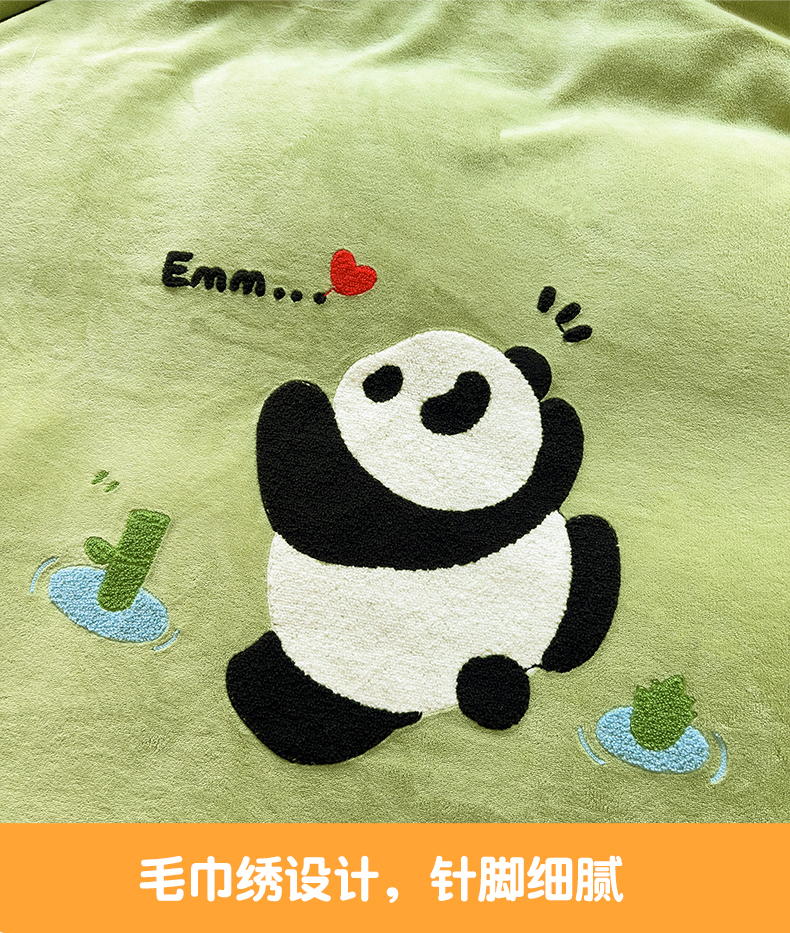 卡普二店 2024新款高克重牛奶绒毛巾绣四件套 熊猫宝宝