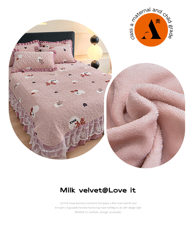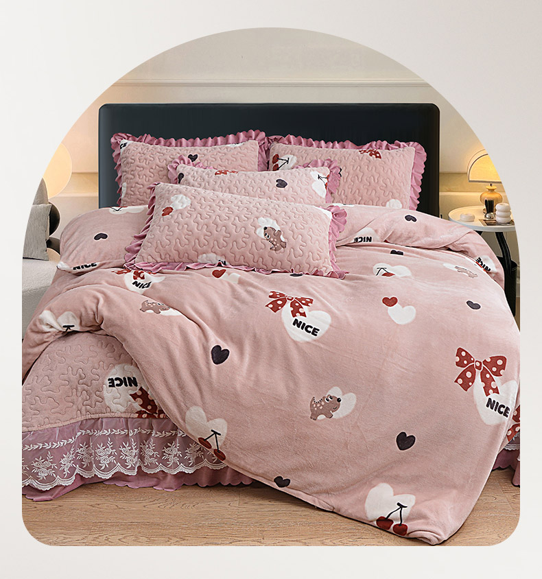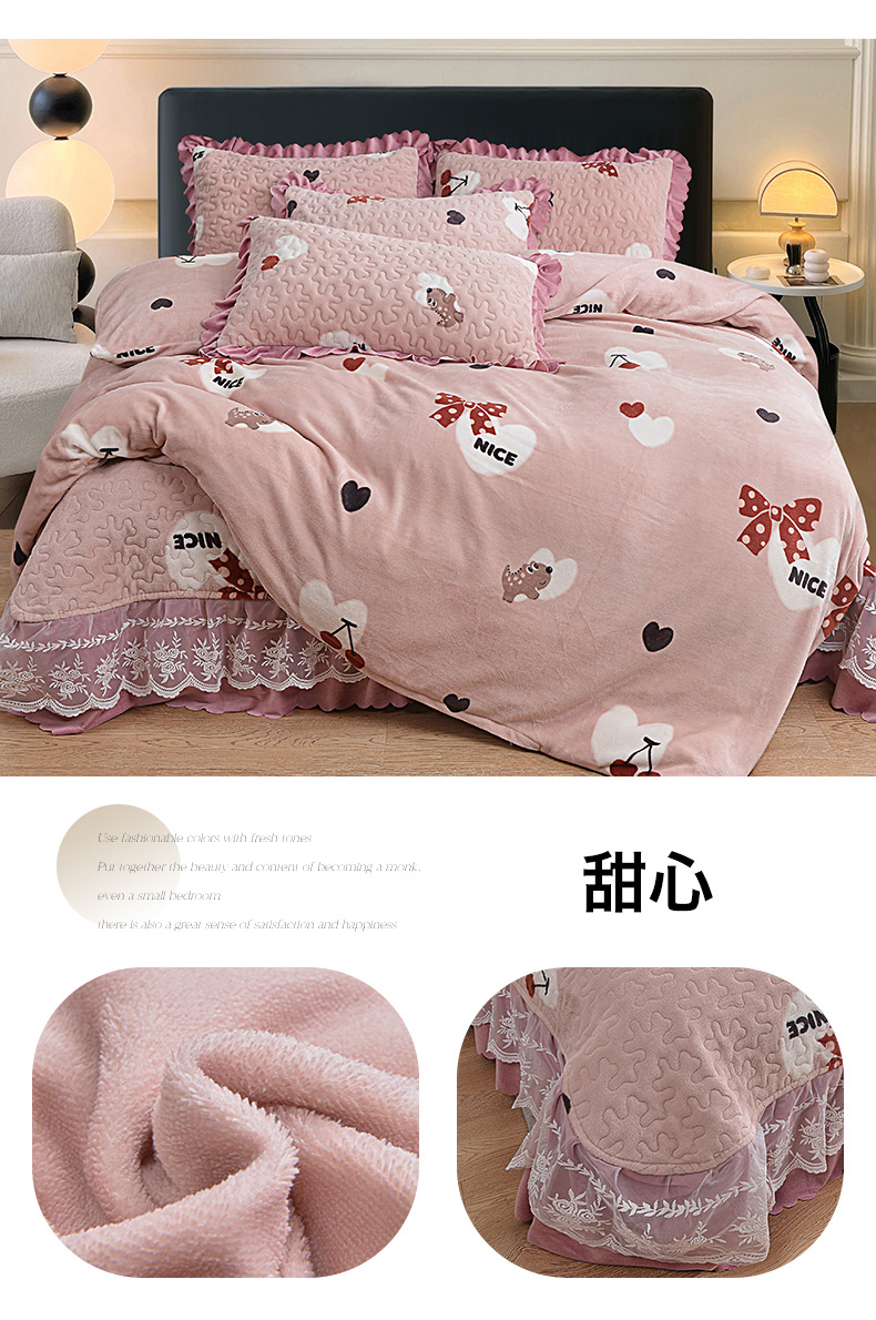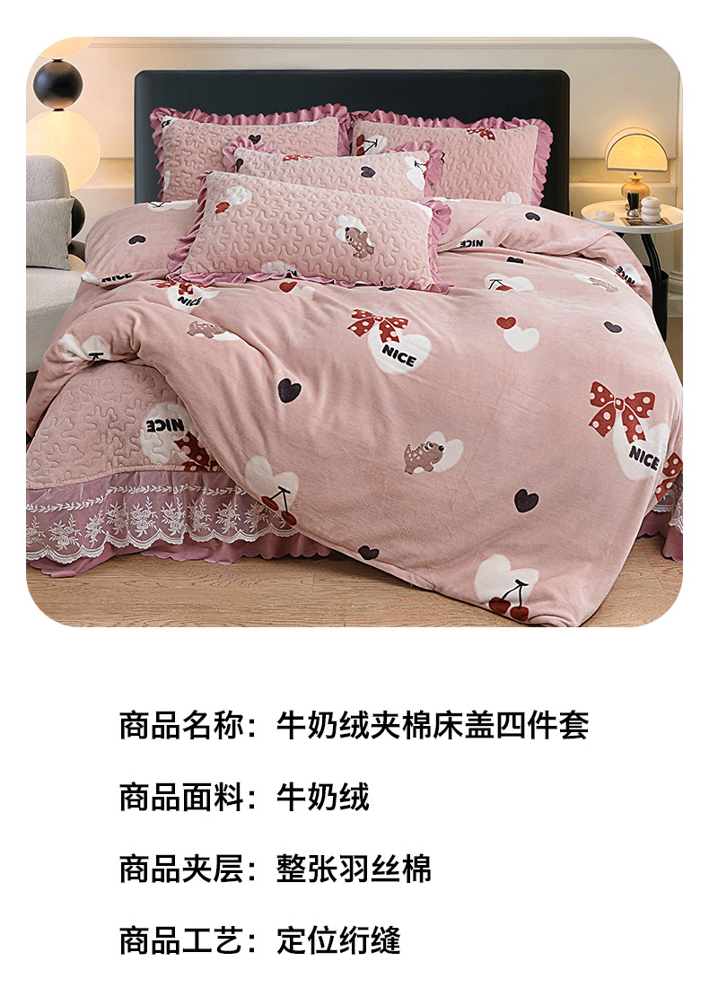 2024新款亲肤牛奶绒夹棉床盖四件套 甜心