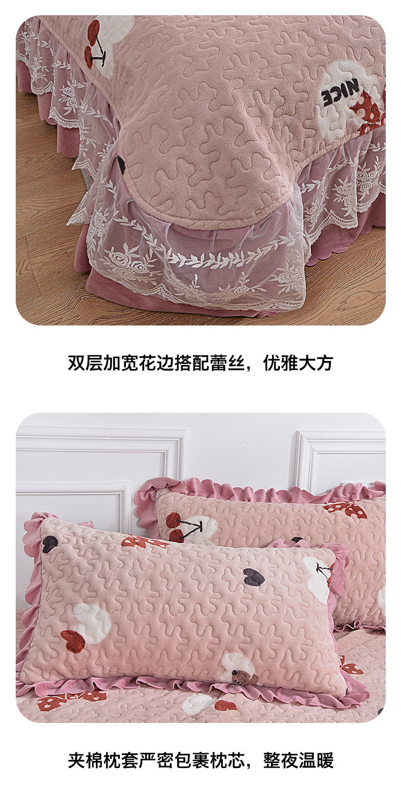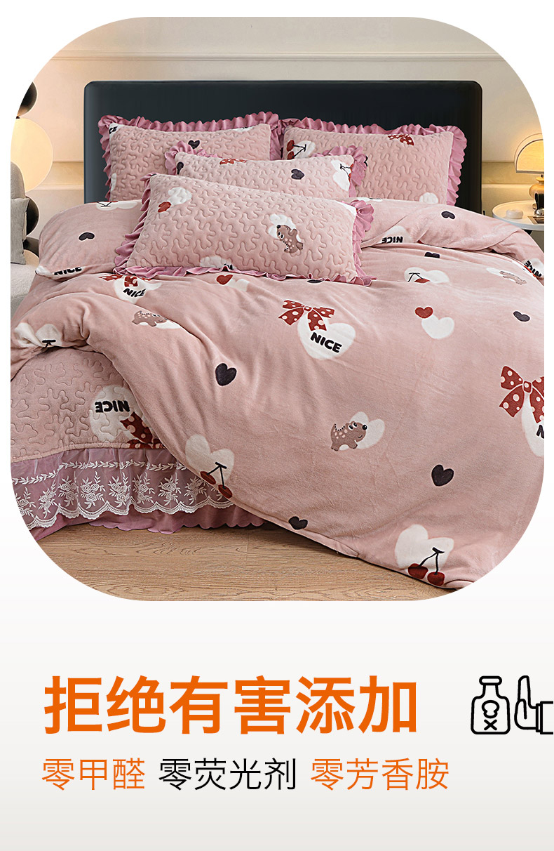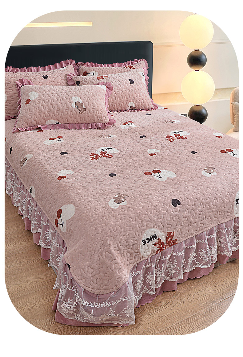 2024新款亲肤牛奶绒夹棉床盖四件套 甜心