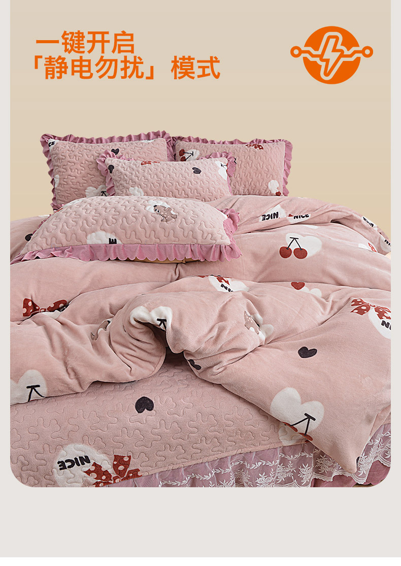 商品名称:2024新款亲肤牛奶绒夹棉床盖四件套 甜心