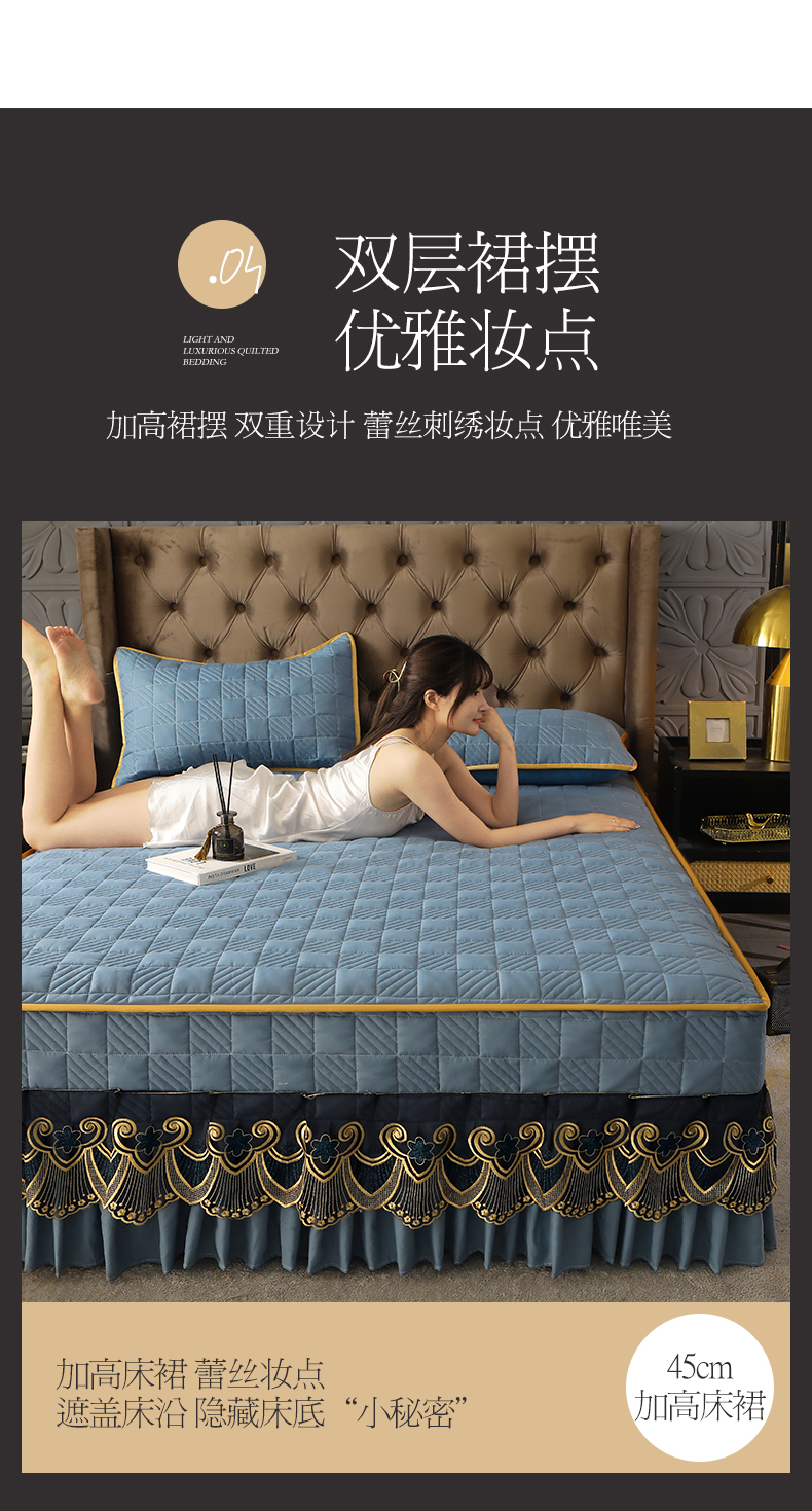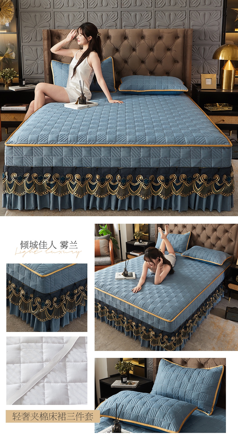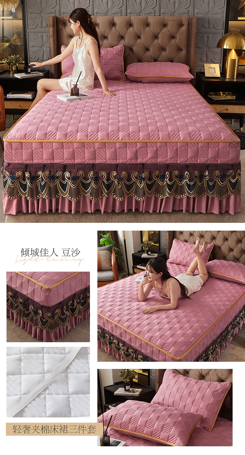 商品名称:(总)锦逸家居 2024新款加厚磨毛轻奢夹棉床裙床笠三件套系列-佳人
