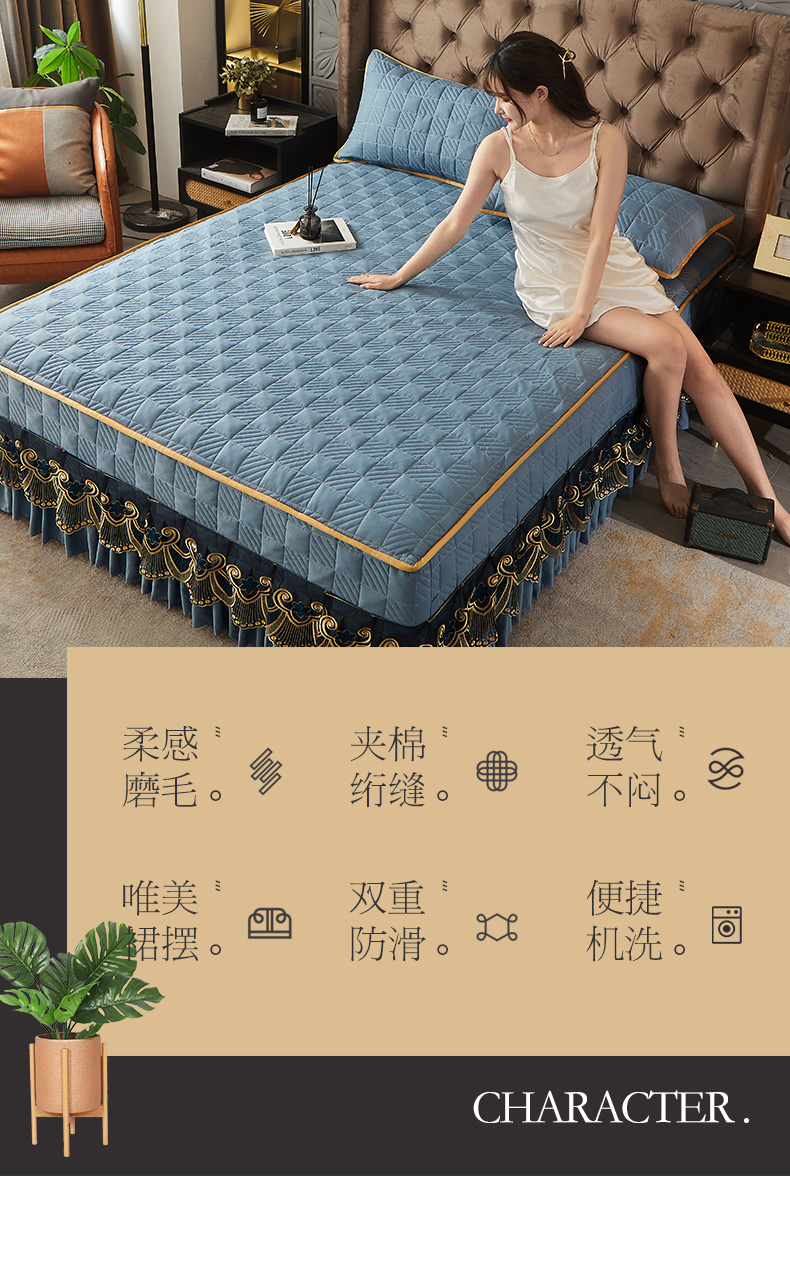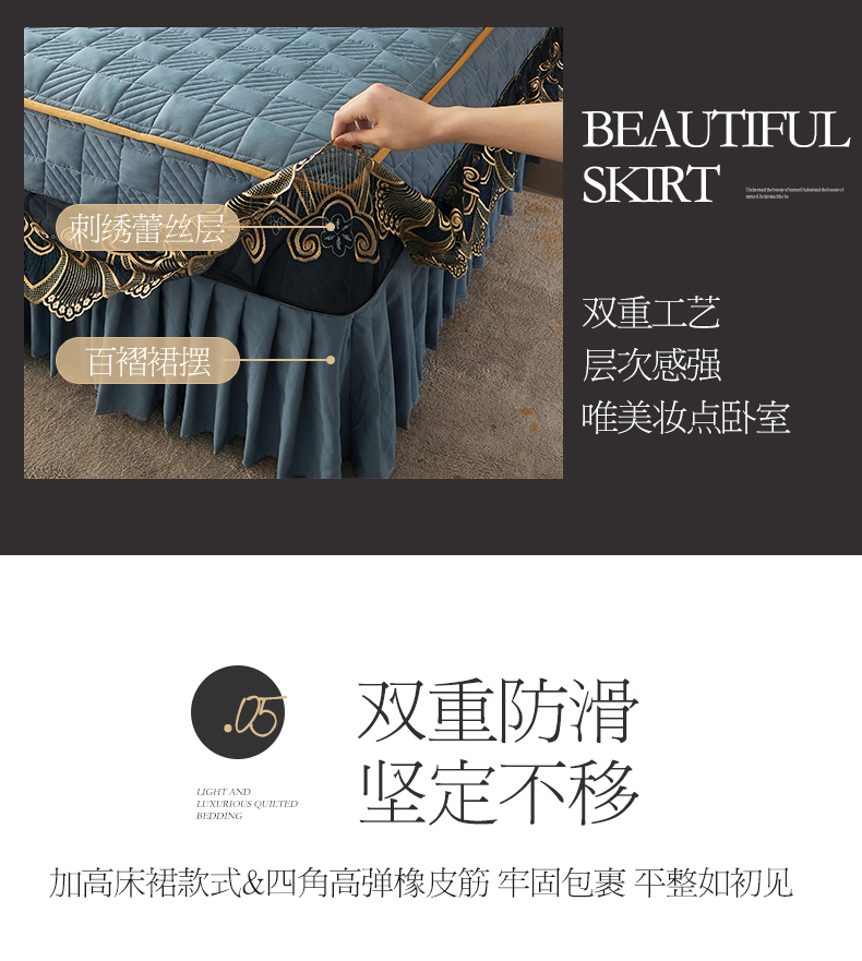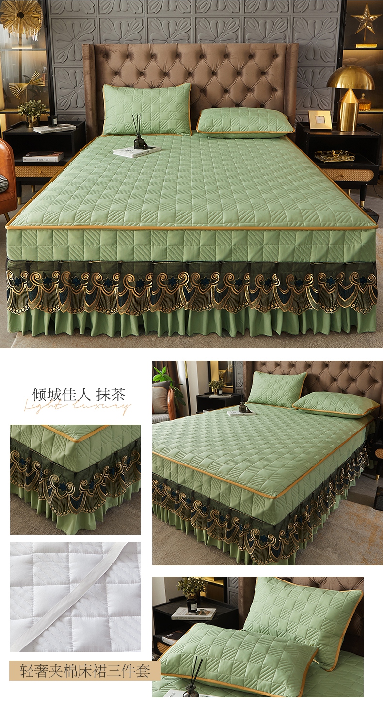 商品名称:(总)锦逸家居 2024新款加厚磨毛轻奢夹棉床裙床笠三件套系列-佳人