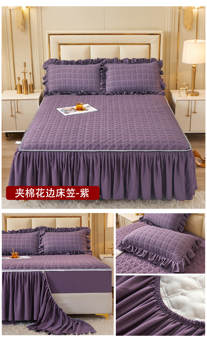 锦逸家居 2024新款可拆卸包边夹棉磨毛花边两用床裙床笠两用-优雅 优雅-梦幻紫