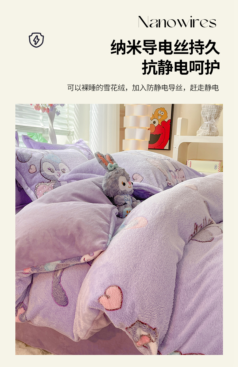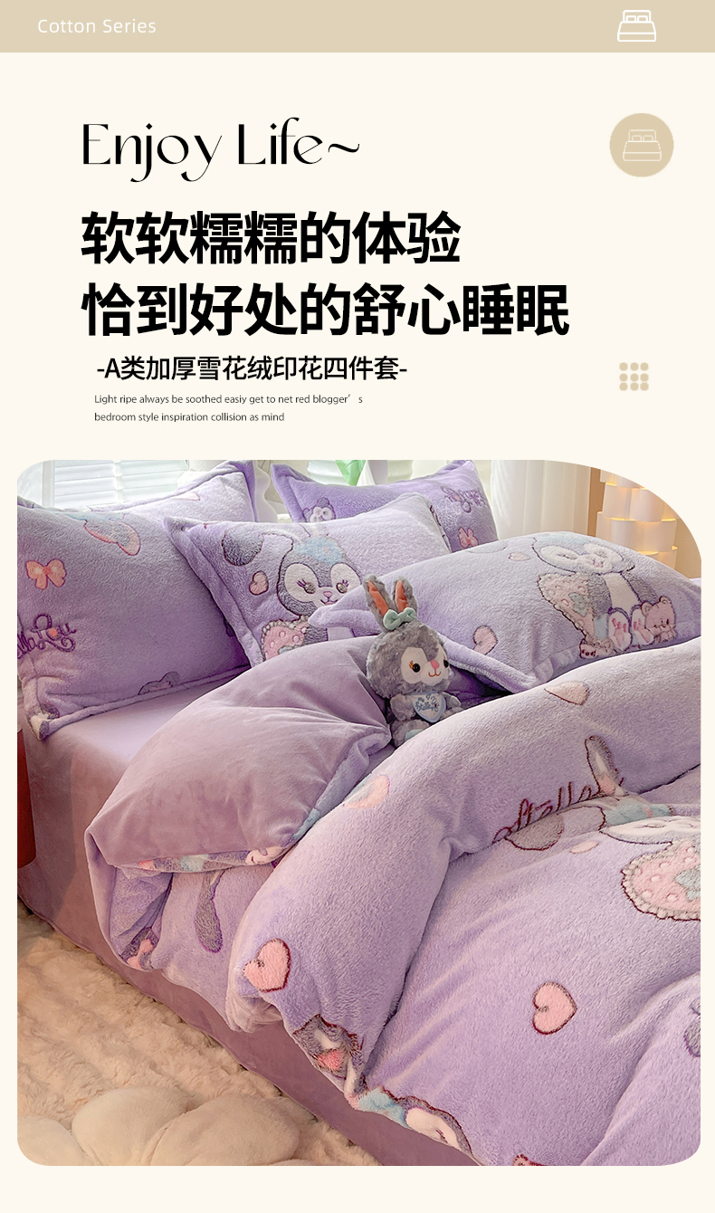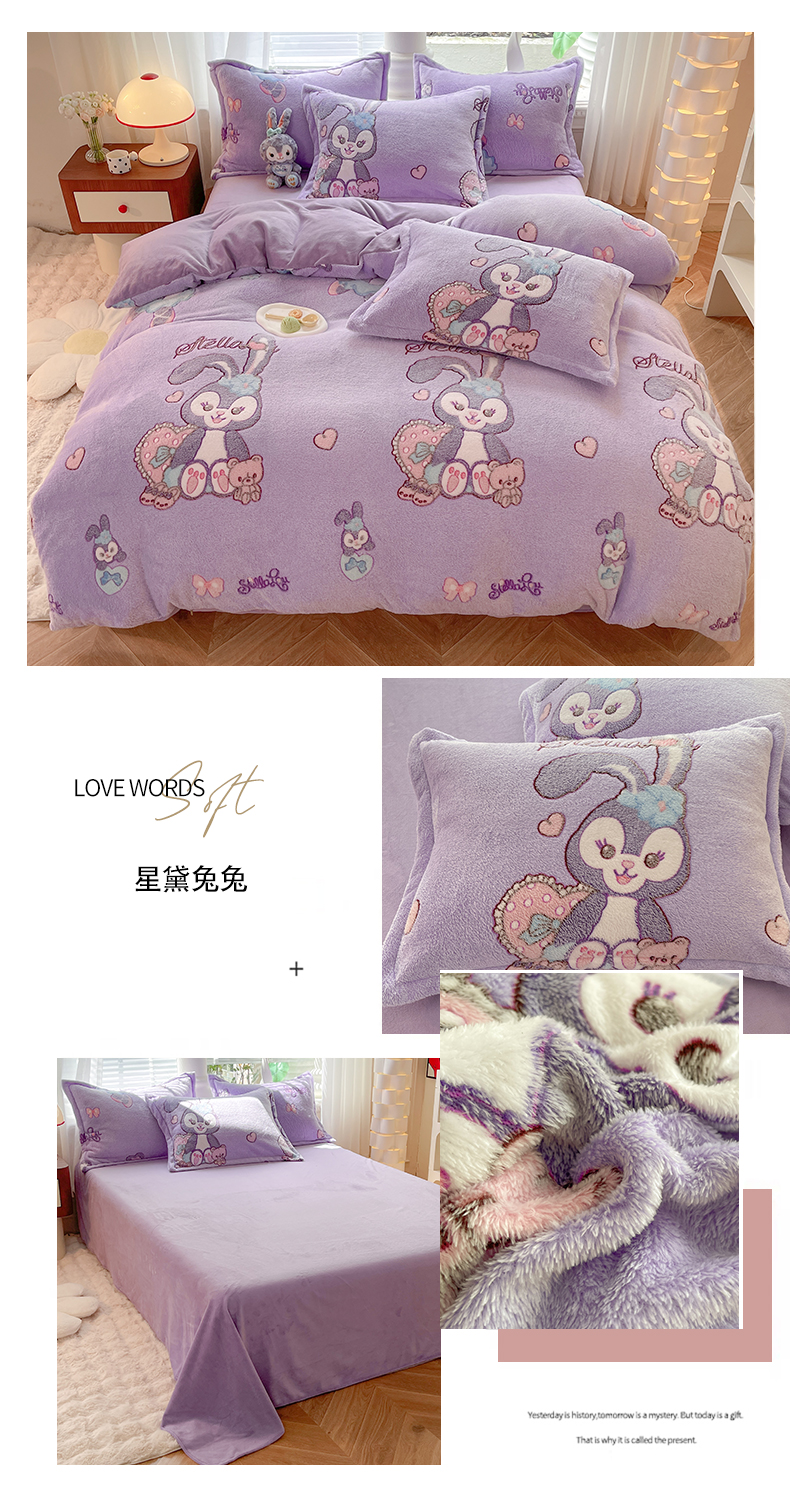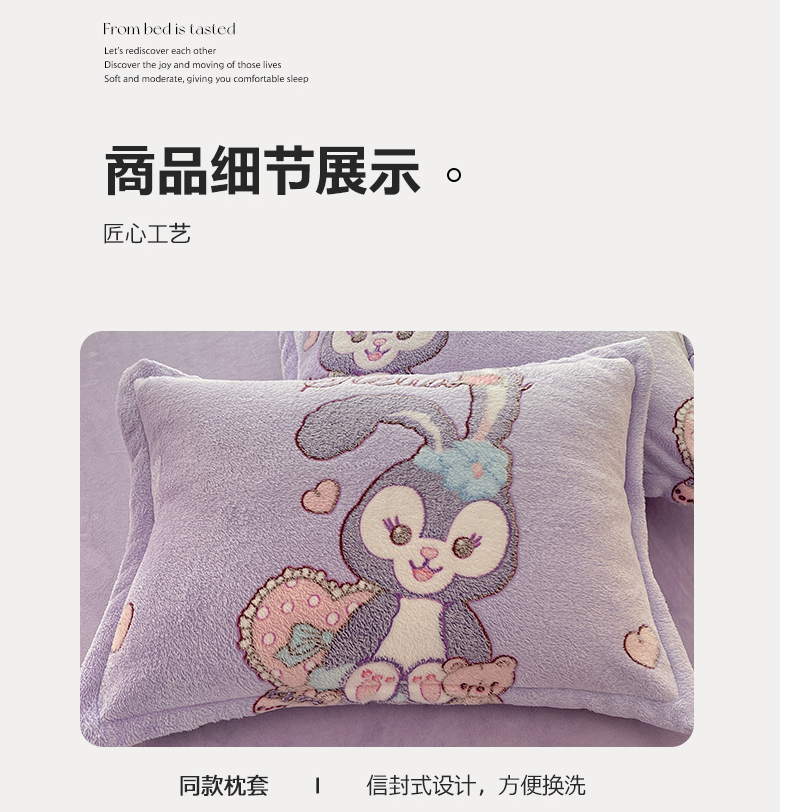 当前位置: 91家纺网 > 商品网购 > 床品套件 > 四件套 > 其它四件套 > 妖妖家纺 2024新款加厚雪花绒印花单品三件套四件套 星戴兔兔