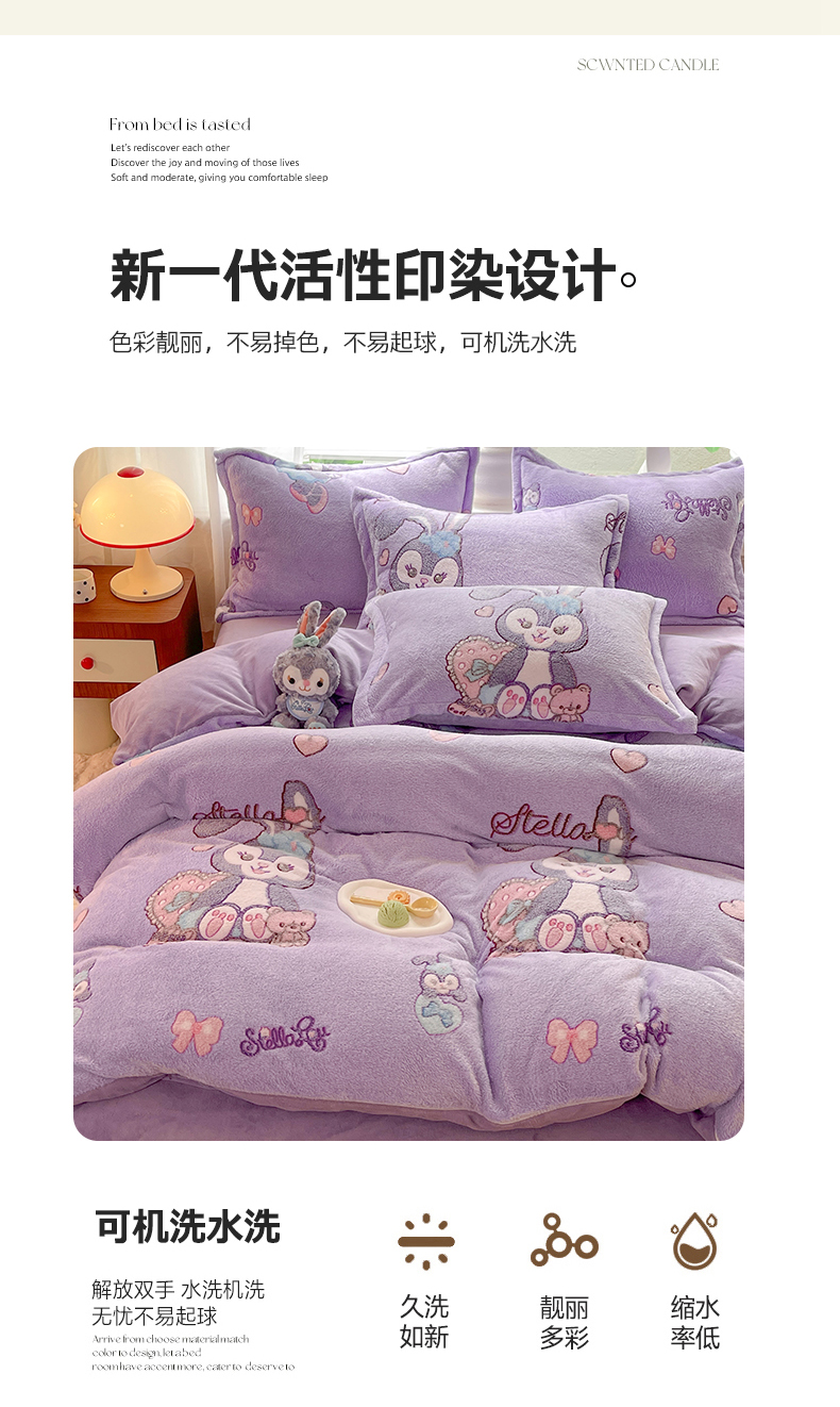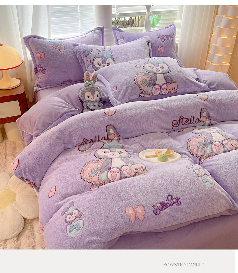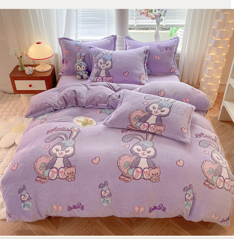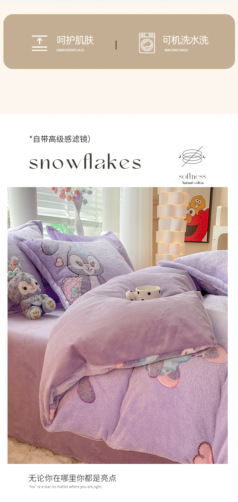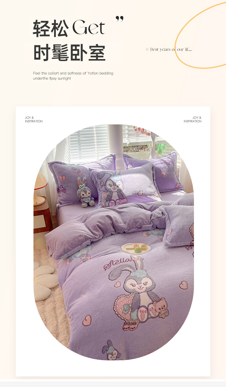 当前位置: 91家纺网 > 商品网购 > 床品套件 > 四件套 > 其它四件套 > 妖妖家纺 2024新款加厚雪花绒印花单品三件套四件套 星戴兔兔
