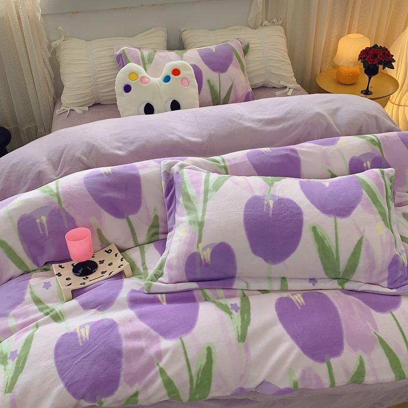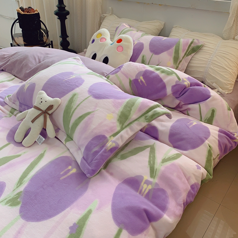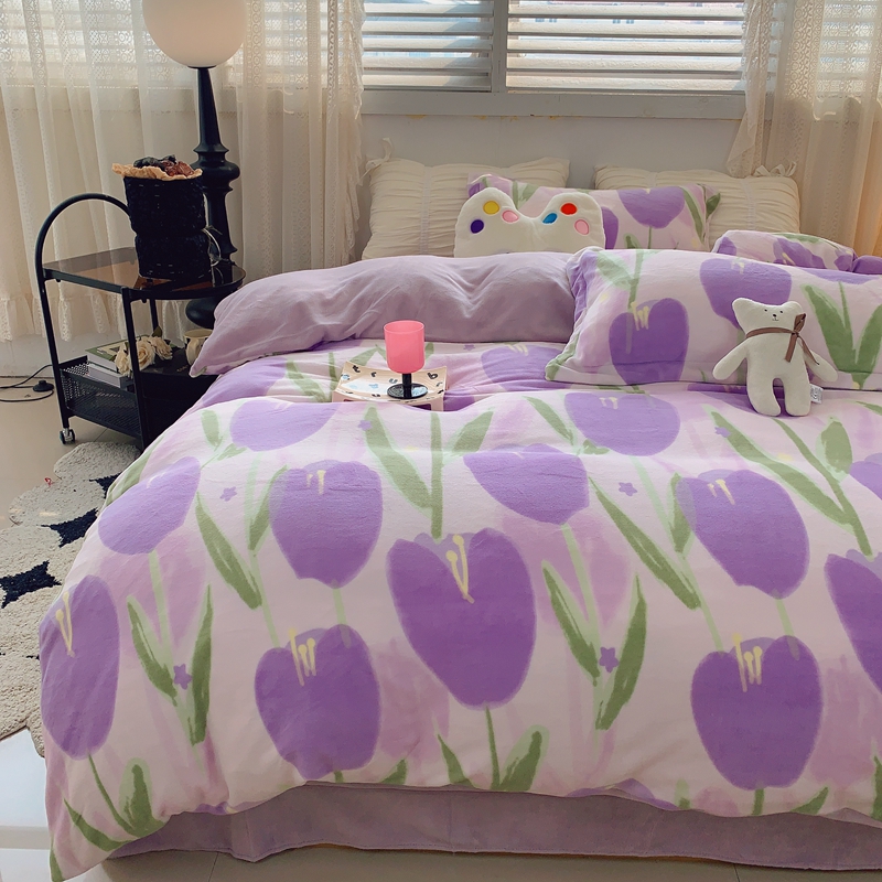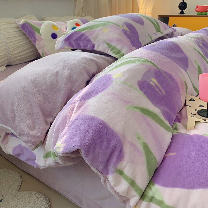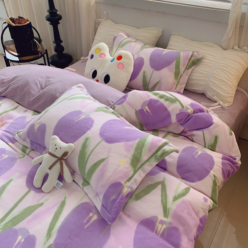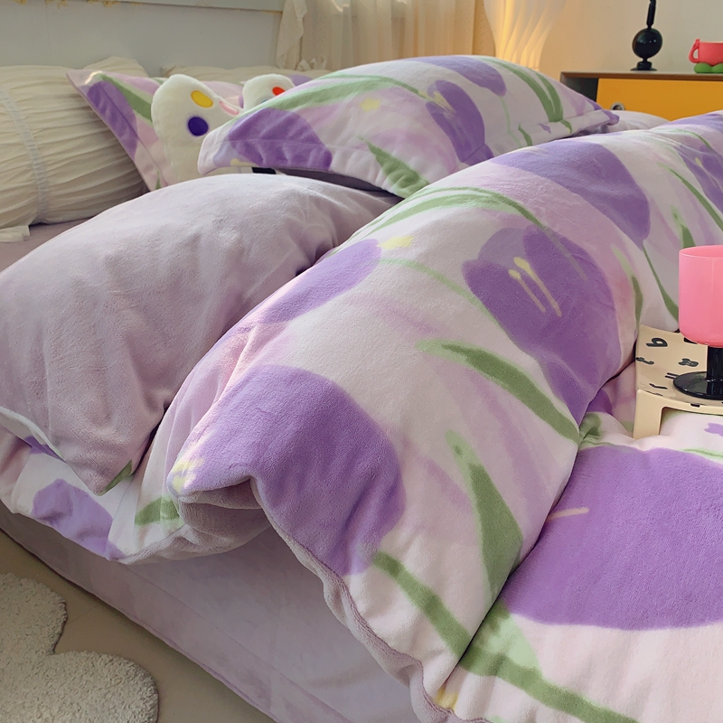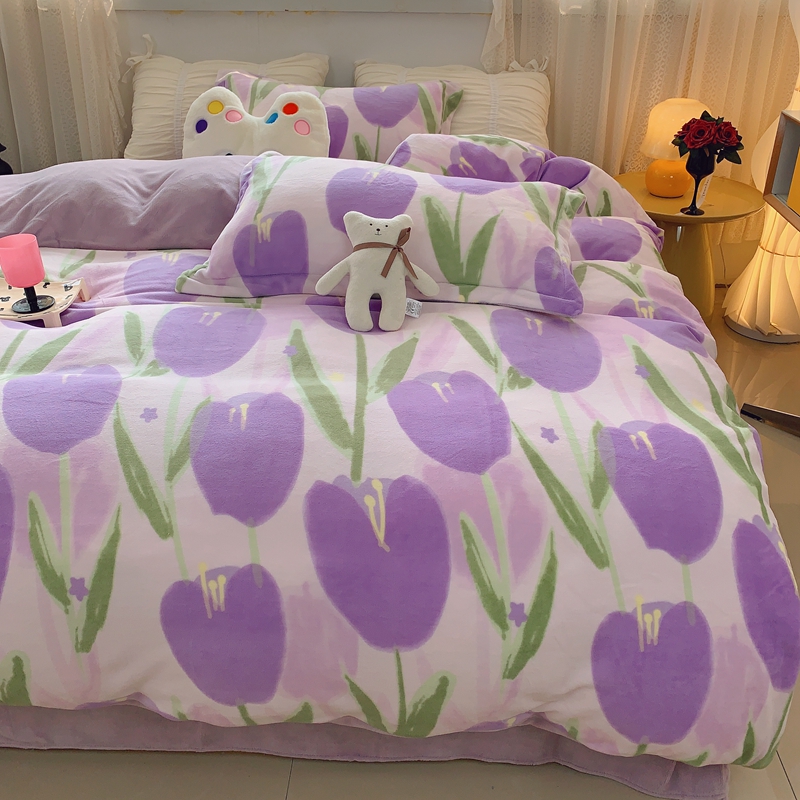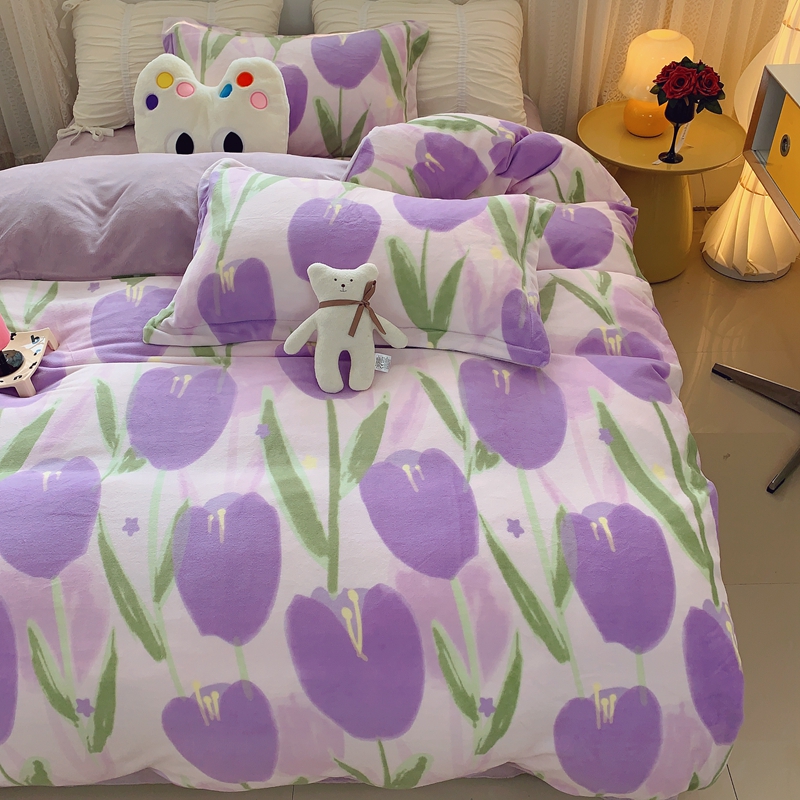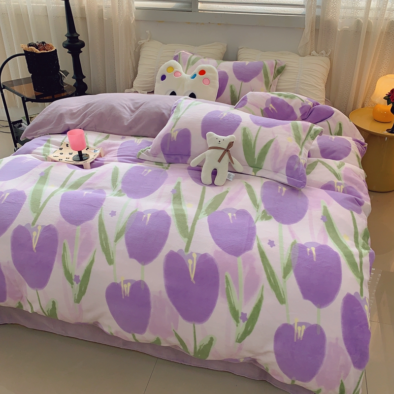 莱豫家纺 2024新款牛奶绒印花四件套 郁金香紫