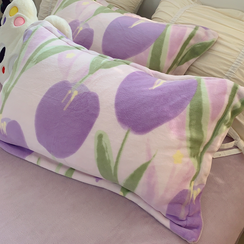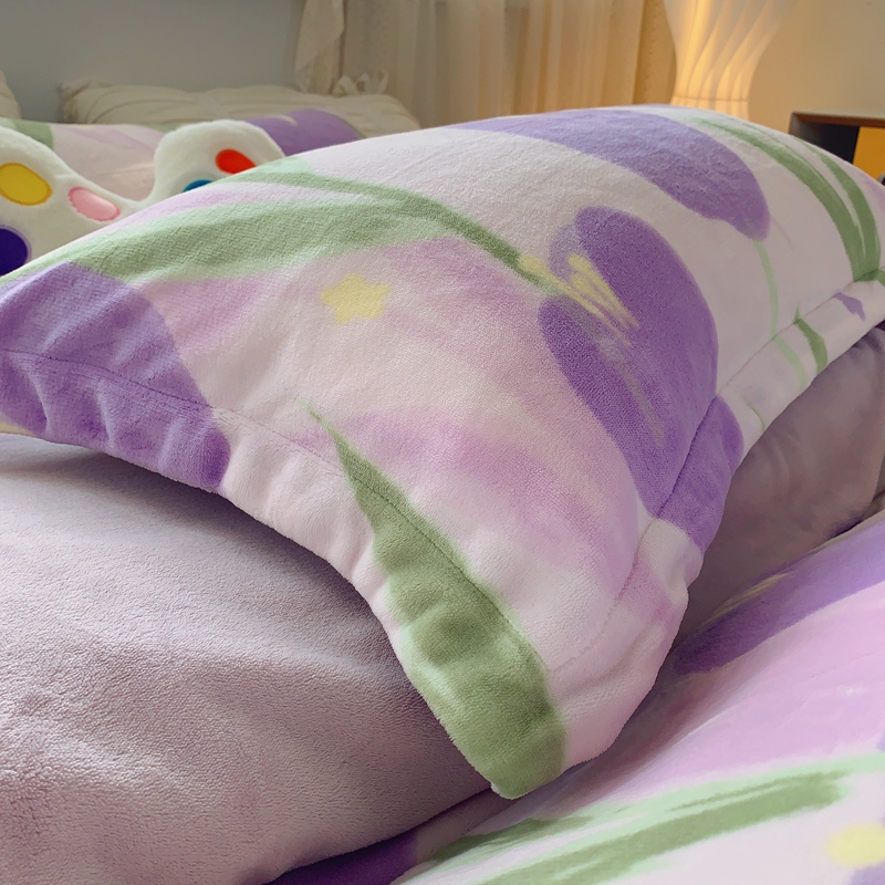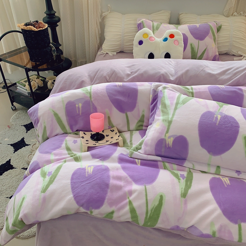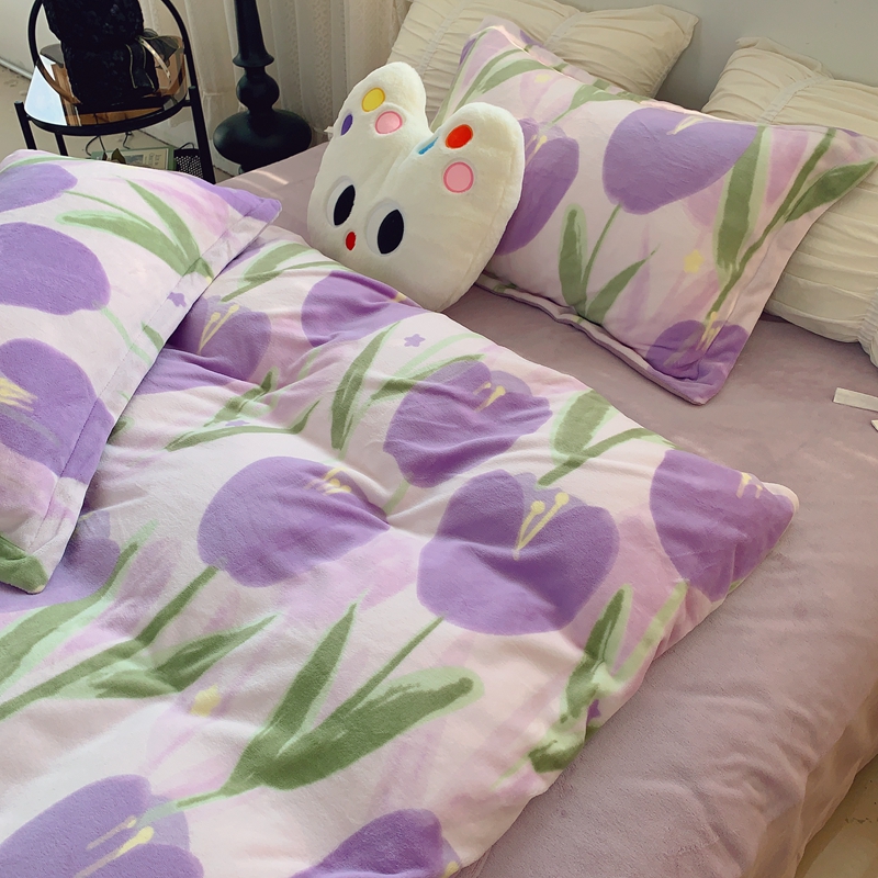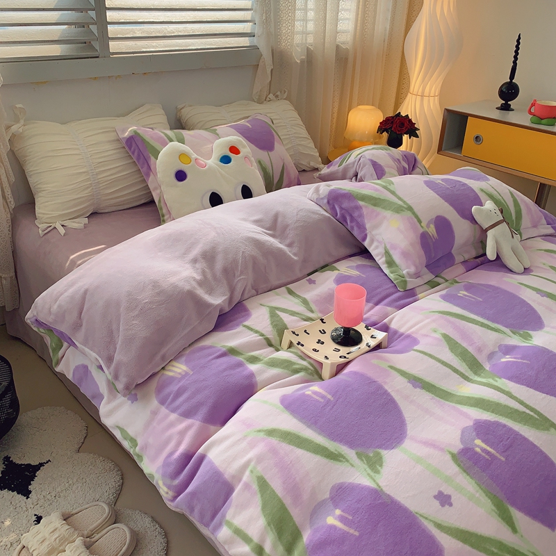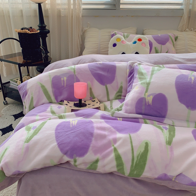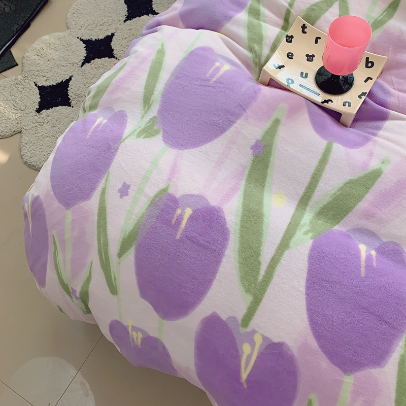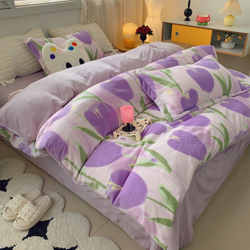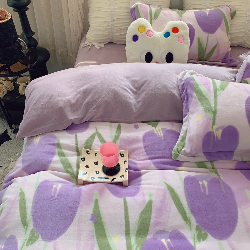 莱豫家纺 2024新款牛奶绒印花四件套 郁金香紫