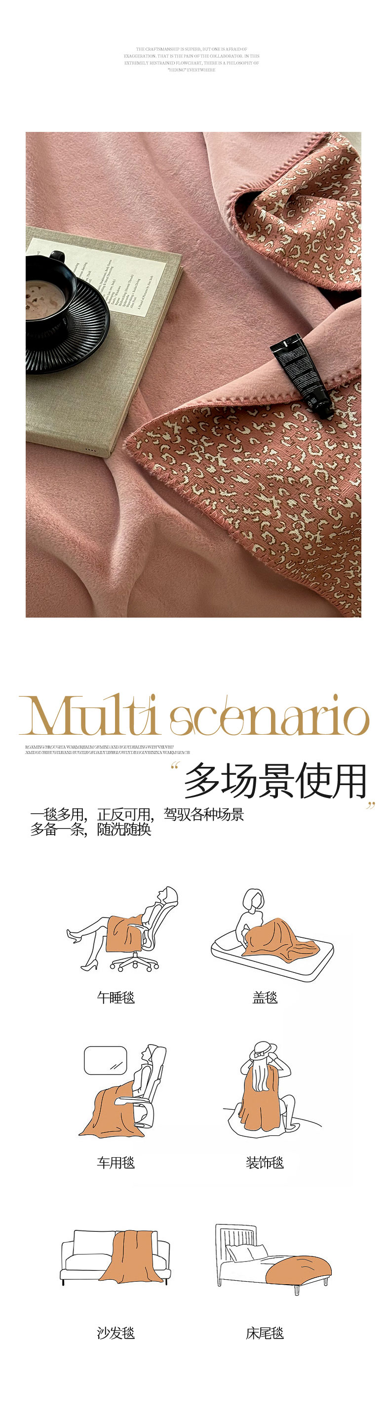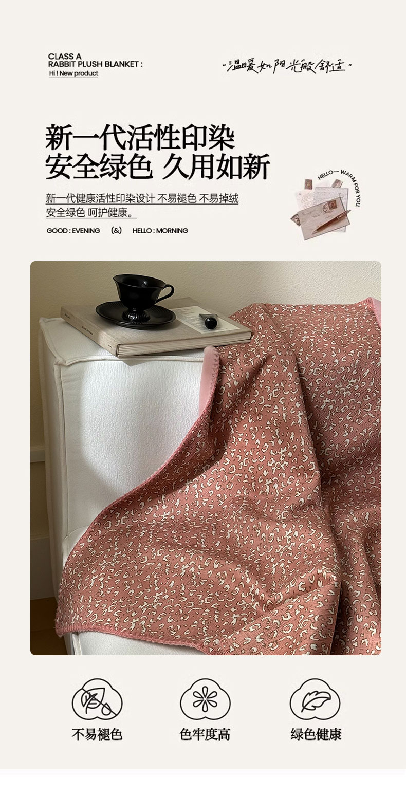 商品名称:FORTWO家纺 2024新款丝绒兔毛双面盖毯-午歇毯 午歇-粉