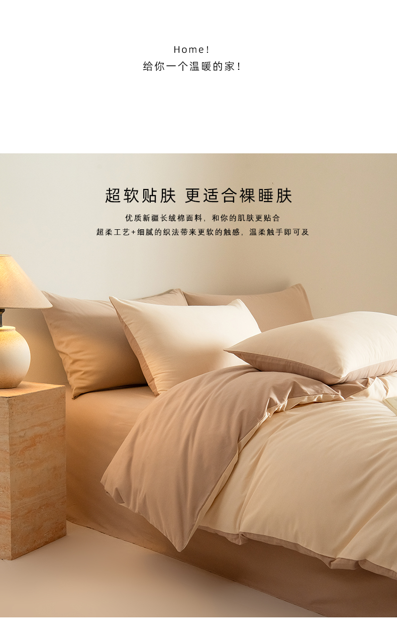 商品名称:Mr.pig猪先生水洗棉 2024新款A类50全棉磨毛单品-四件套 透玉粉+奶茶香槟