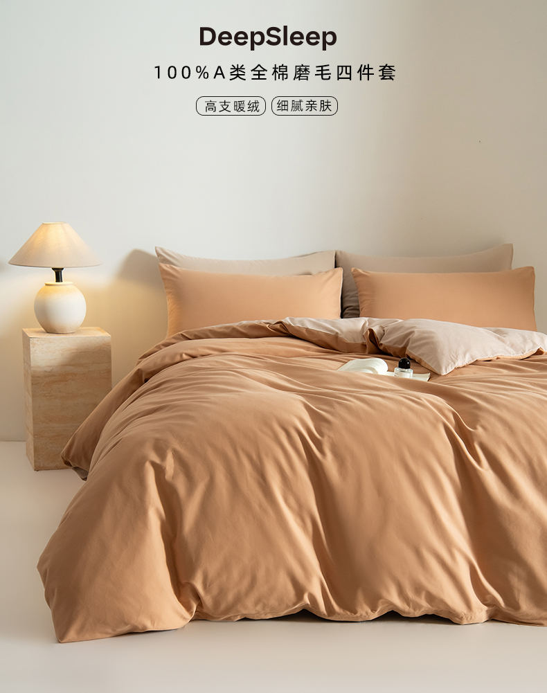 商品名称:Mr.pig猪先生水洗棉 2024新款A类50全棉磨毛单品-单被套 太妃棕+奶茶香槟