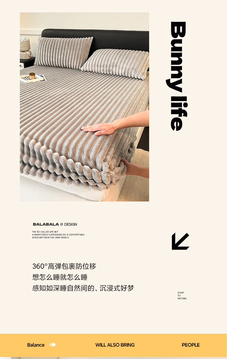 商品名称:典冠 2024新款310g兔毛绒抽条床笠 玫瑰红