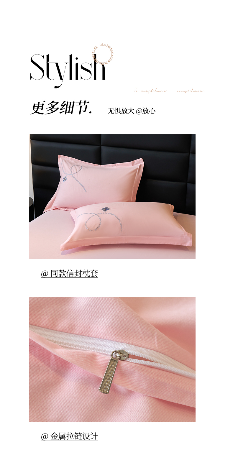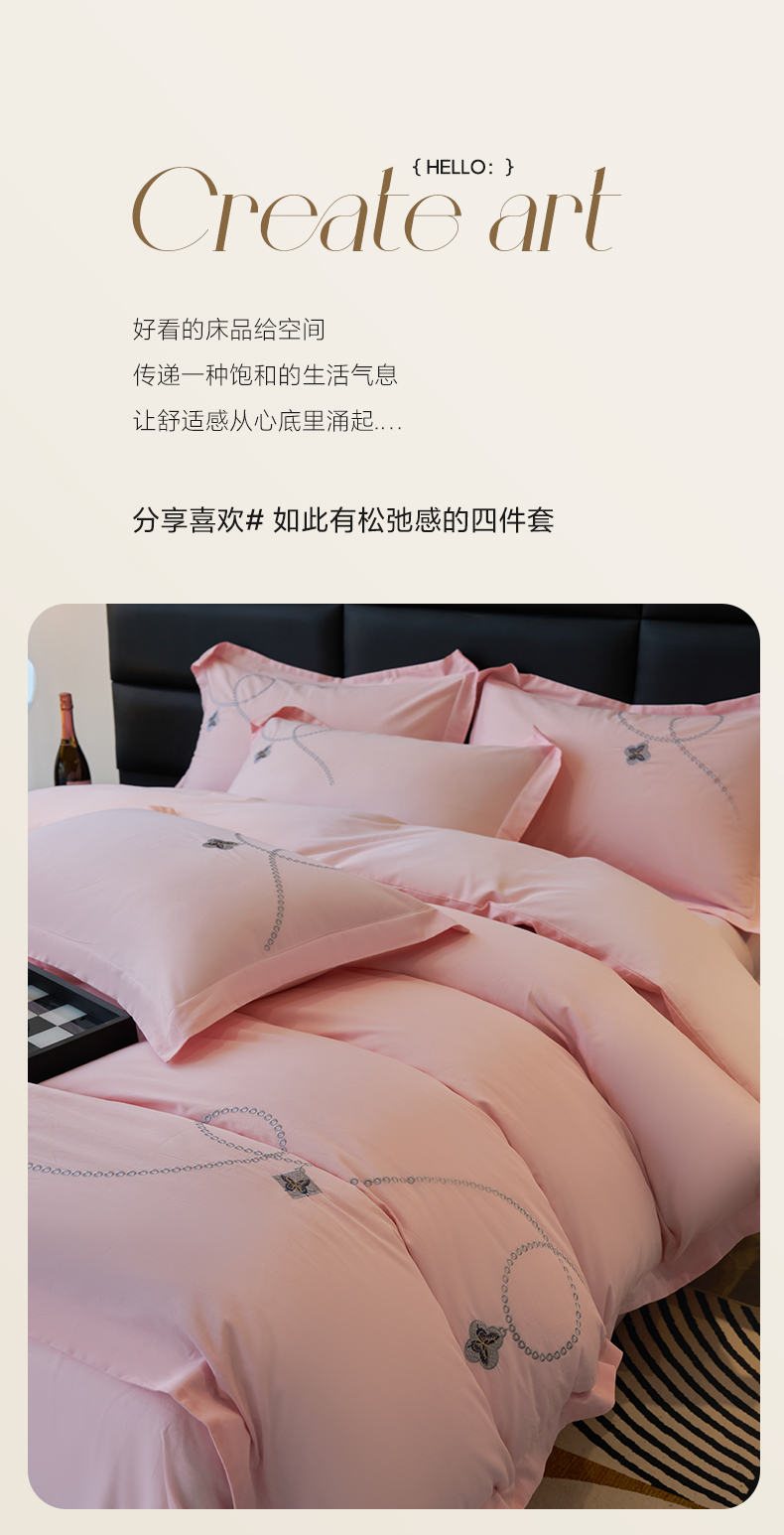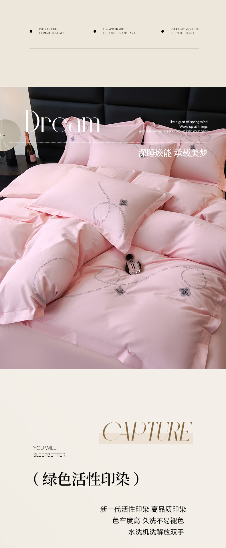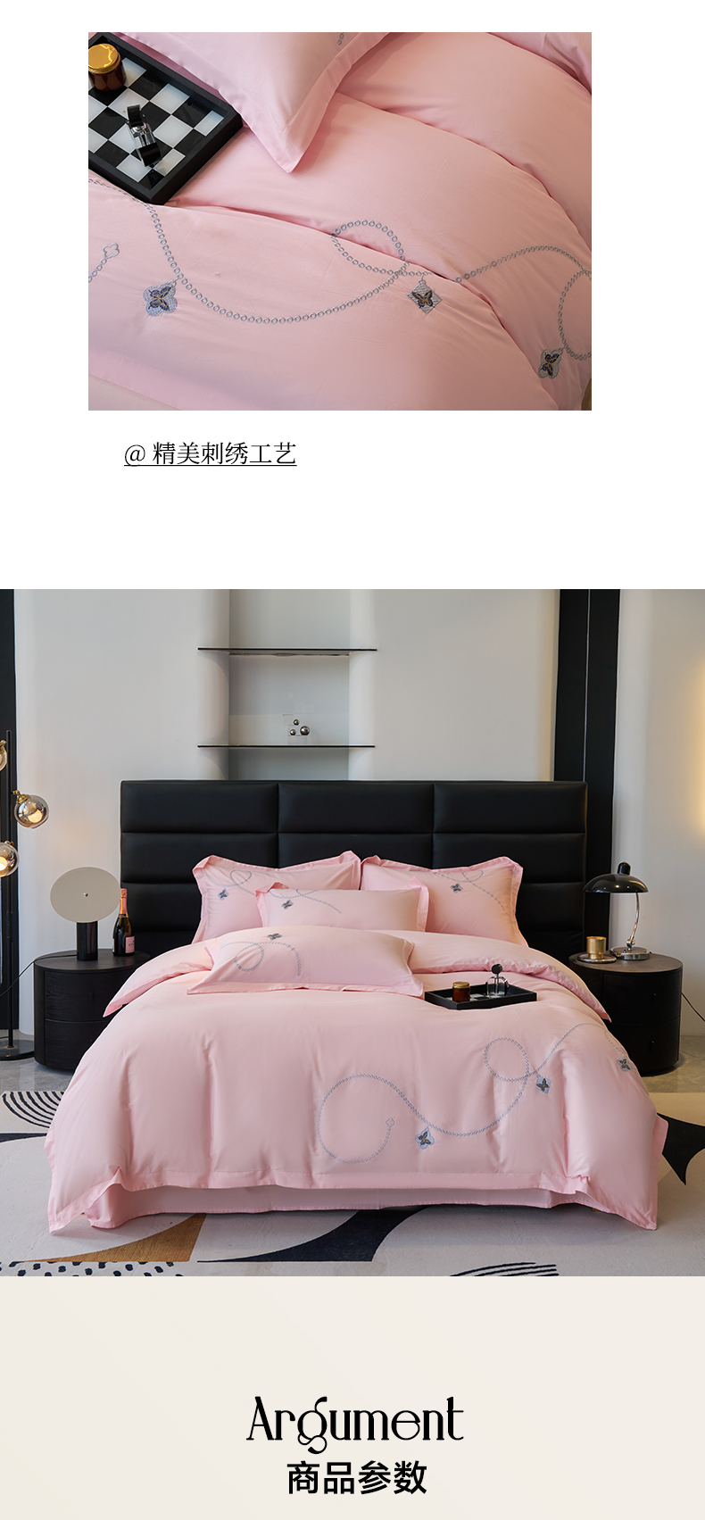 米奈家居 2024新款长绒棉纯棉刺绣四件套-罗琳-轻奢风 蜜桃粉