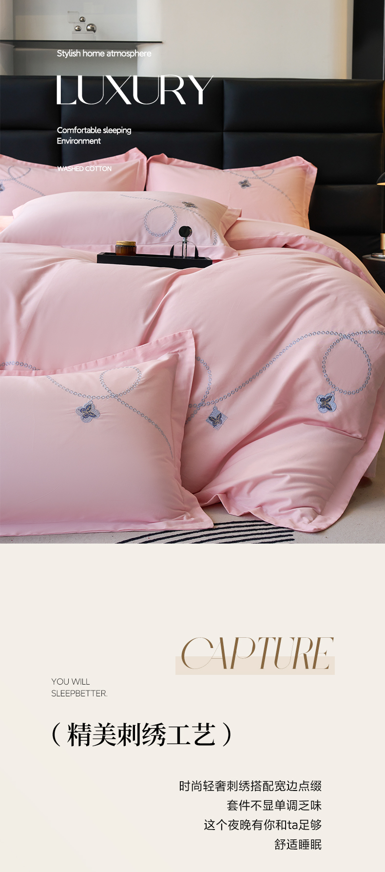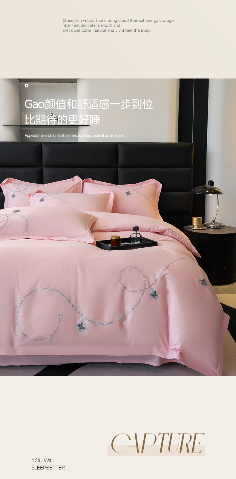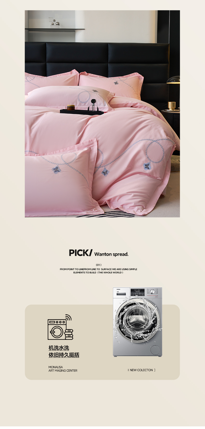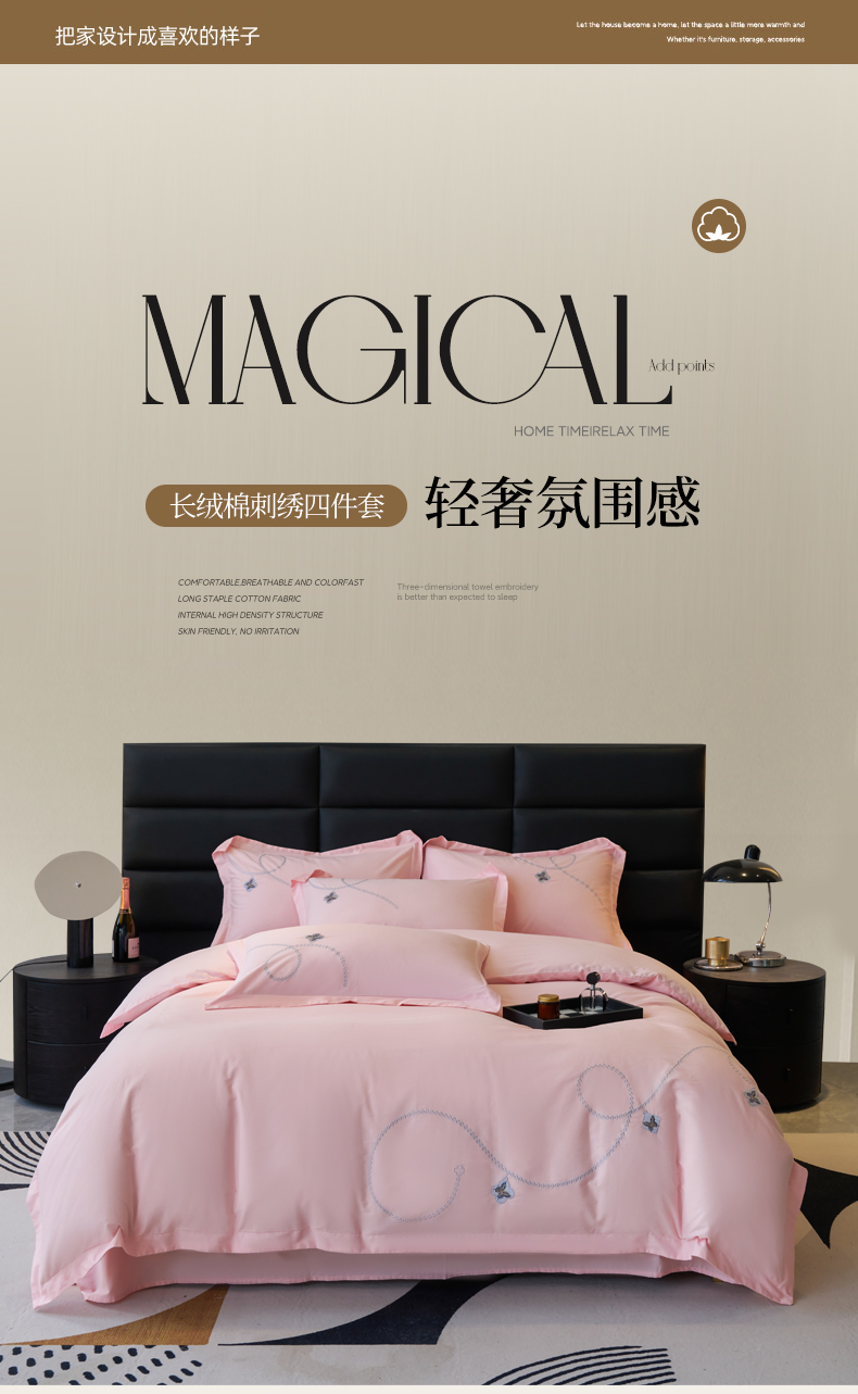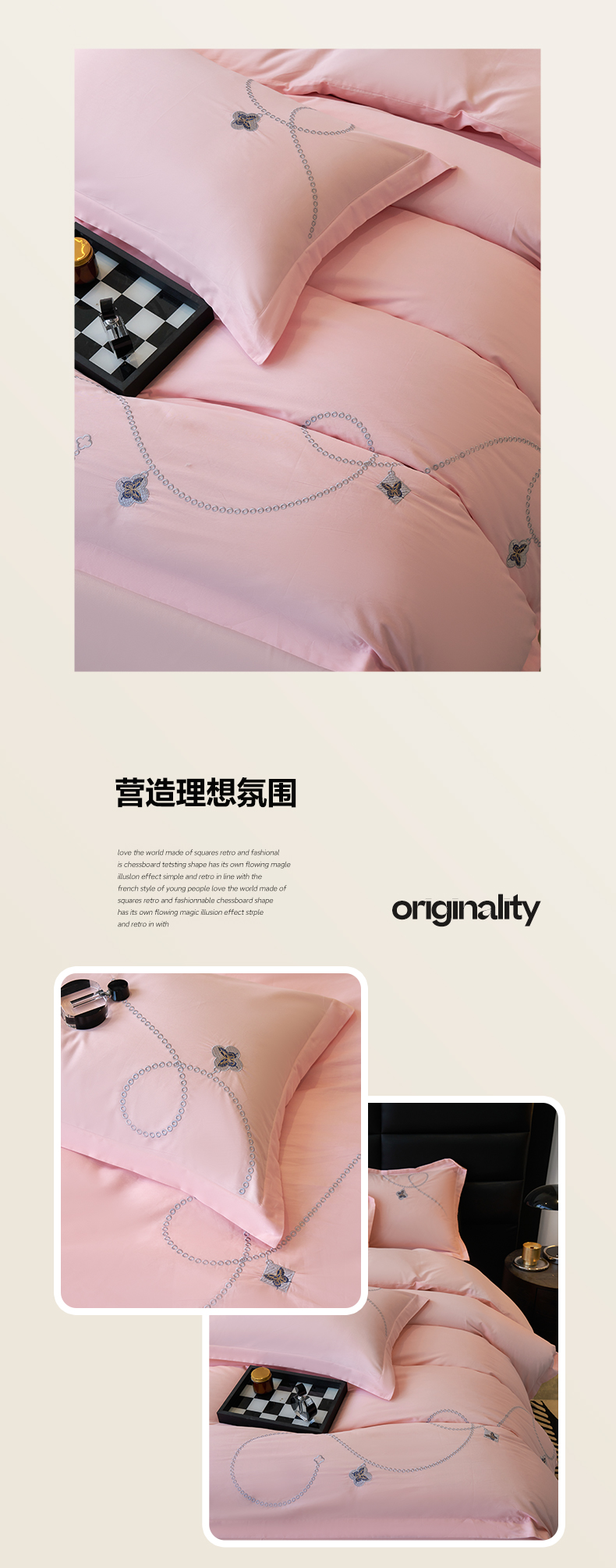米奈家居 2024新款长绒棉纯棉刺绣四件套-罗琳-轻奢风 蜜桃粉