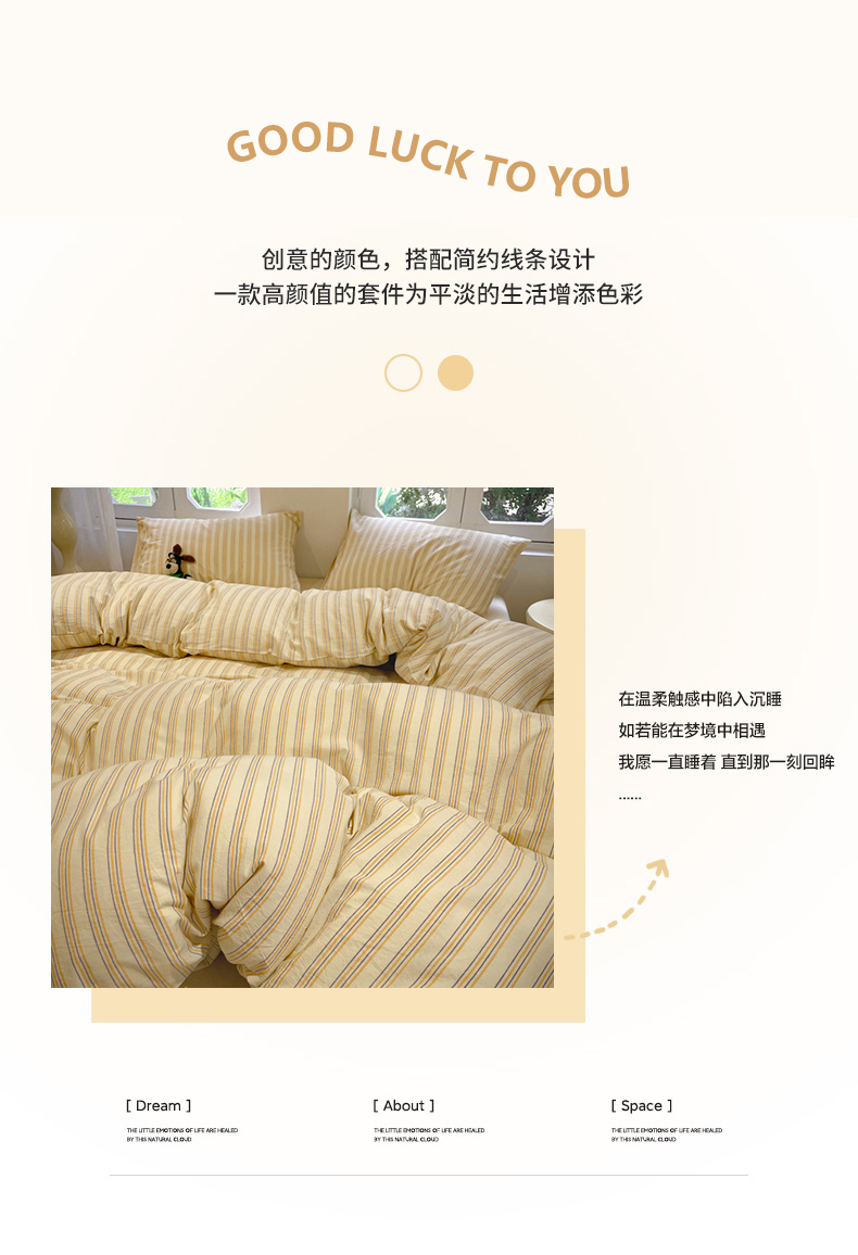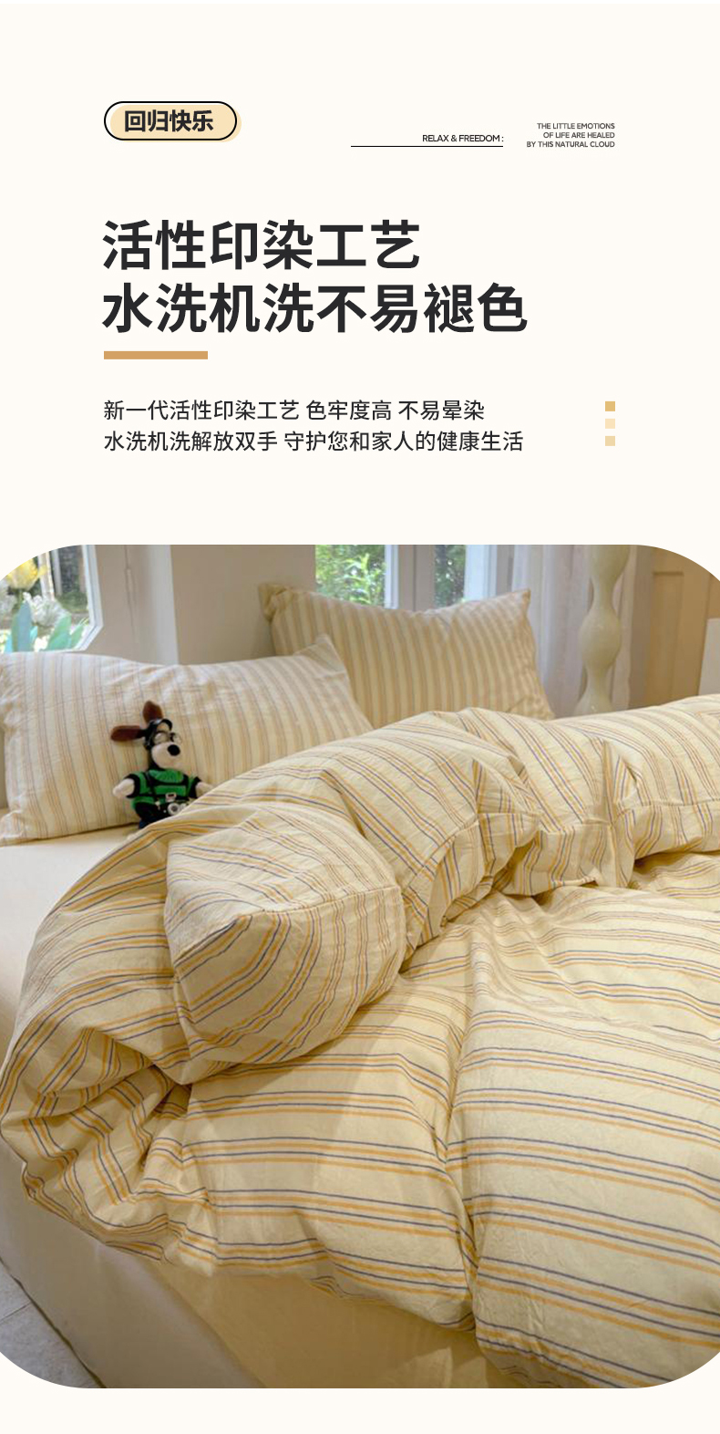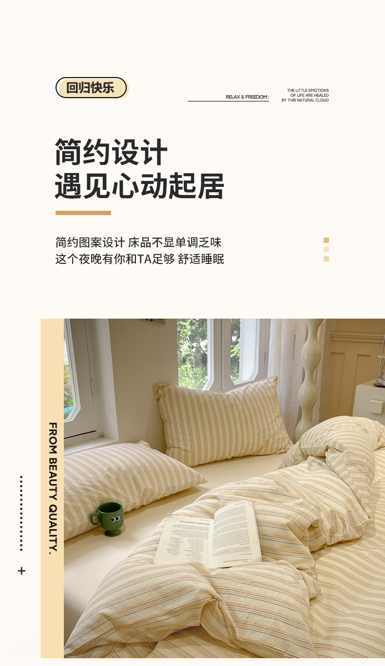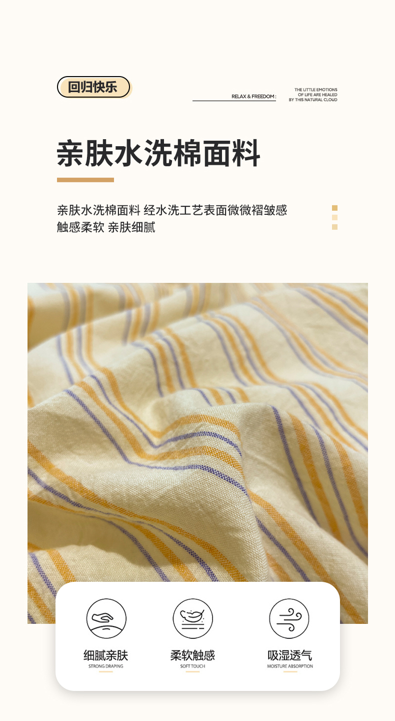 商品名称:欣晴家纺 2024新款软糯亲肤云朵棉无印风条格水洗棉单被套 卡米尔