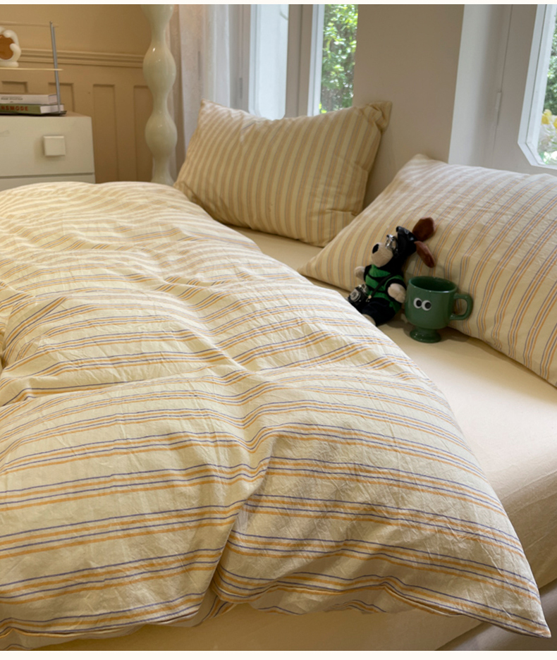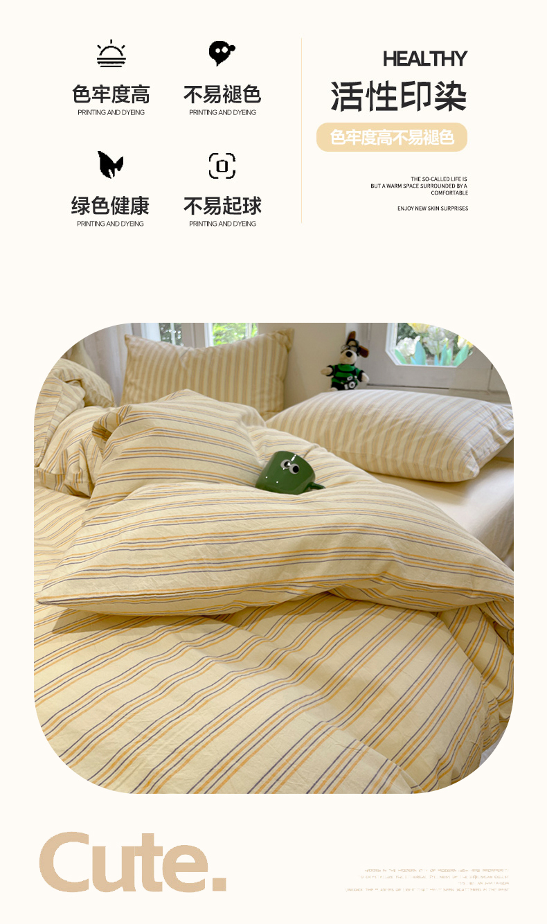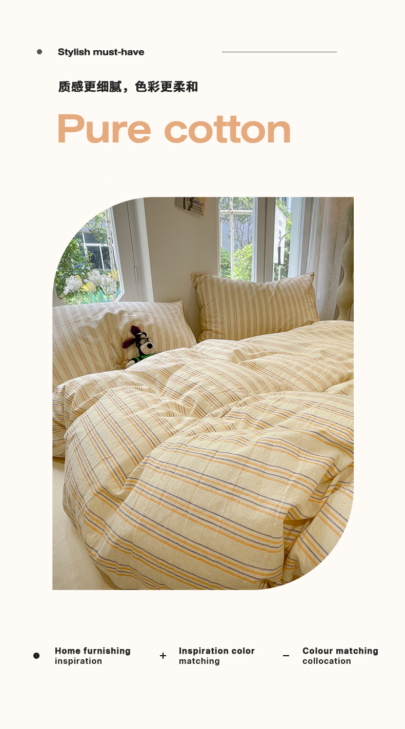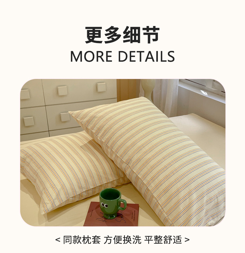 商品名称:欣晴家纺 2024新款软糯亲肤云朵棉无印风条格水洗棉单被套 卡米尔