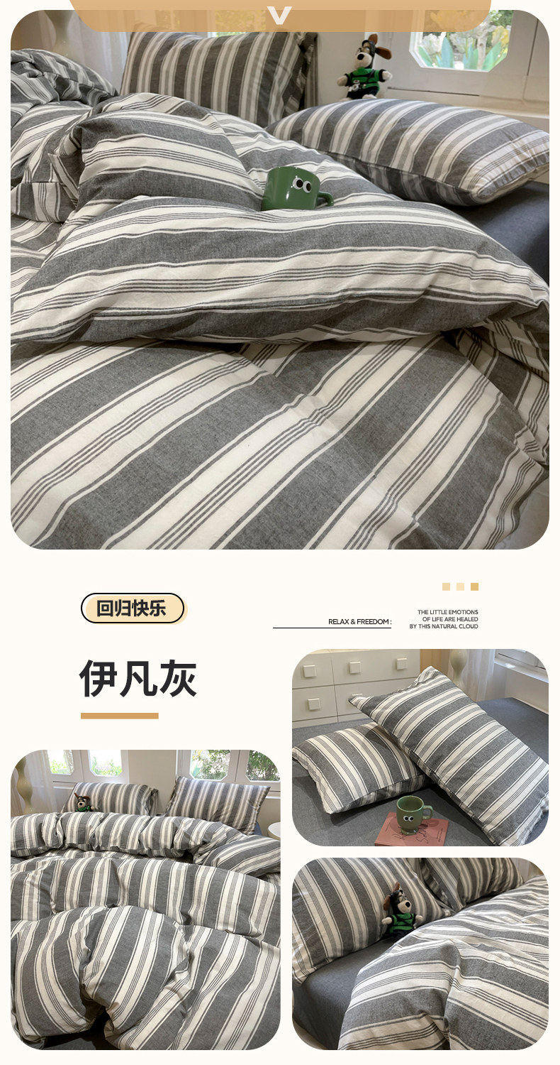 (总)欣晴家纺 2025新款软糯水洗棉条格无印宜家风混搭三件套四件套(风格1),混搭粉格,混搭灰条,混搭咖格,混搭咖条,混搭蓝格,混搭米黄,混搭米驼,混搭深灰