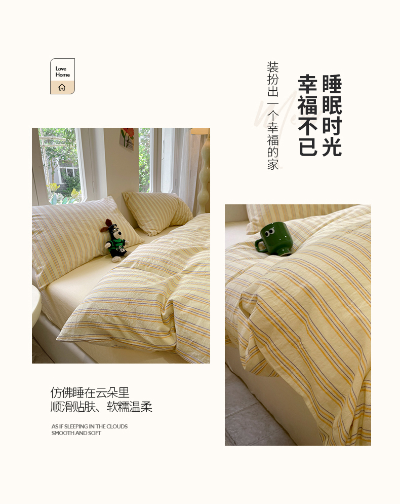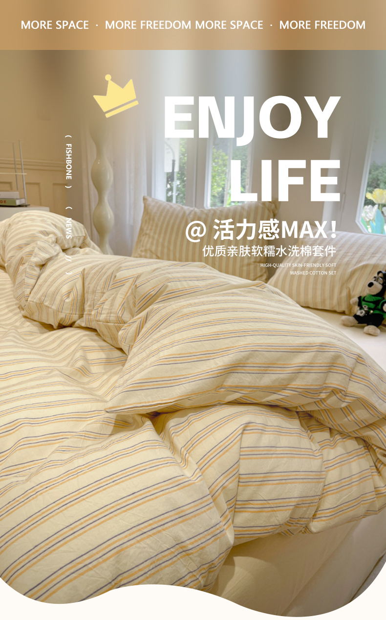 (总)欣晴家纺 2025新款软糯糯亲肤水洗棉条纹格子三件套四件套,海盐纹,风织线,复古格,灰序曲,旧时光,木年轮,奶霜条,云糖纹,云影格