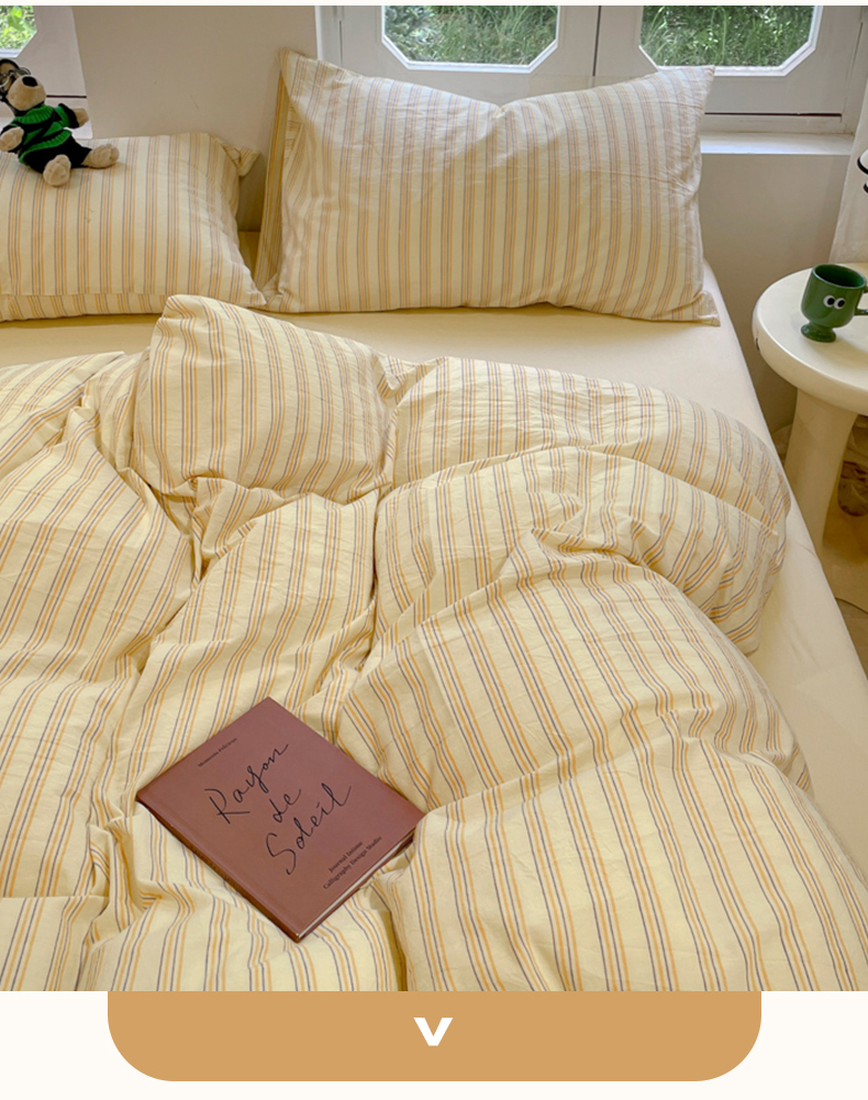 欣晴家纺 2024新款软糯亲肤云朵棉无印风条格水洗棉单被套 卡米尔