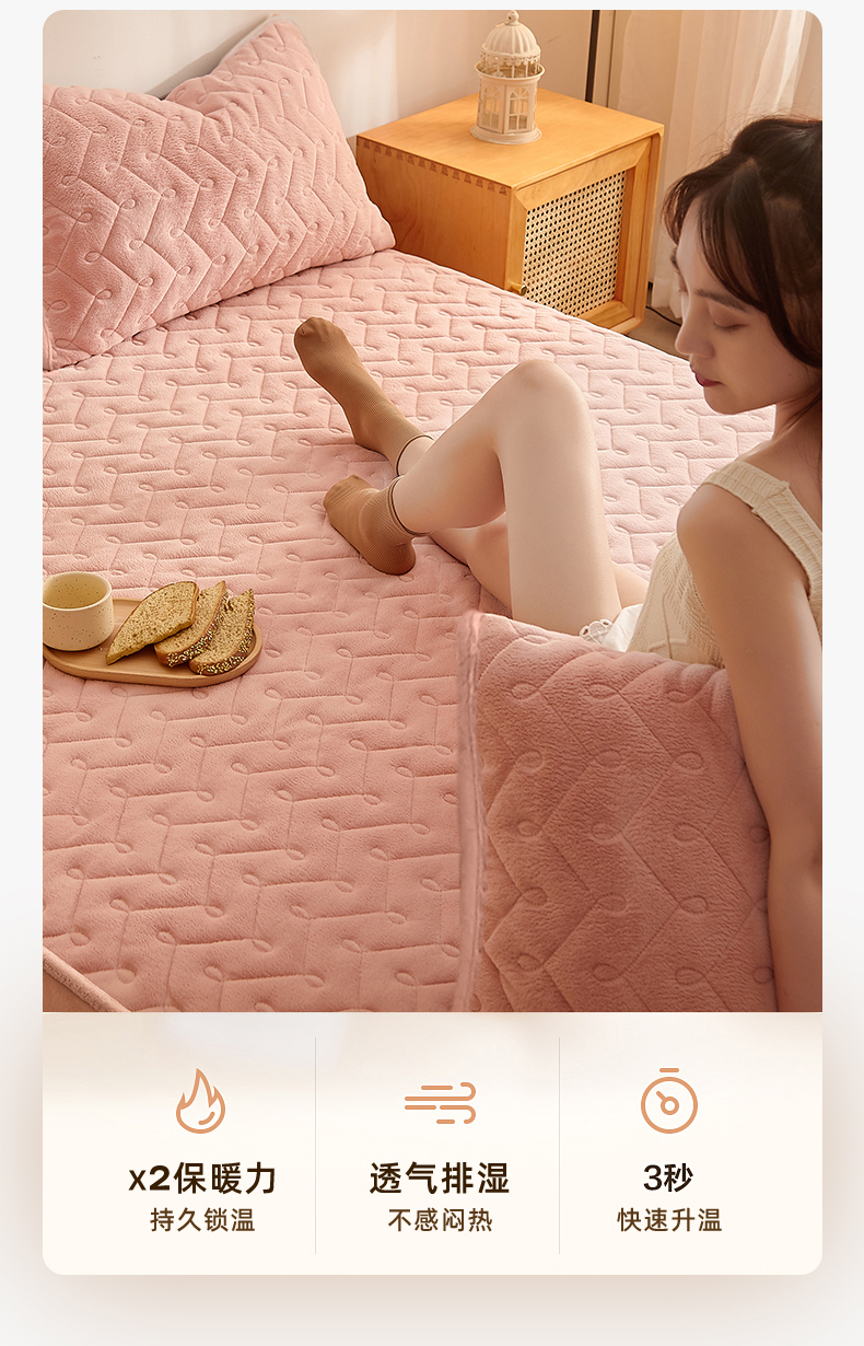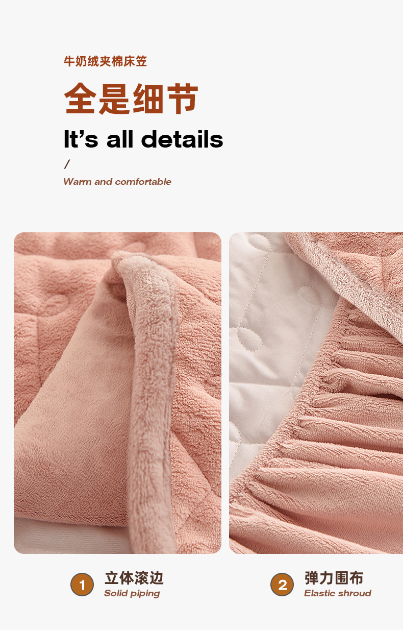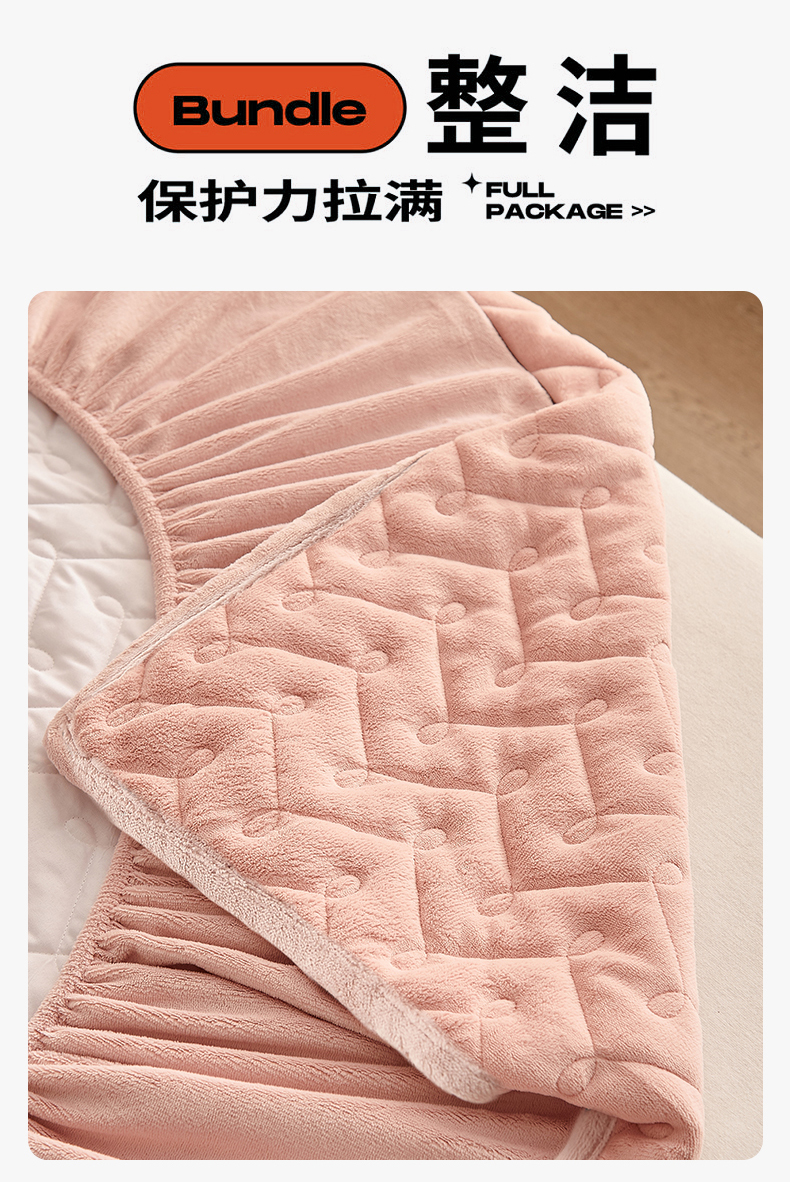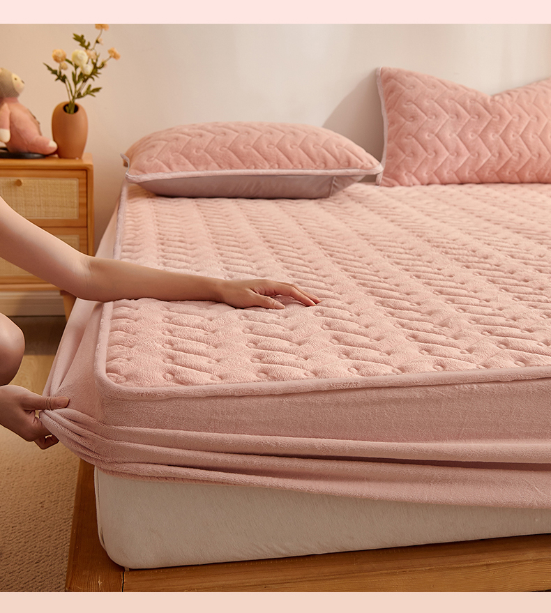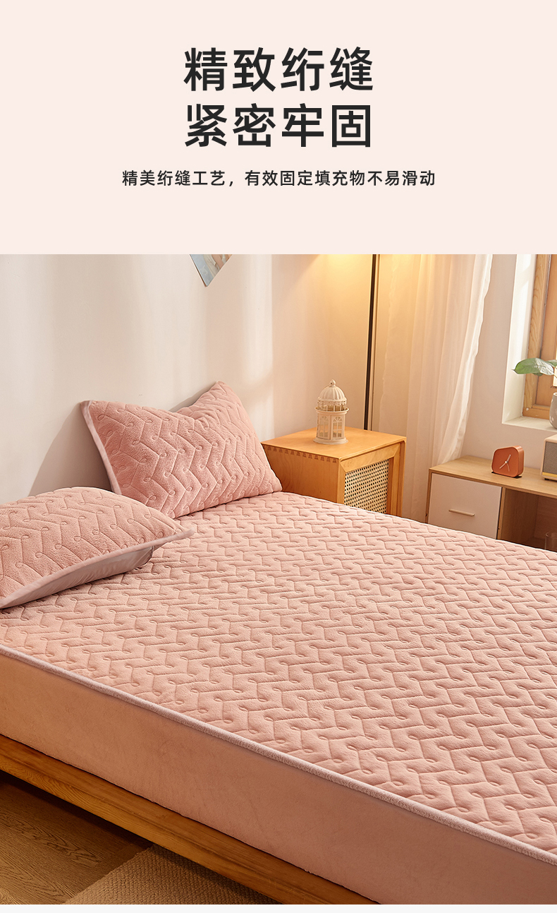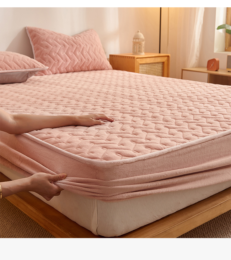 商品名称:布卢姆床垫 2025新款牛奶绒抗菌夹棉床笠--南枝系列 南枝-粉玉