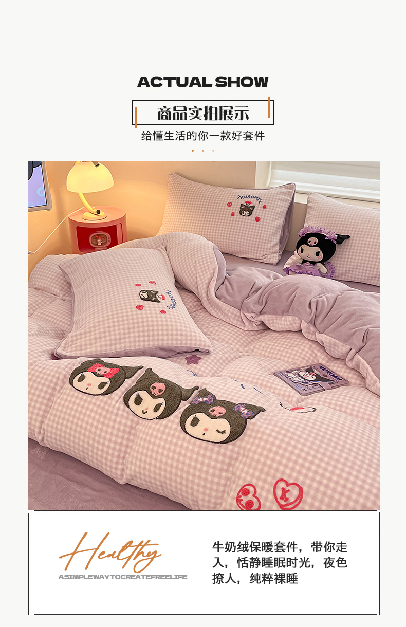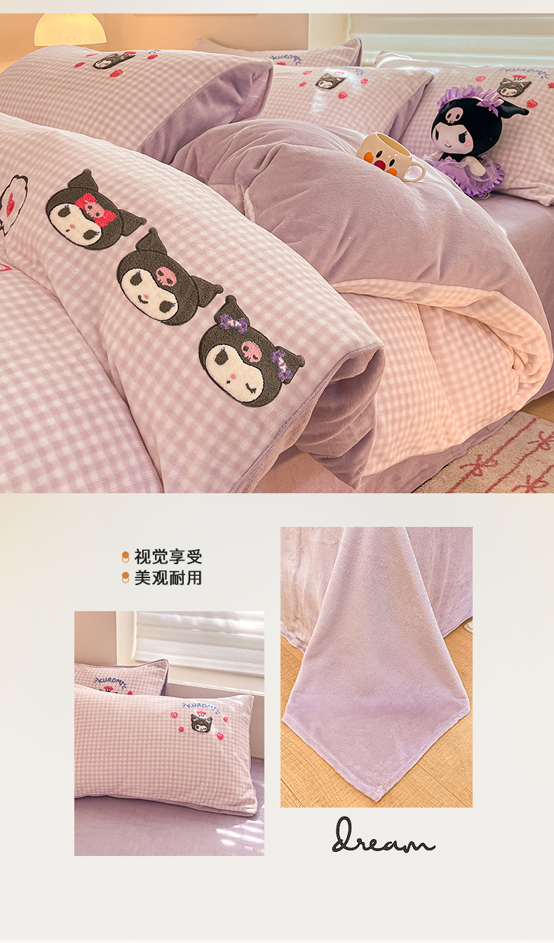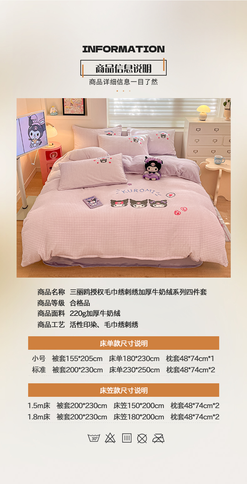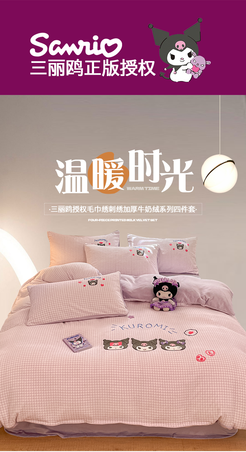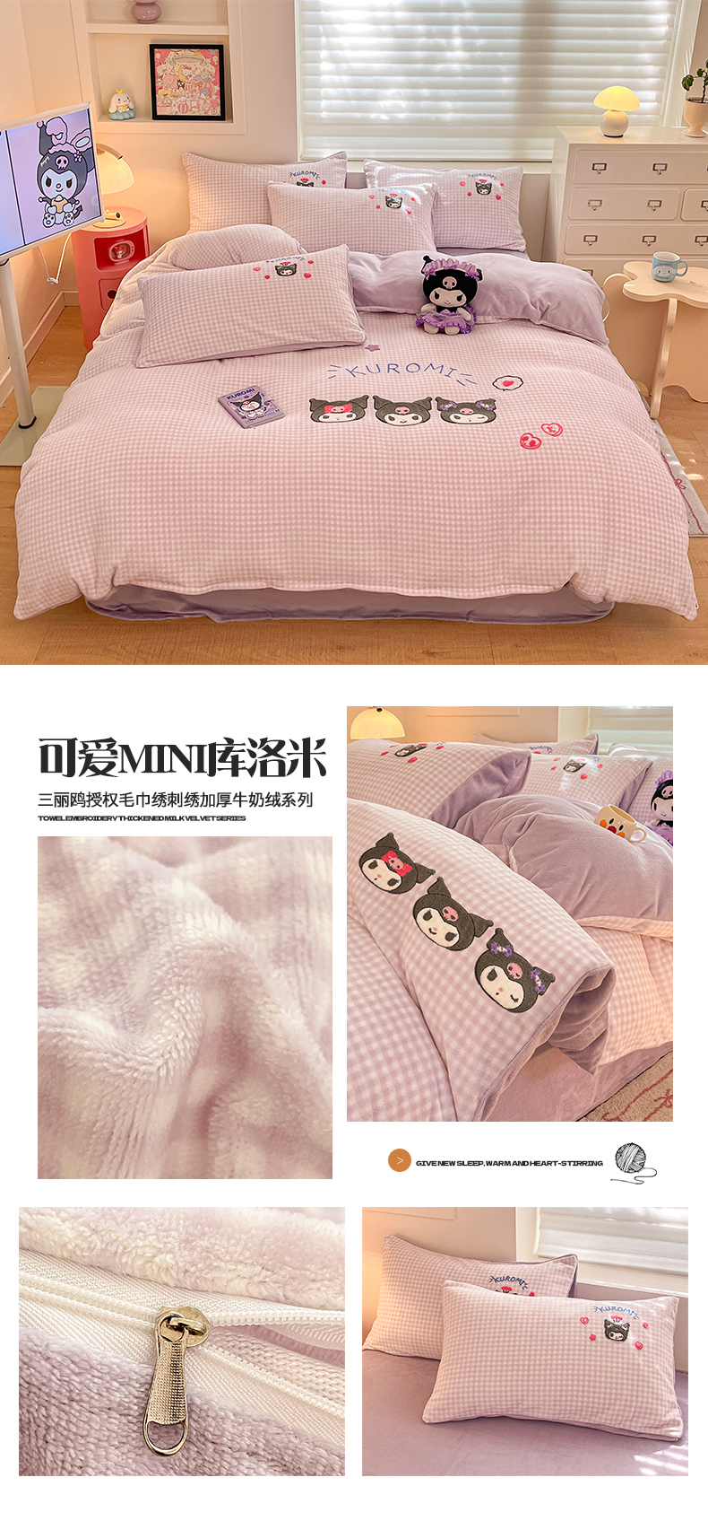 当前位置: 91家纺网 > 商品网购 > 床品套件 > 四件套 > 牛奶绒四件套 > 金爱家 2024新款正版三丽鸥授权毛巾绣刺绣工艺加厚牛奶绒系列四件套 绒毛巾绣-可爱mini库洛米