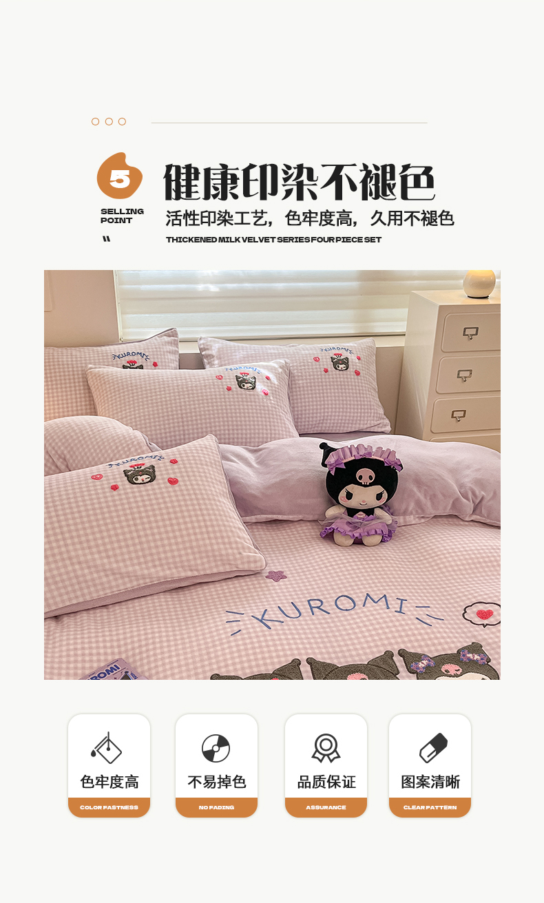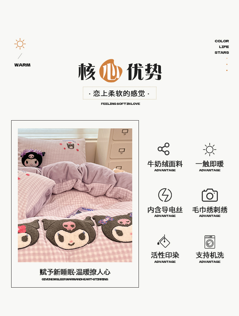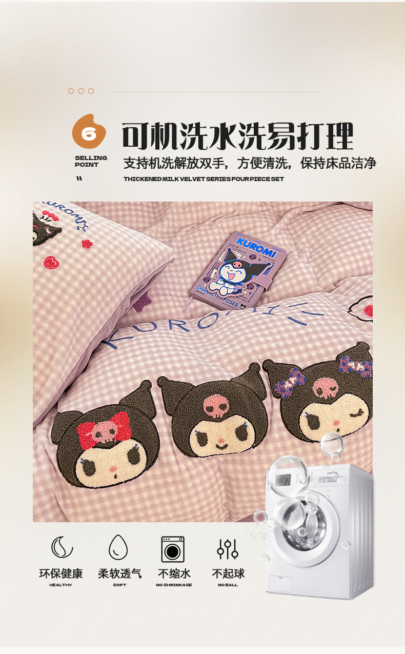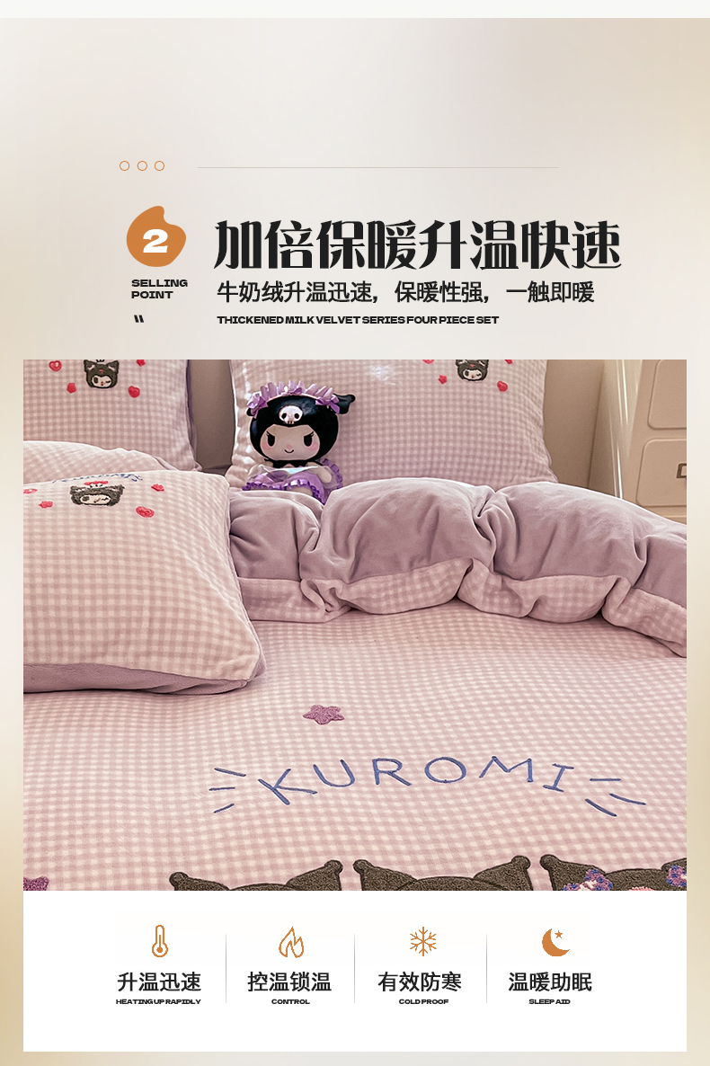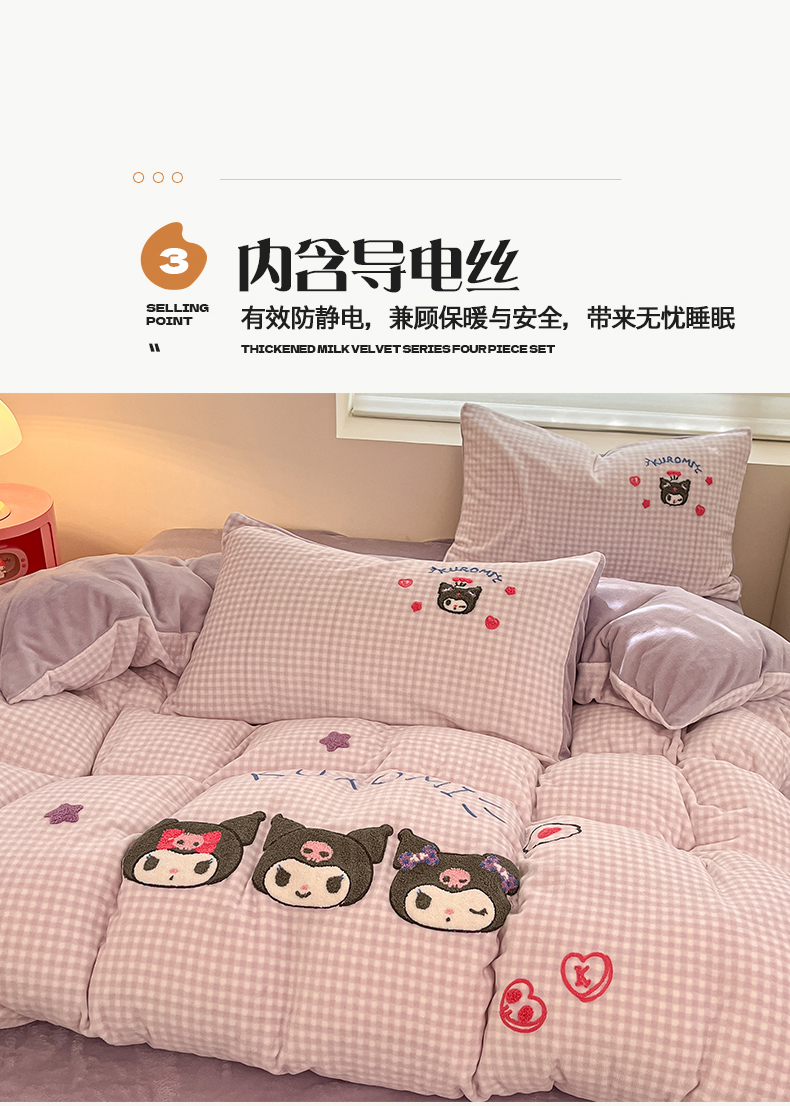 当前位置: 91家纺网 > 商品网购 > 床品套件 > 四件套 > 牛奶绒四件套 > 金爱家 2024新款正版三丽鸥授权毛巾绣刺绣工艺加厚牛奶绒系列四件套 绒毛巾绣-可爱mini库洛米
