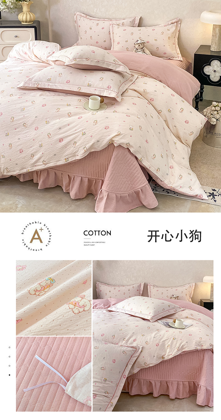 (总)富之航家纺 2025新款全棉三件套,灰调小狗,快乐小狗,南瓜小镇,素格,小熊乐园,樱桃蝴蝶结