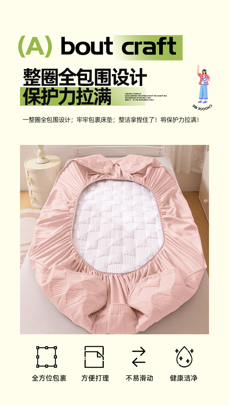 商品名称:暖季家纺 2025新款夹棉防水床笠学生款 莱律-玉色