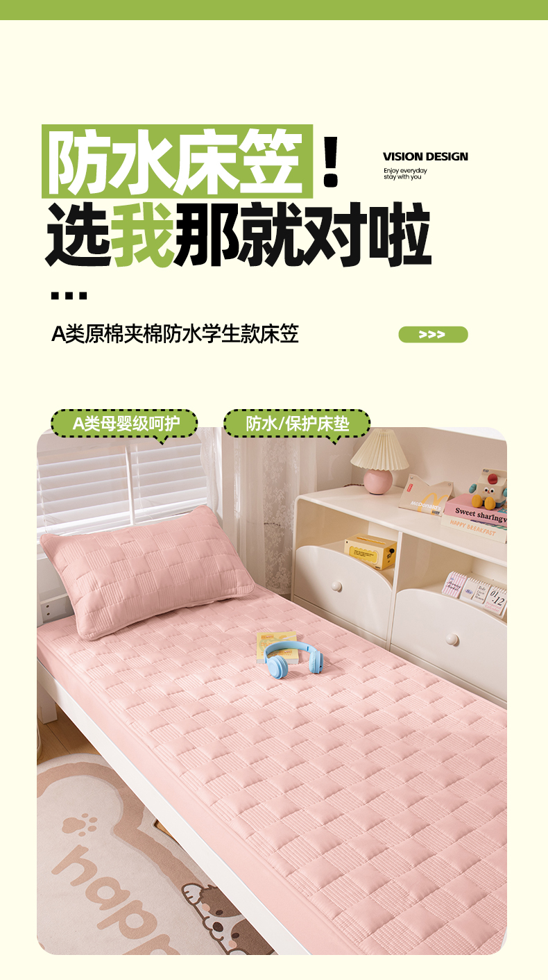 暖季家纺 2025新款夹棉防水床笠学生款 莱律-玉色