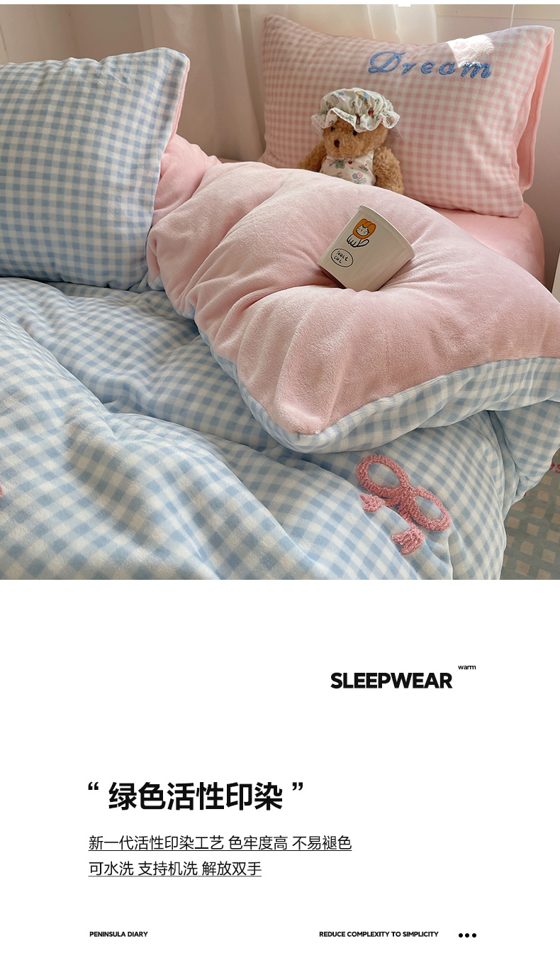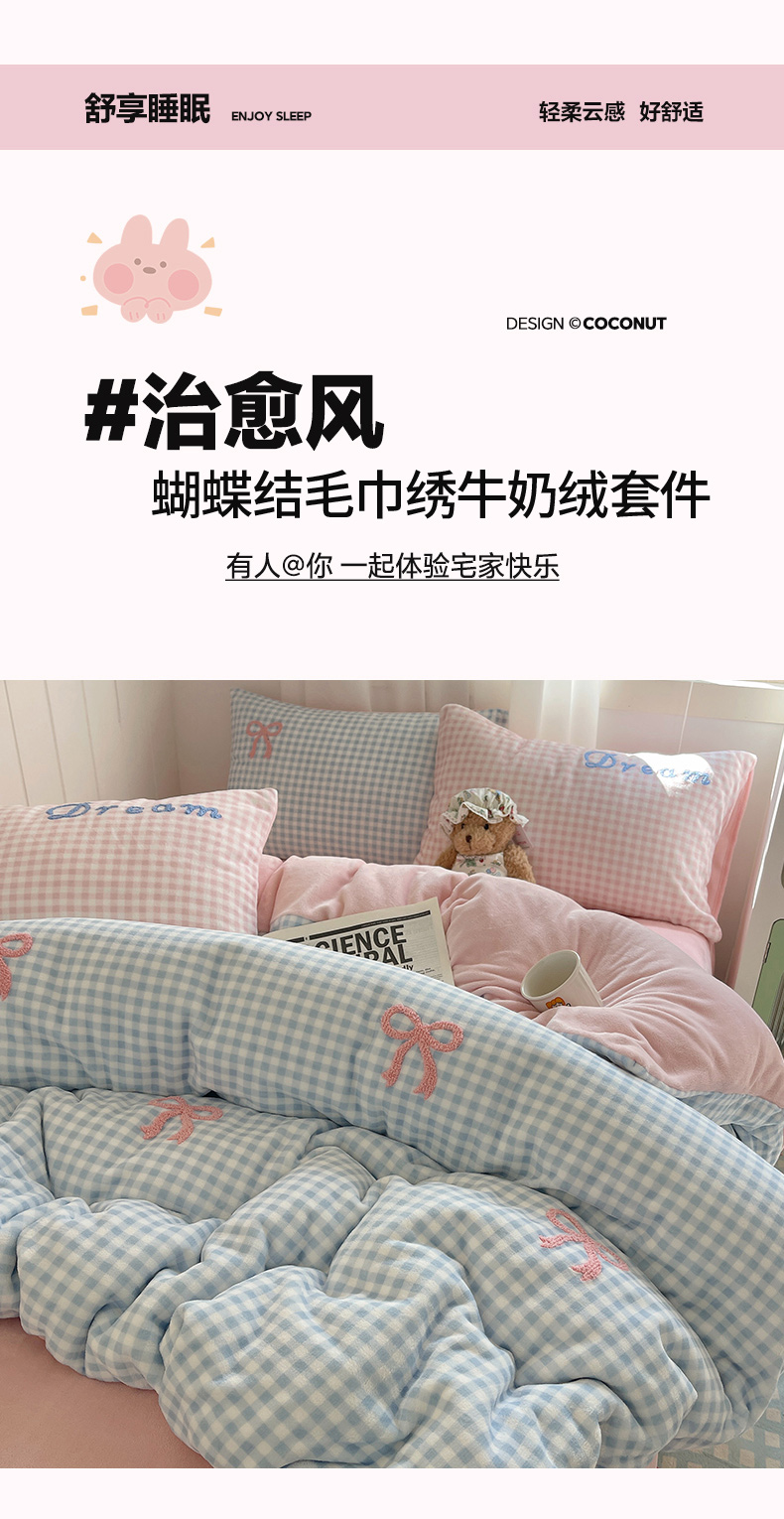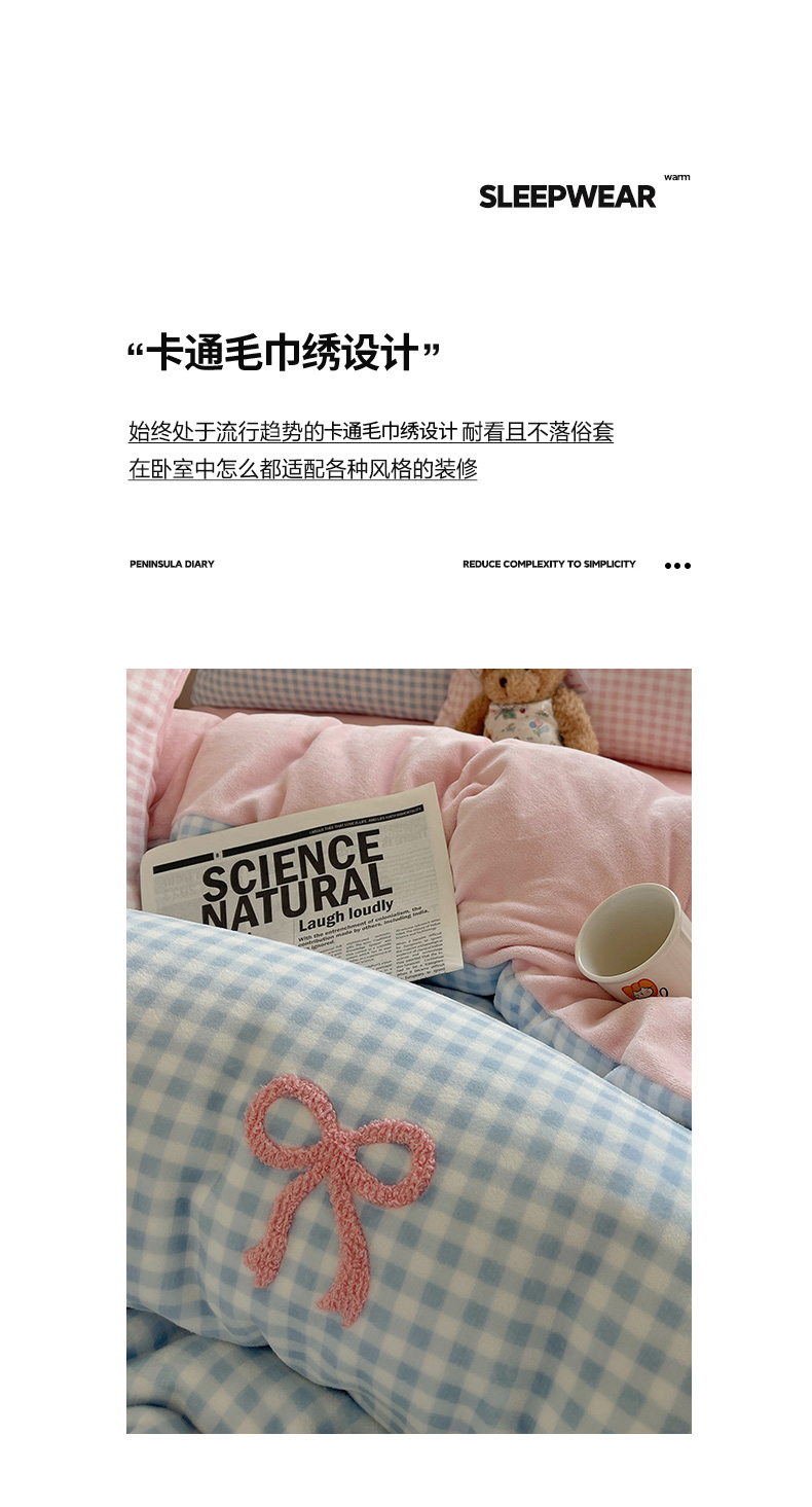(总)顾里家纺 2024新款格子蝴蝶结毛巾绣牛奶绒四件套,粉格蝴蝶结,粉蓝蝴蝶结,黄格蝴蝶结,蓝格蝴蝶结,绿格蝴蝶结