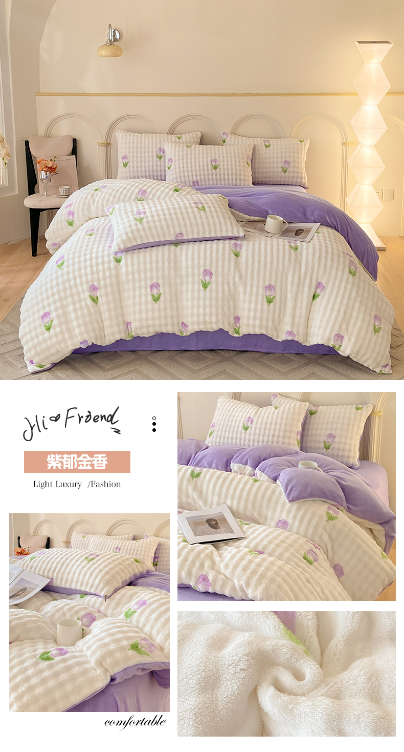 商品名称:逸尚阁 2024新款牛奶绒印花单被套系列 紫郁金香