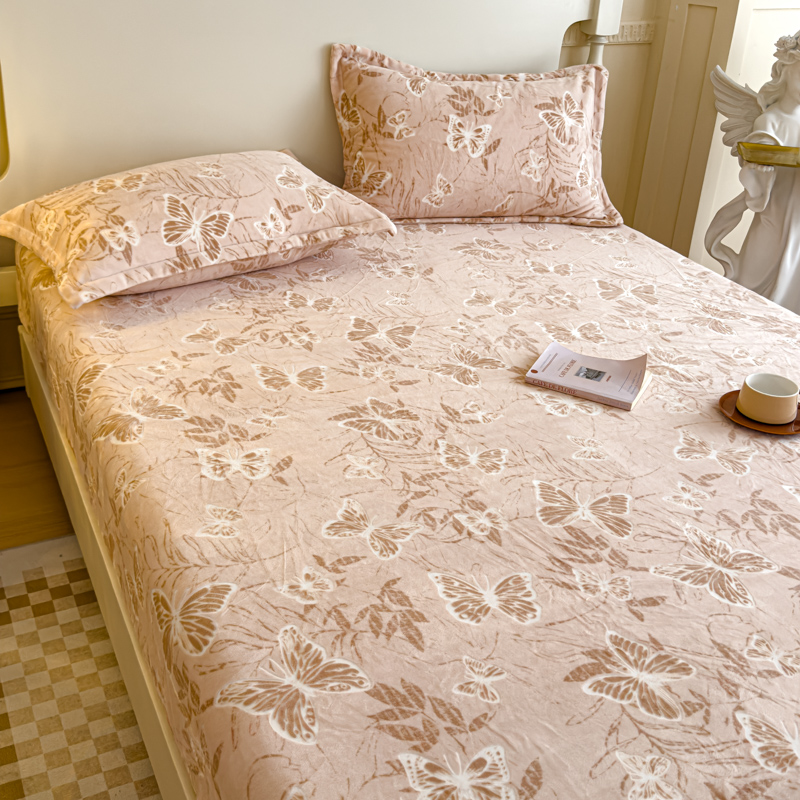金丝鸟家纺 2024新款加厚240g立体雕花牛奶绒床笠 蝴蝶飞 咖