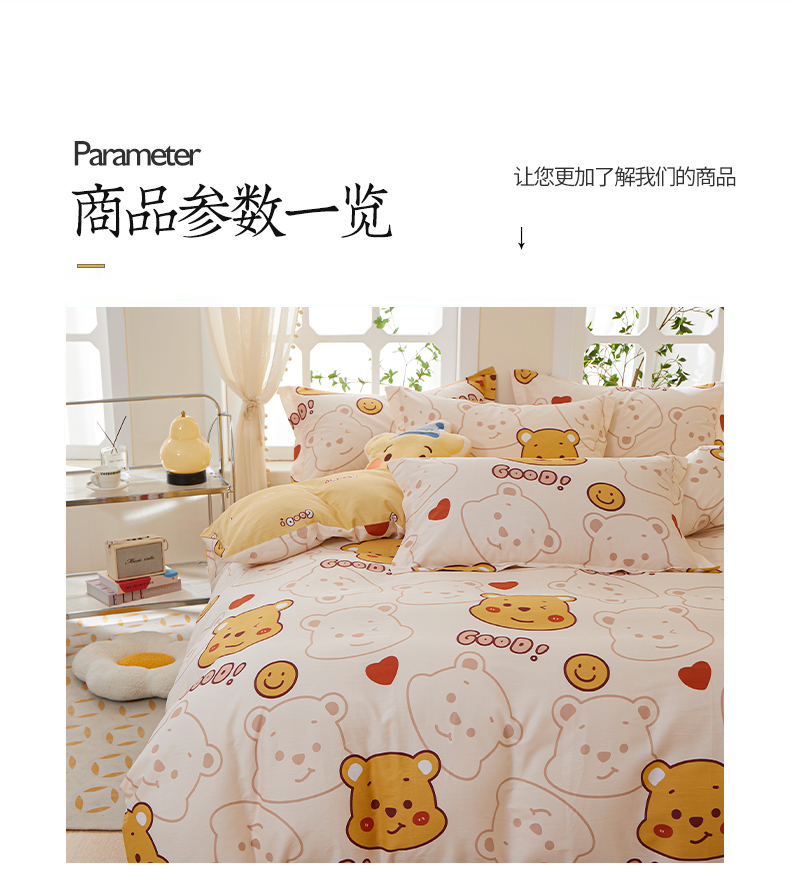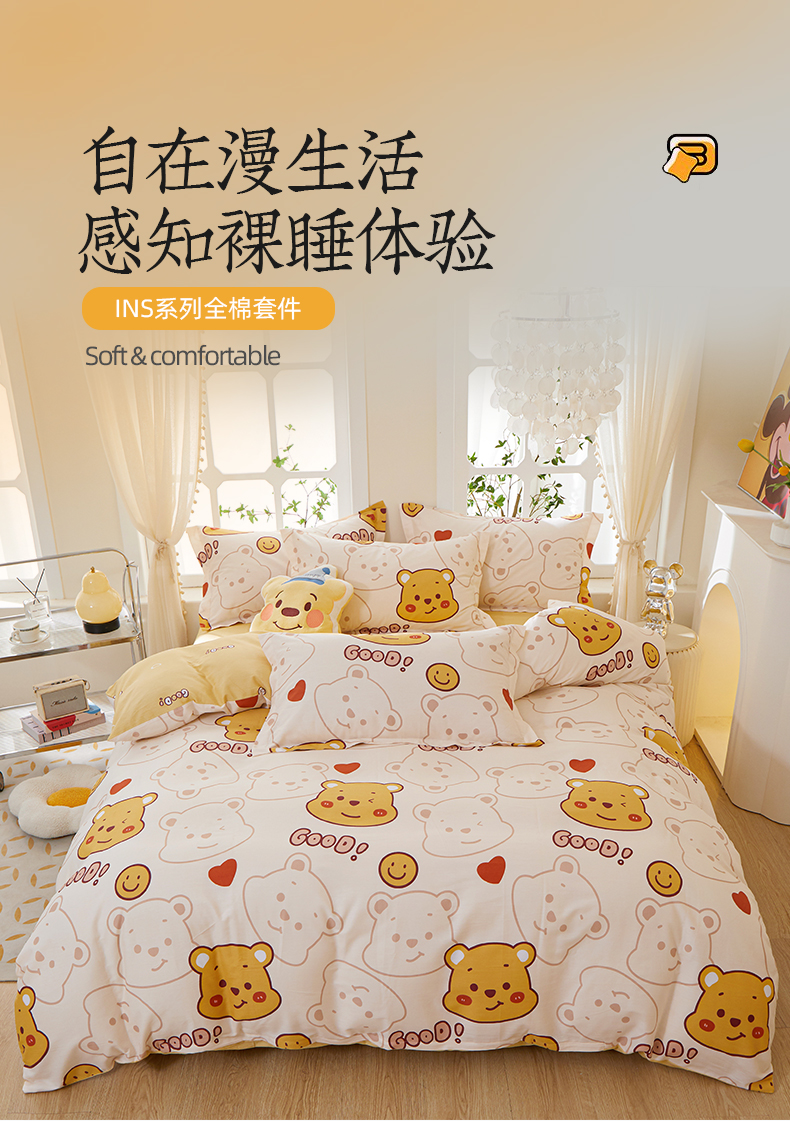 当前位置: 91家纺网 > 商品网购 > 床品套件 > 四件套 > 全棉活性四件套 > 钰伶 新款全棉简约12868印花纯棉四件套(预留6厘米缩水尺寸)欢乐萌熊