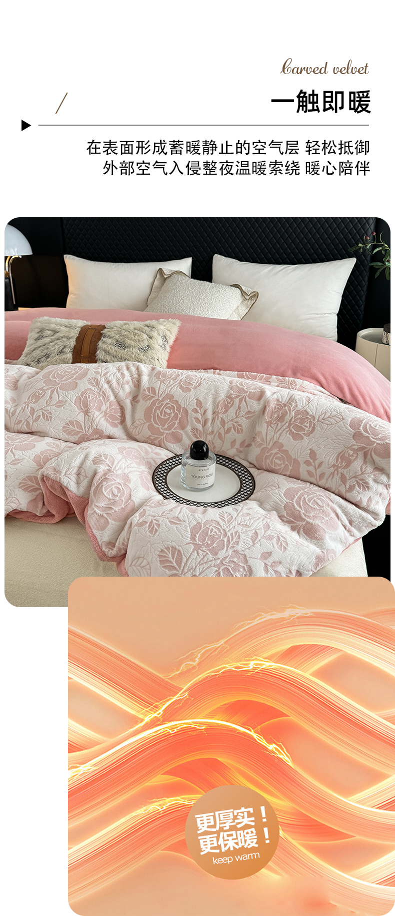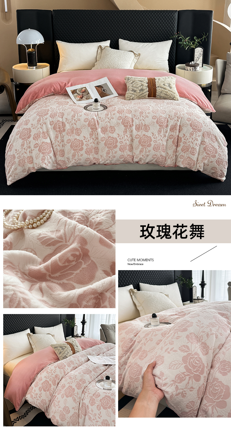 当前位置: 91家纺网 > 商品网购 > 床上用品 > 被套 > 金盛纺 2024新款高克重雕花绒单被套 玫瑰花舞