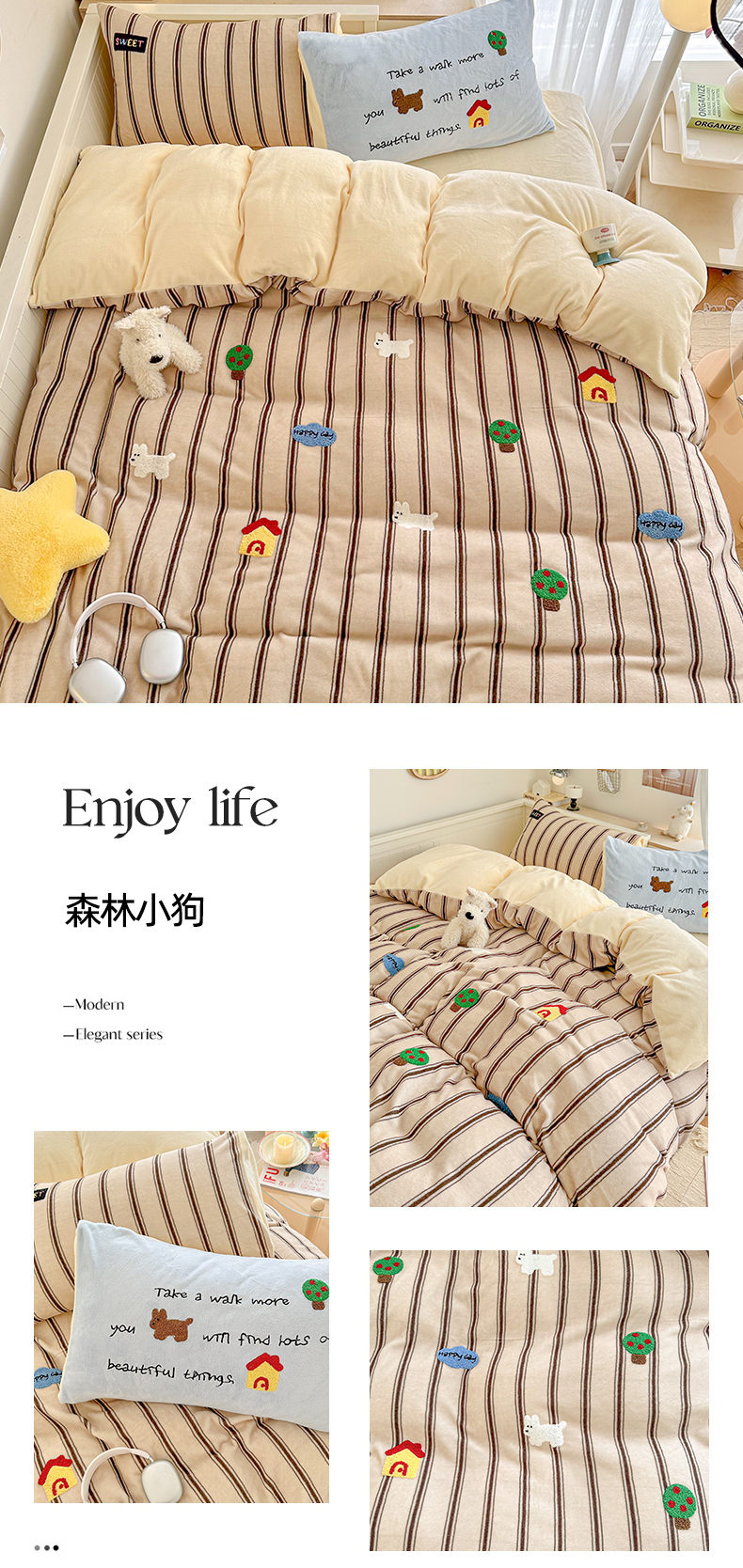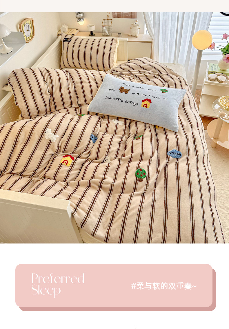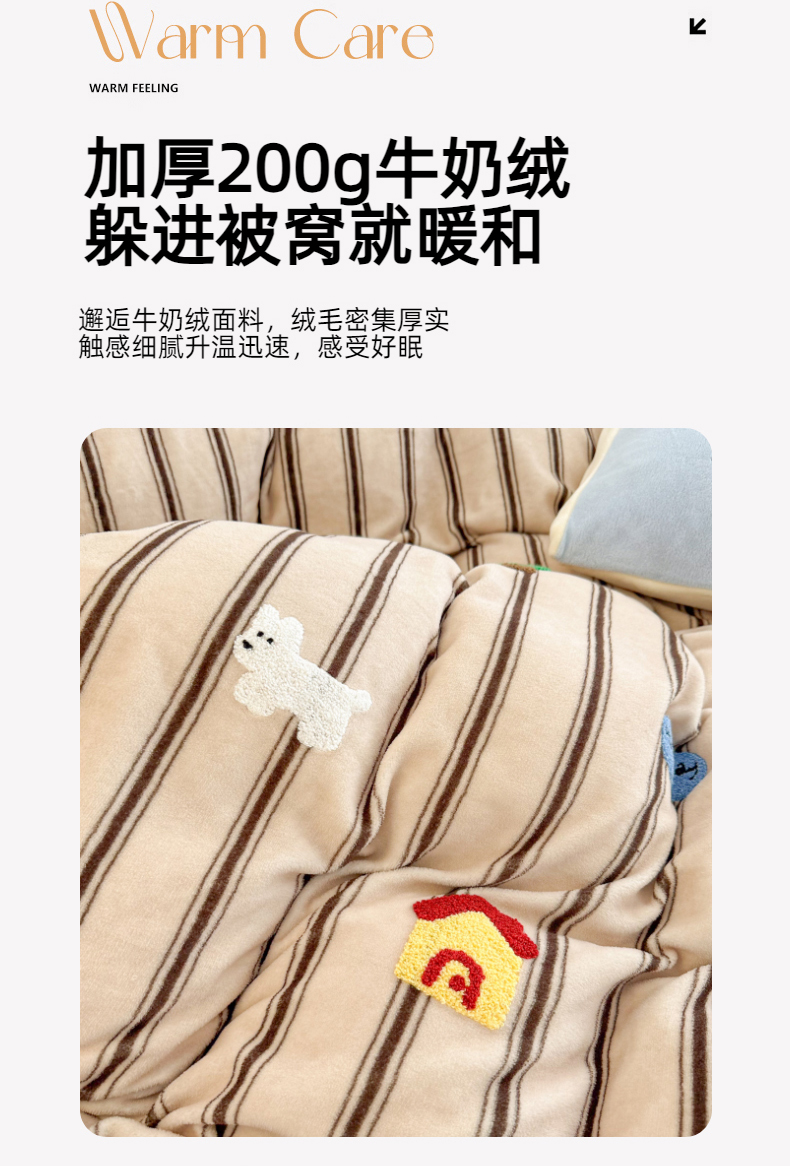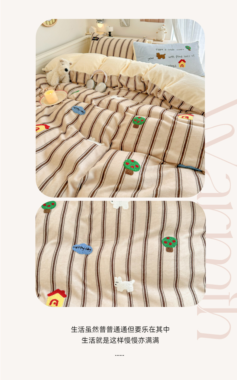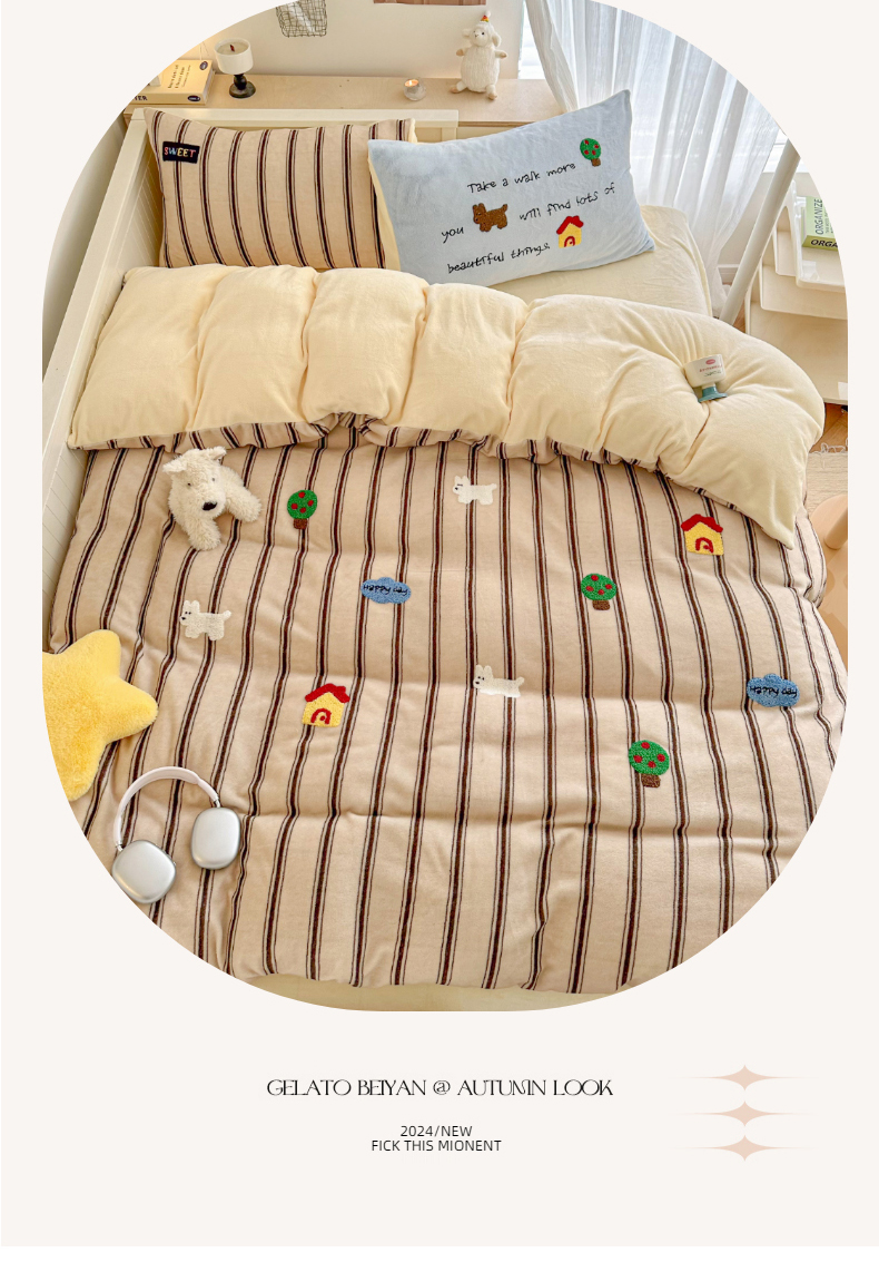 (总)呗旺鹿 2025新款A版全棉B版牛奶绒四件套,冰岛小马,萌星,糖果小马,小狗笔记,费尔岛小熊