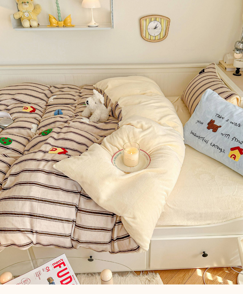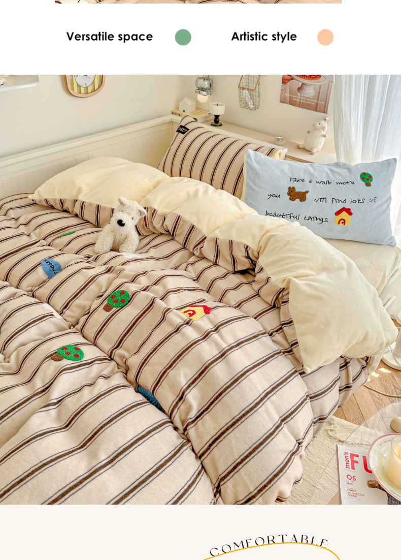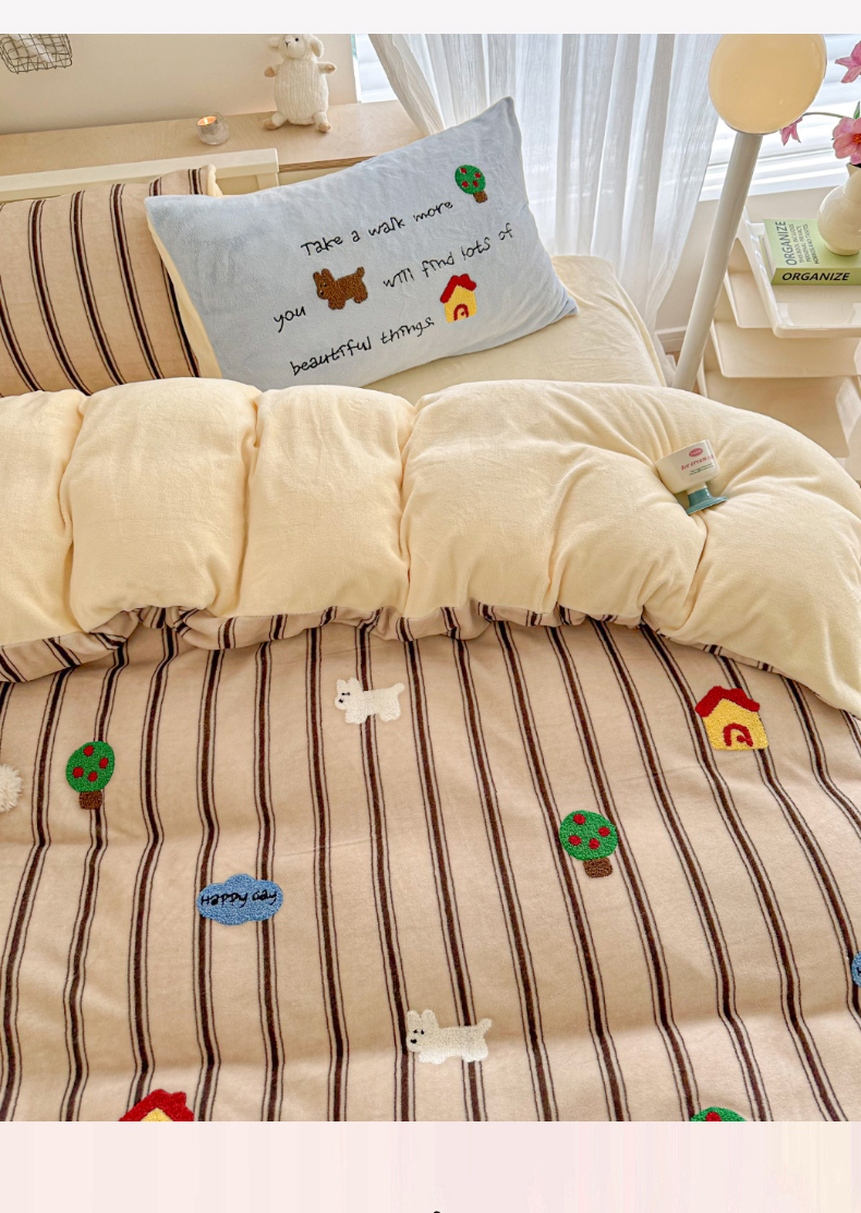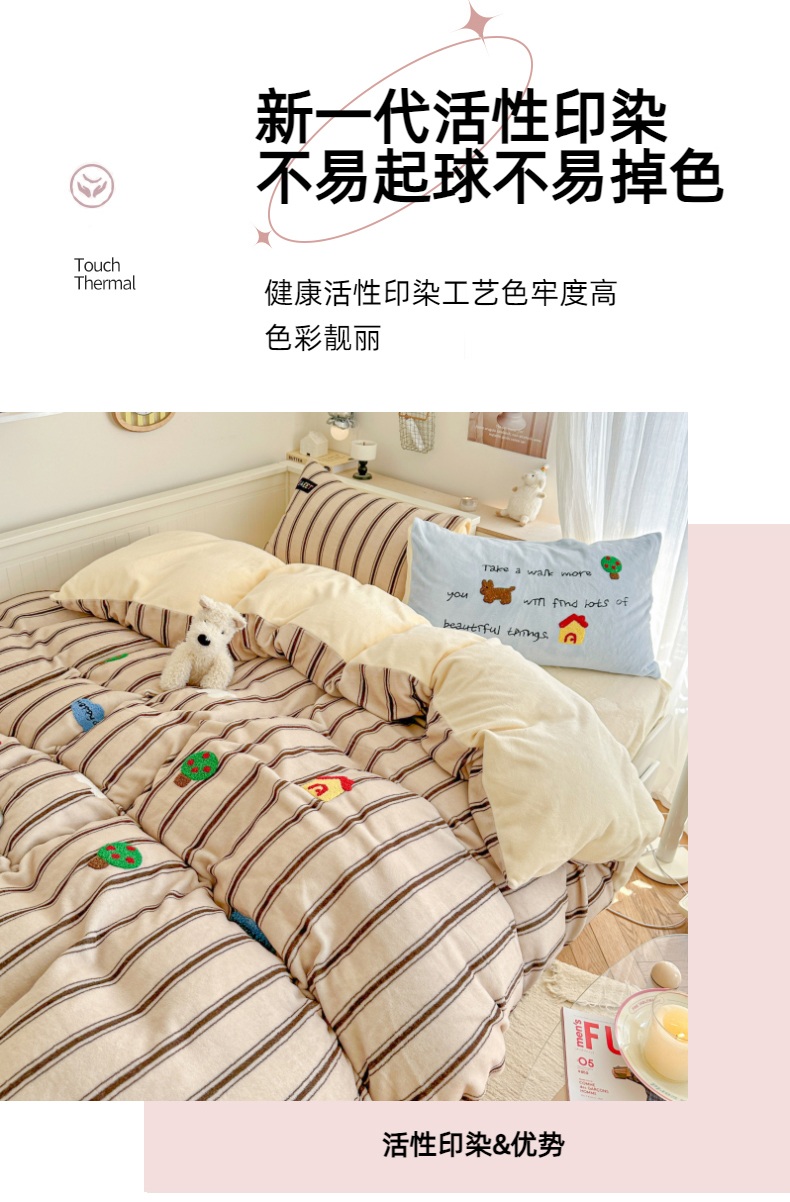 (总)呗旺鹿 2025新款卡通棉+绒牛奶绒棉绒四件套,心意满满,快乐魔法,闹钟麦田