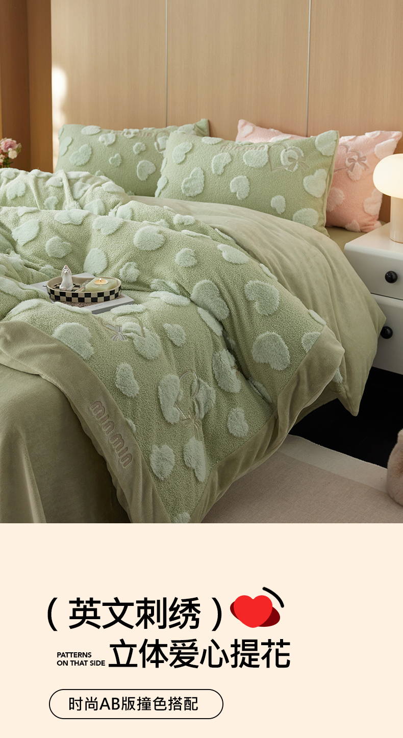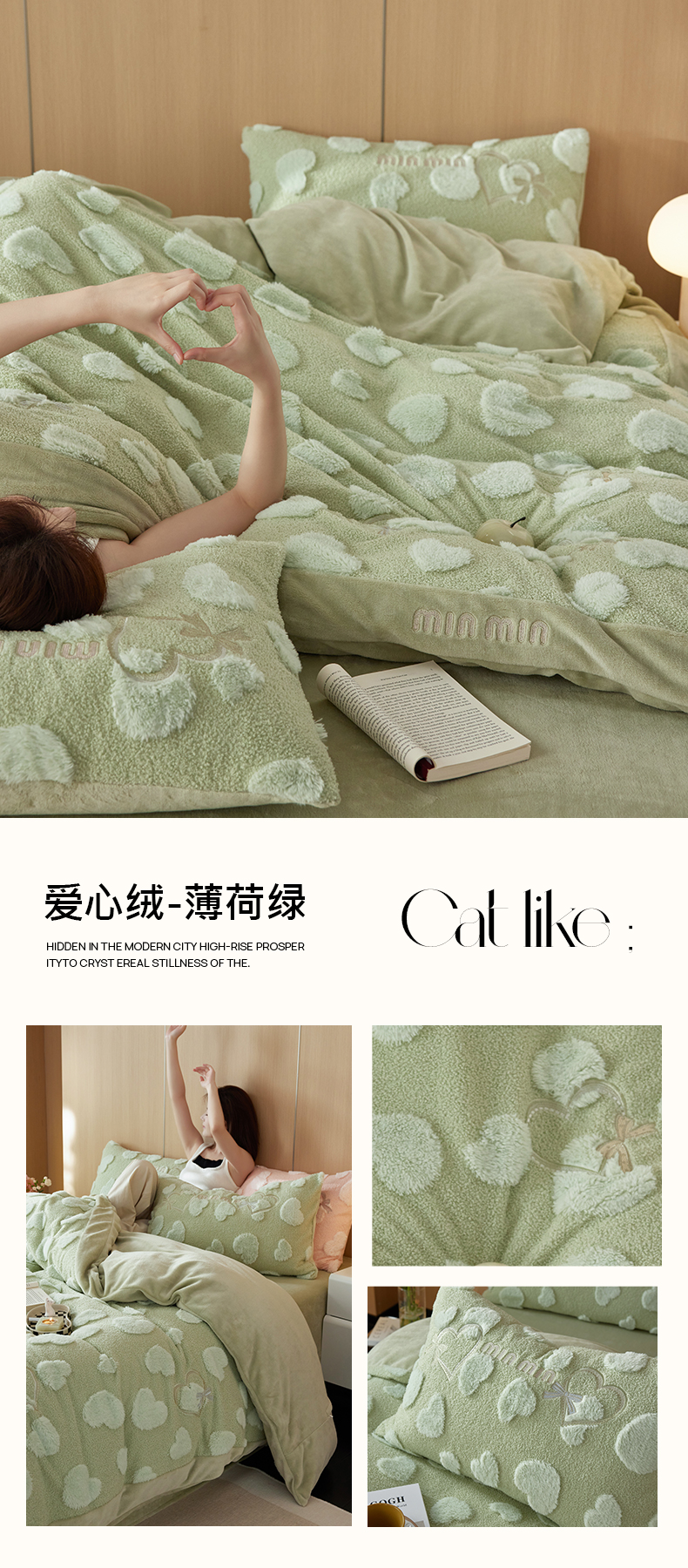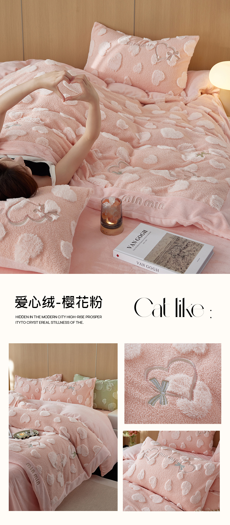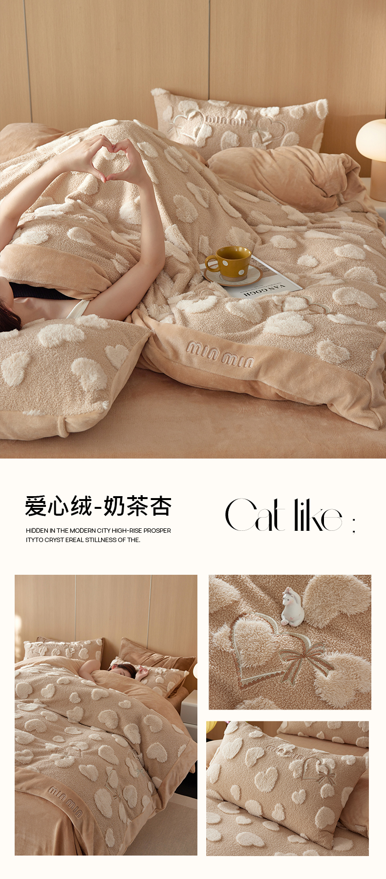 (总)安莱生活 2024新款minmin泰迪绒立体提花爱心四件套