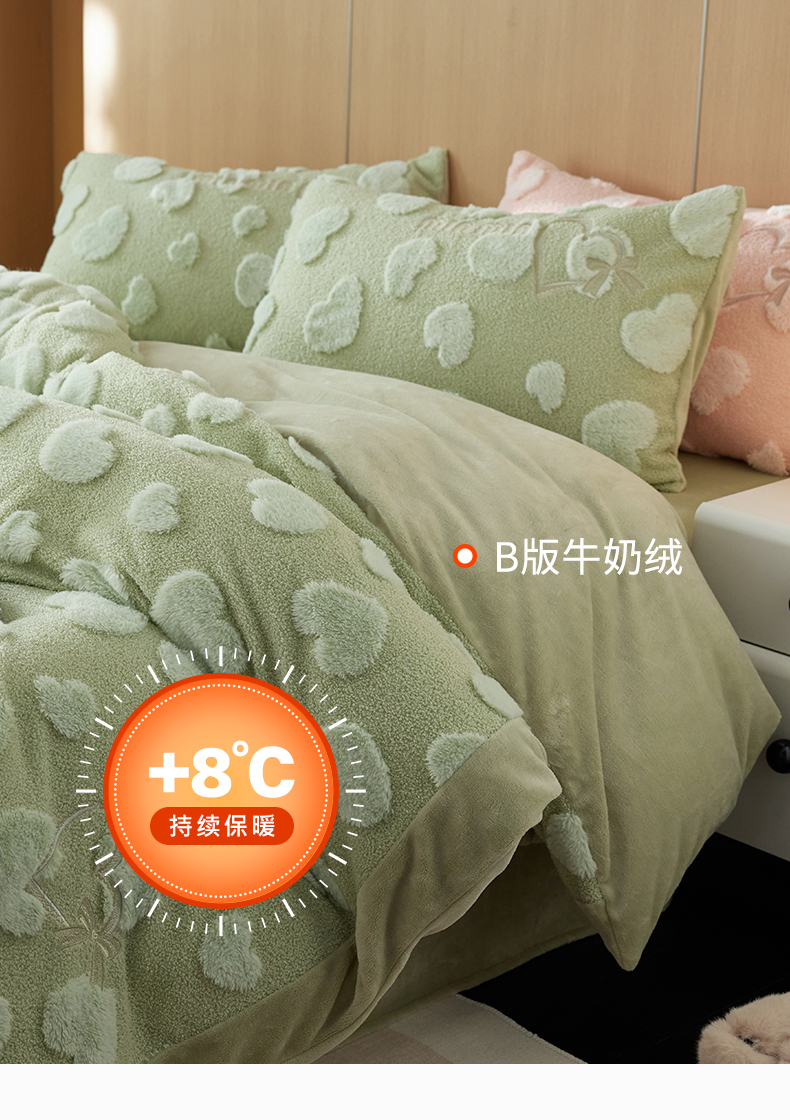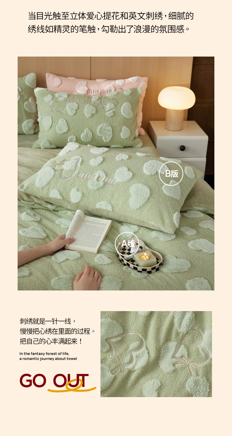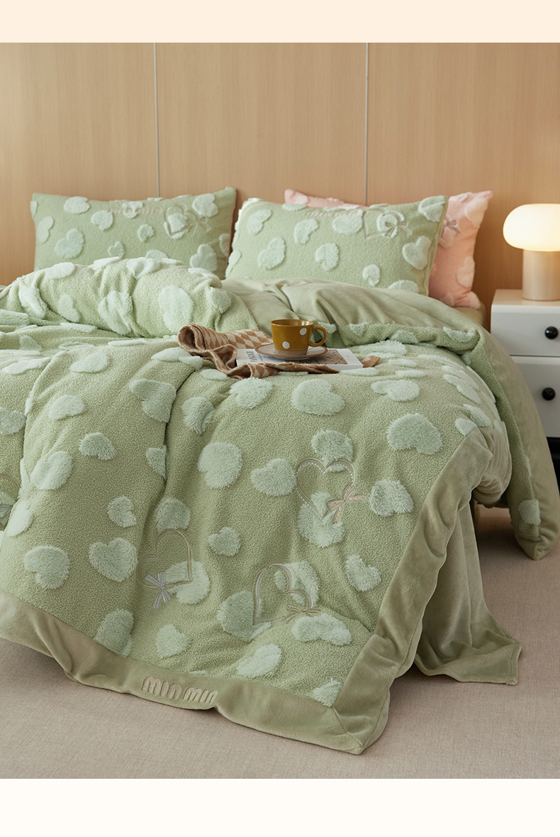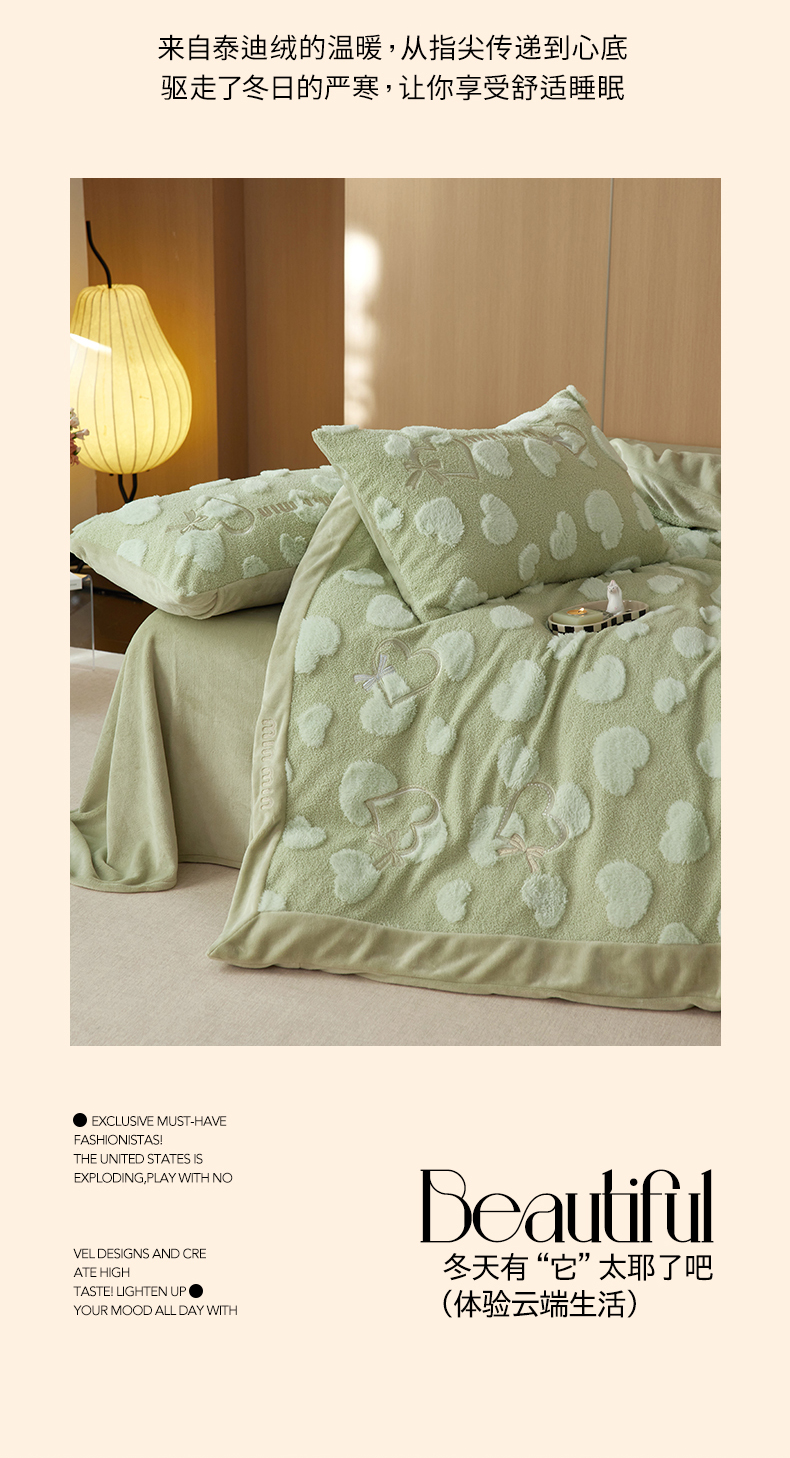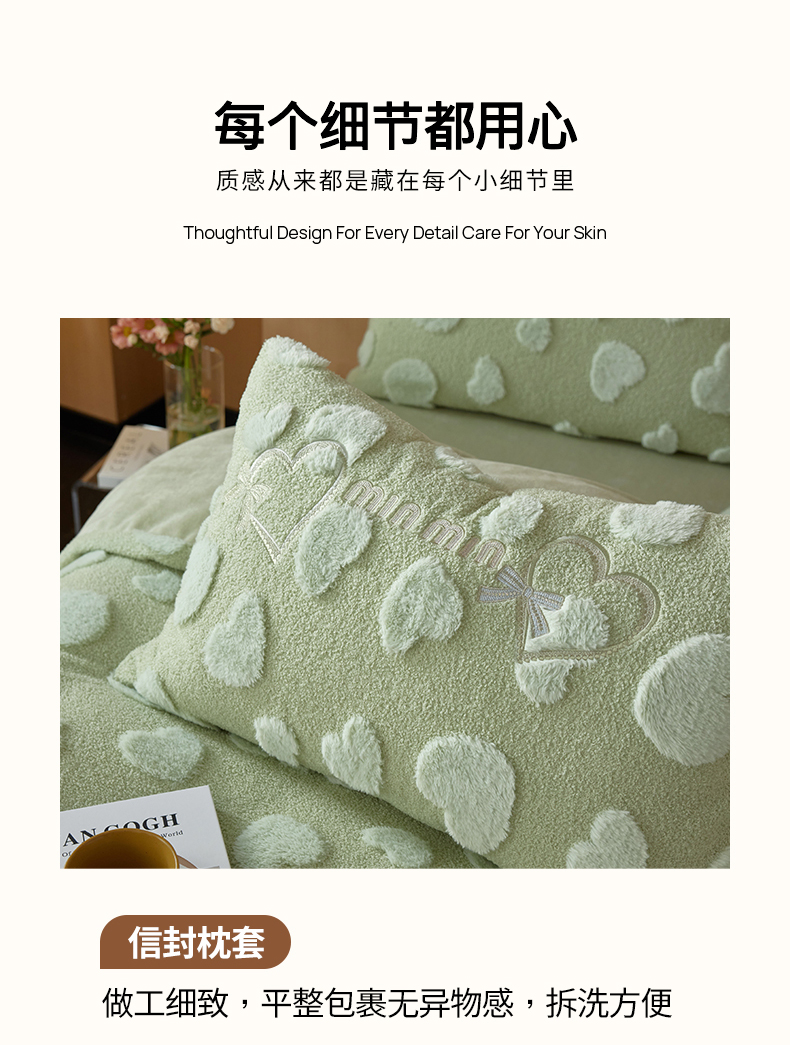 (总)安莱生活 2024新款minmin泰迪绒立体提花爱心四件套