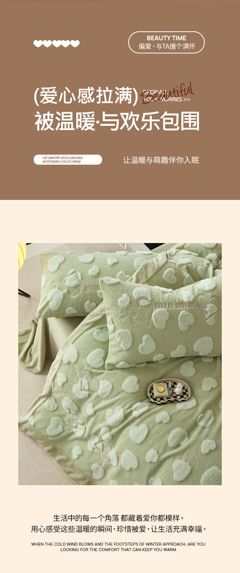 商品名称:(总)安莱生活 2024新款minmin泰迪绒立体提花爱心四件套