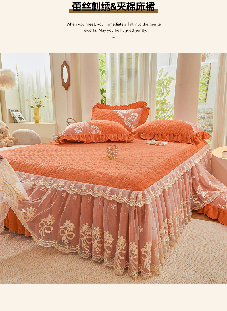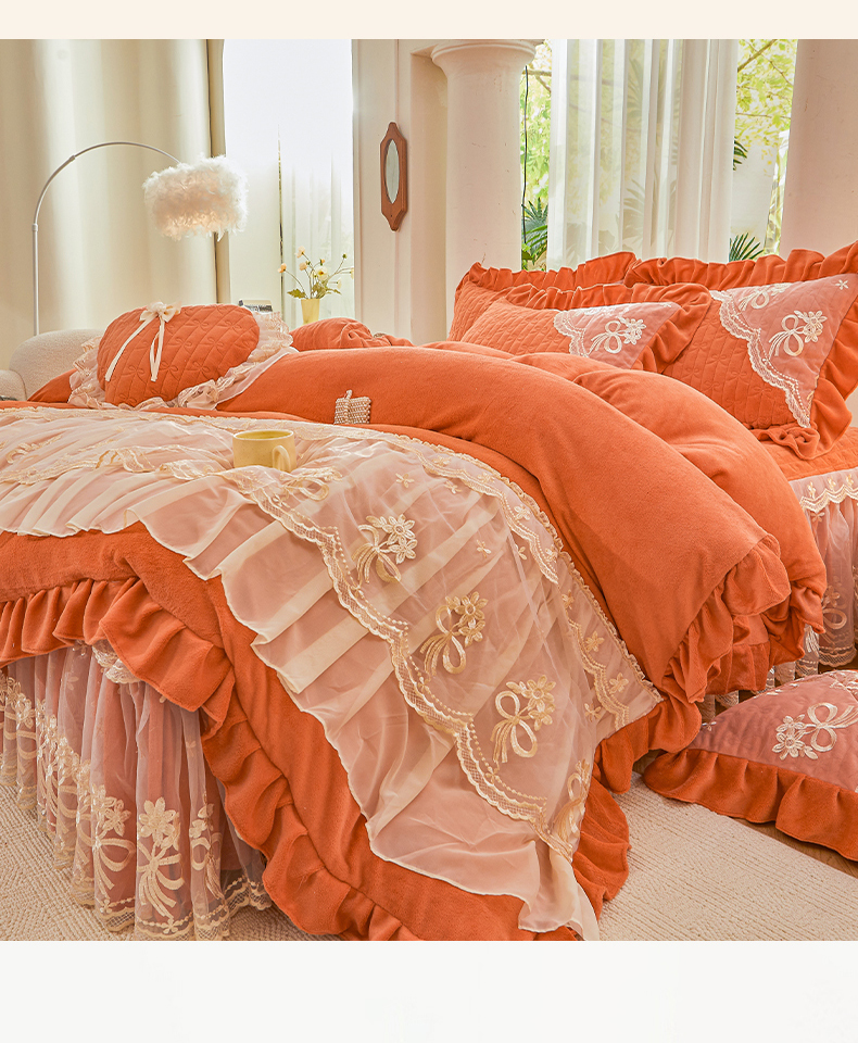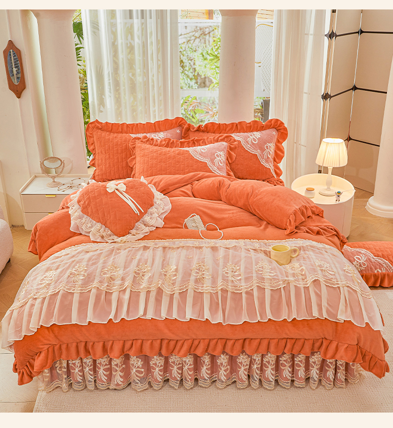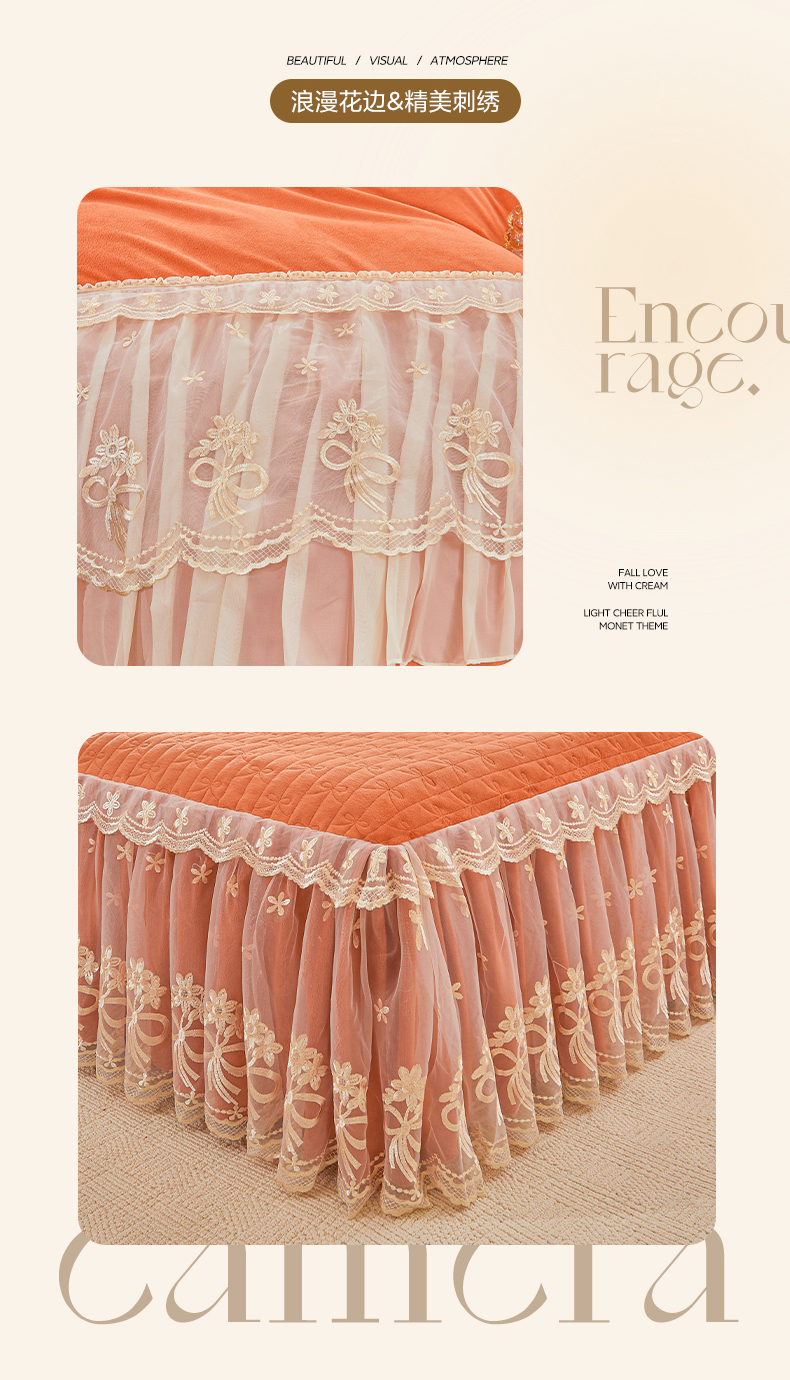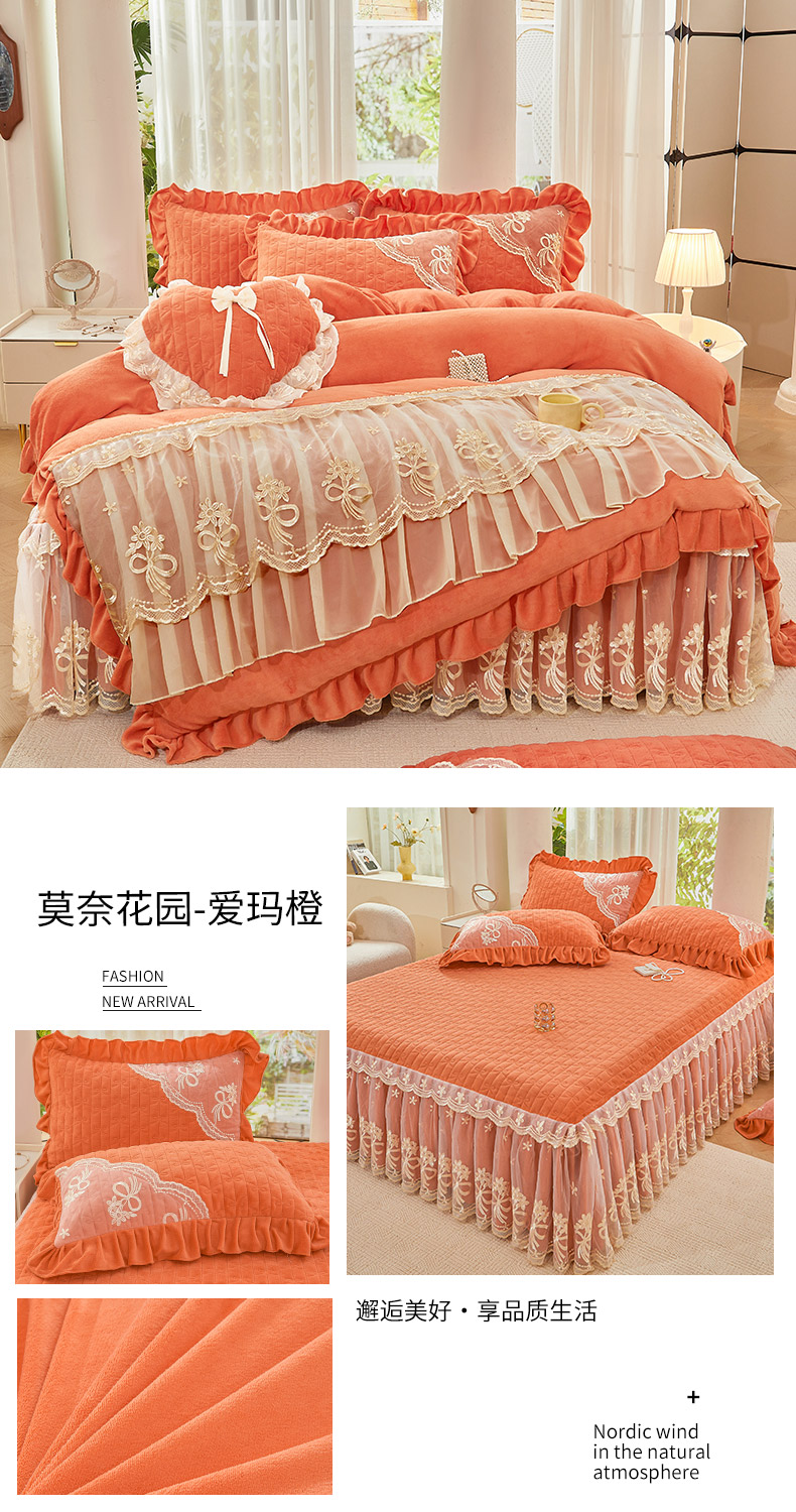 当前位置: 91家纺网 > 商品网购 > 床品套件 > 四件套 > 牛奶绒四件套 > 2024新款加厚牛奶绒蕾丝刺绣床裙四件套-莫奈花园系列 莫奈花园-爱玛橙
