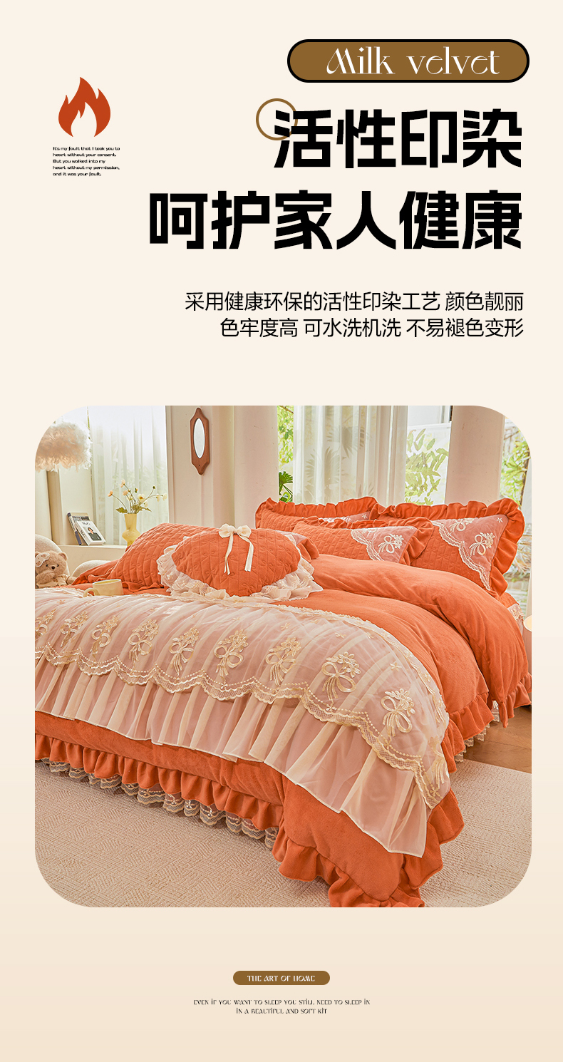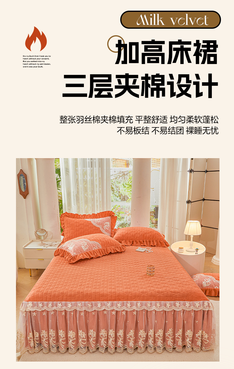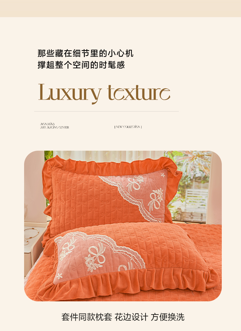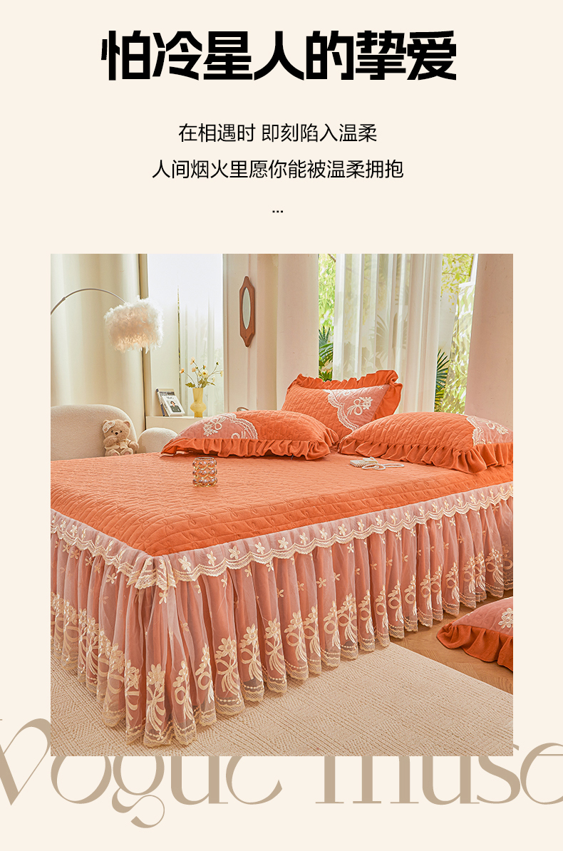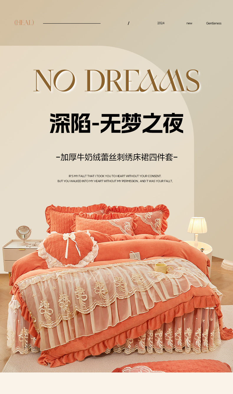 当前位置: 91家纺网 > 商品网购 > 床品套件 > 四件套 > 牛奶绒四件套 > 2024新款加厚牛奶绒蕾丝刺绣床裙四件套-莫奈花园系列 莫奈花园-爱玛橙