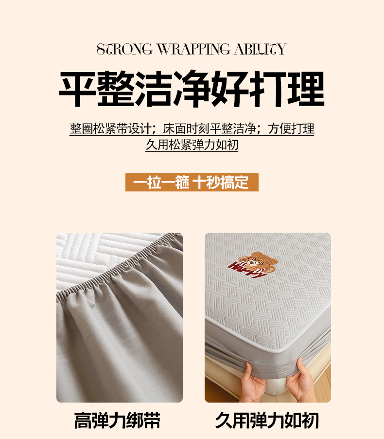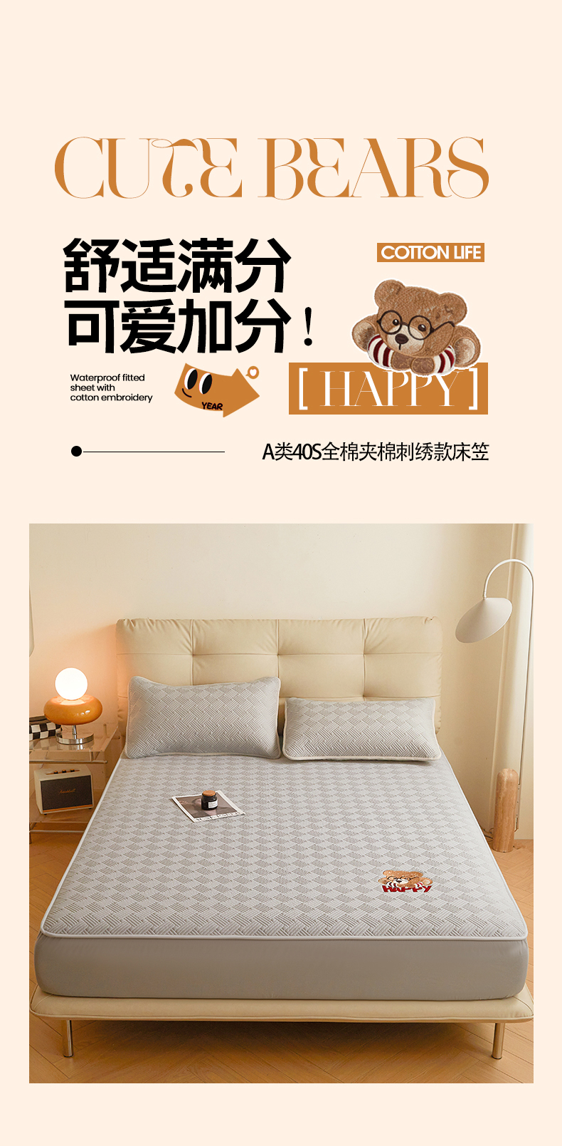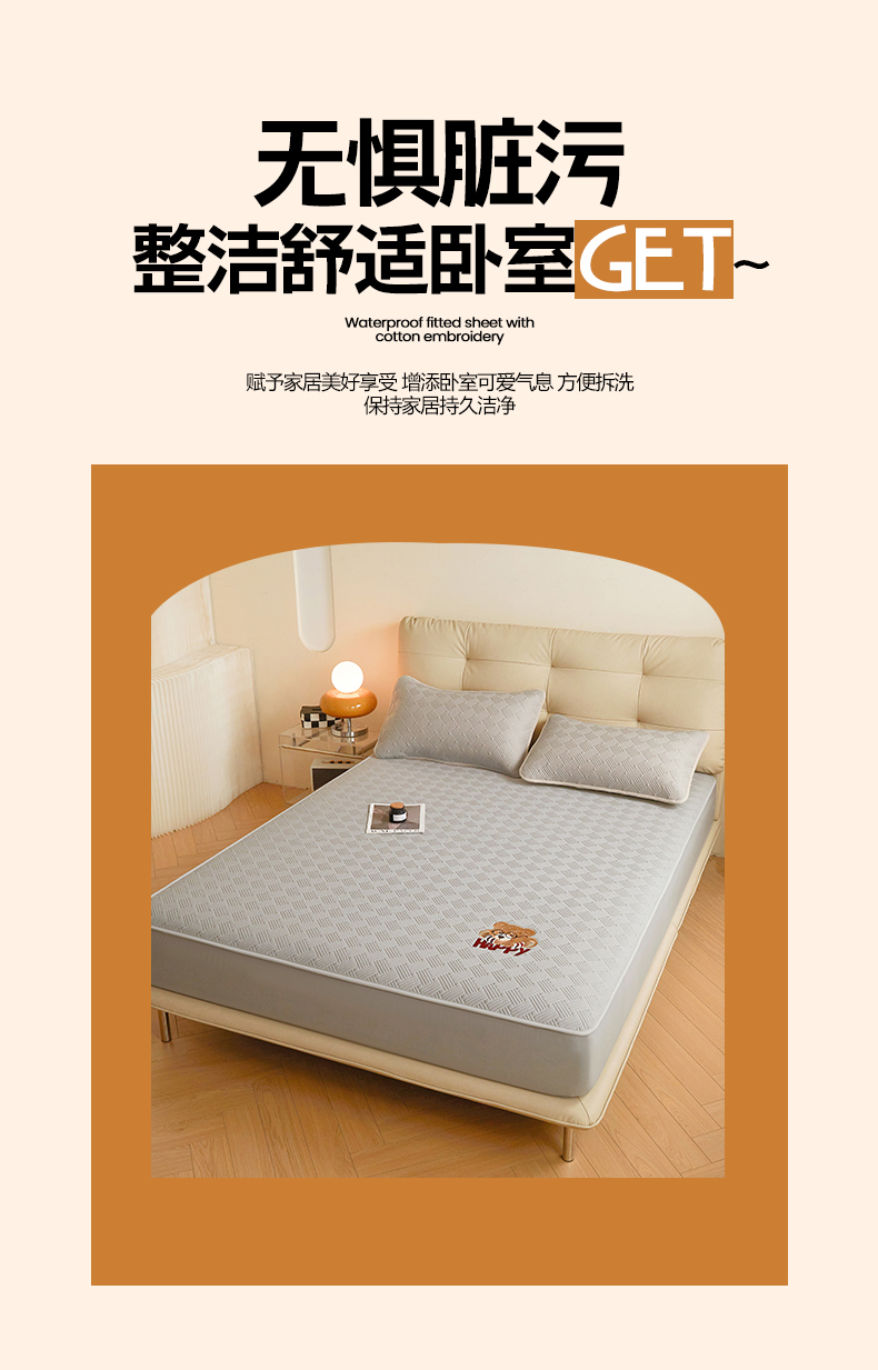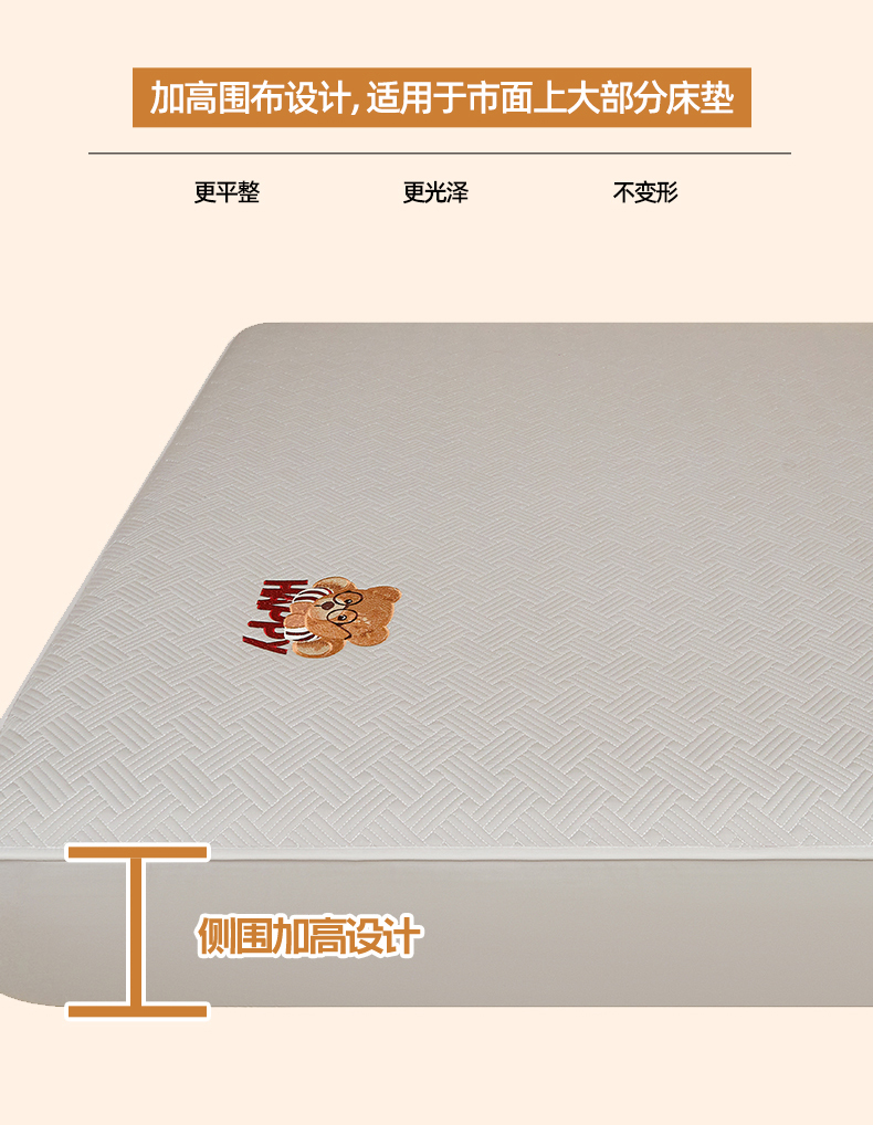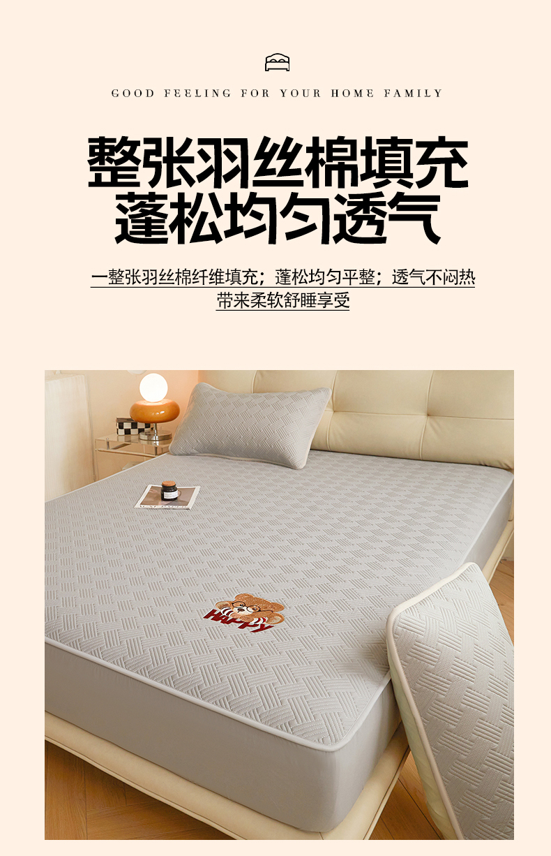 暖季家纺 2025新款40支长绒棉刺绣款全棉夹棉床笠支持定制 博士小熊-山灰