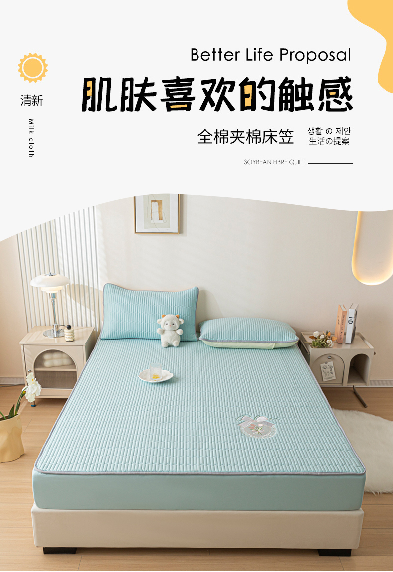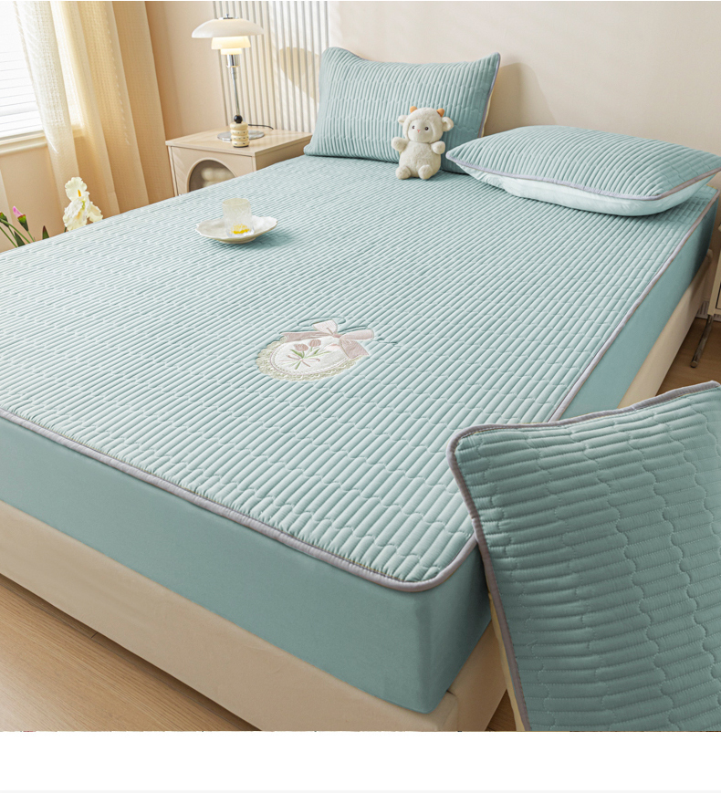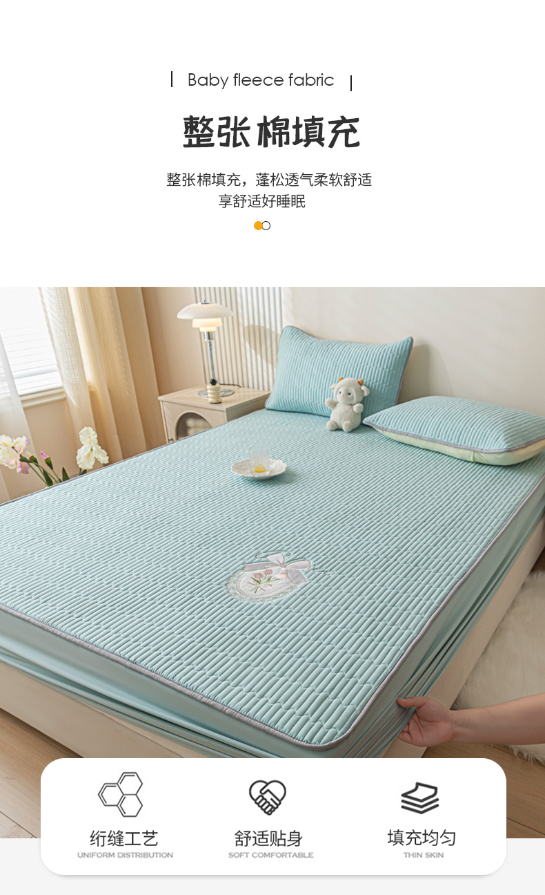 • 91家纺网 家纺一手货源 找家纺 暖季家纺 2025新款40支长绒棉刺绣款全棉夹棉床笠支持定制 全棉夹棉蝴蝶结-天空蓝