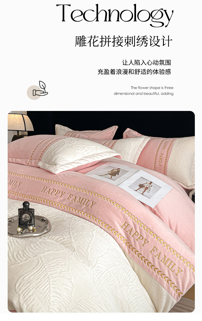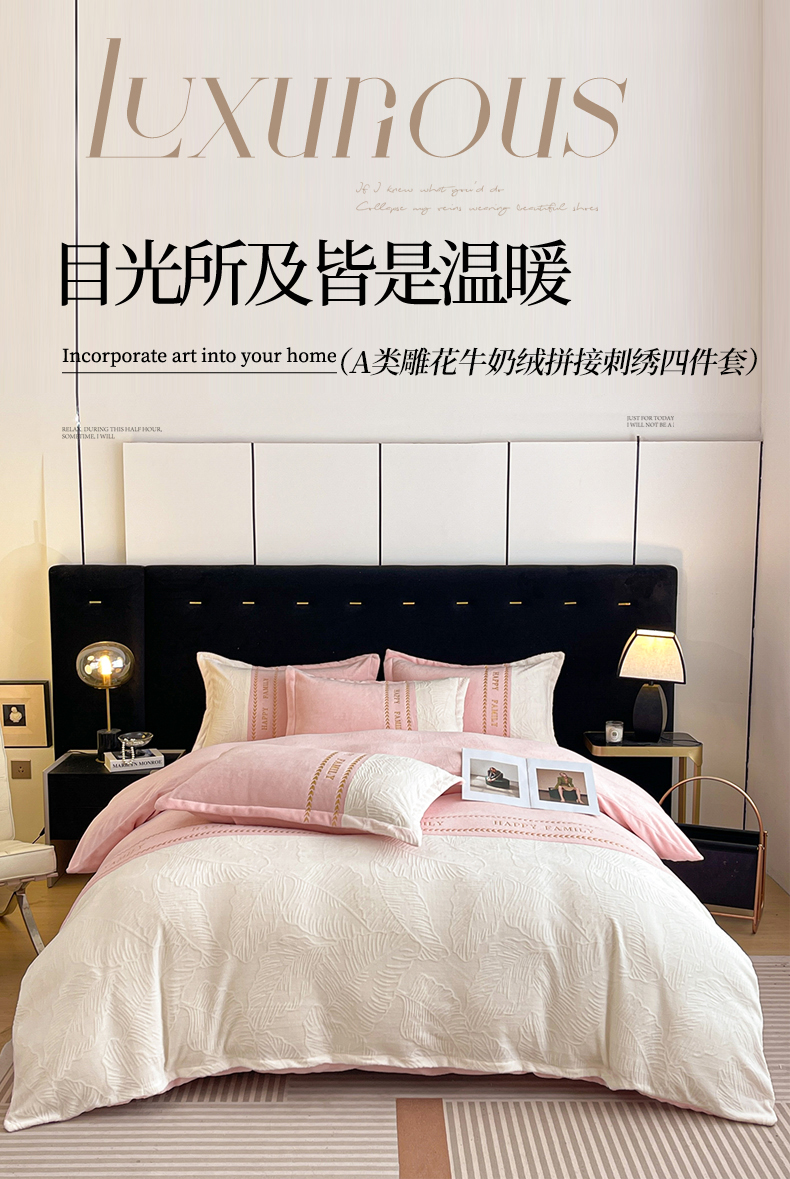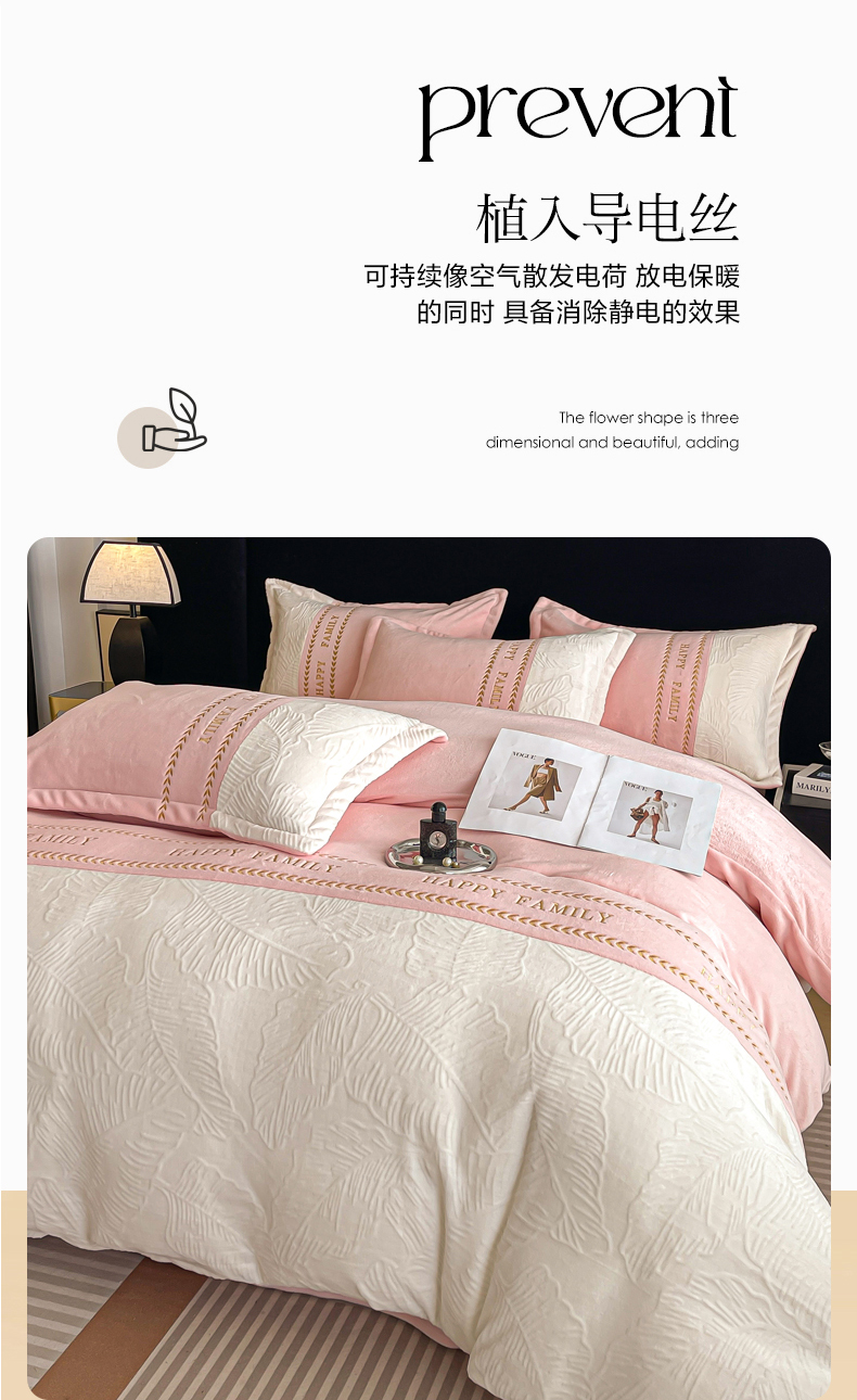 当前位置: 91家纺网 > 商品网购 > 床品套件 > 四件套 > 牛奶绒四件套 > 恒尚居 2024新款母婴级牛奶绒四件套--芭蕉初心浮雕系列 芭蕉初心浮雕--粉米芙蓉