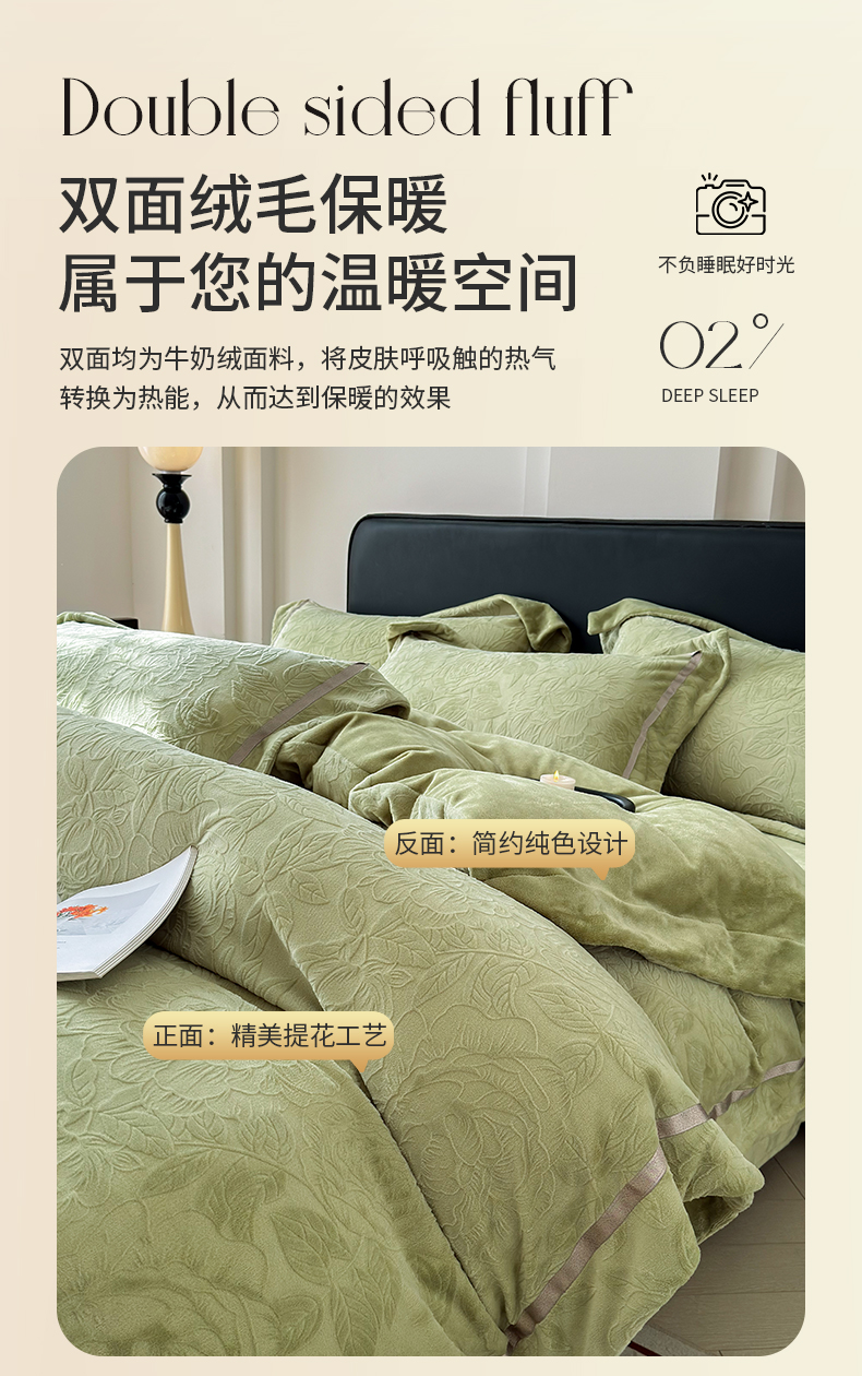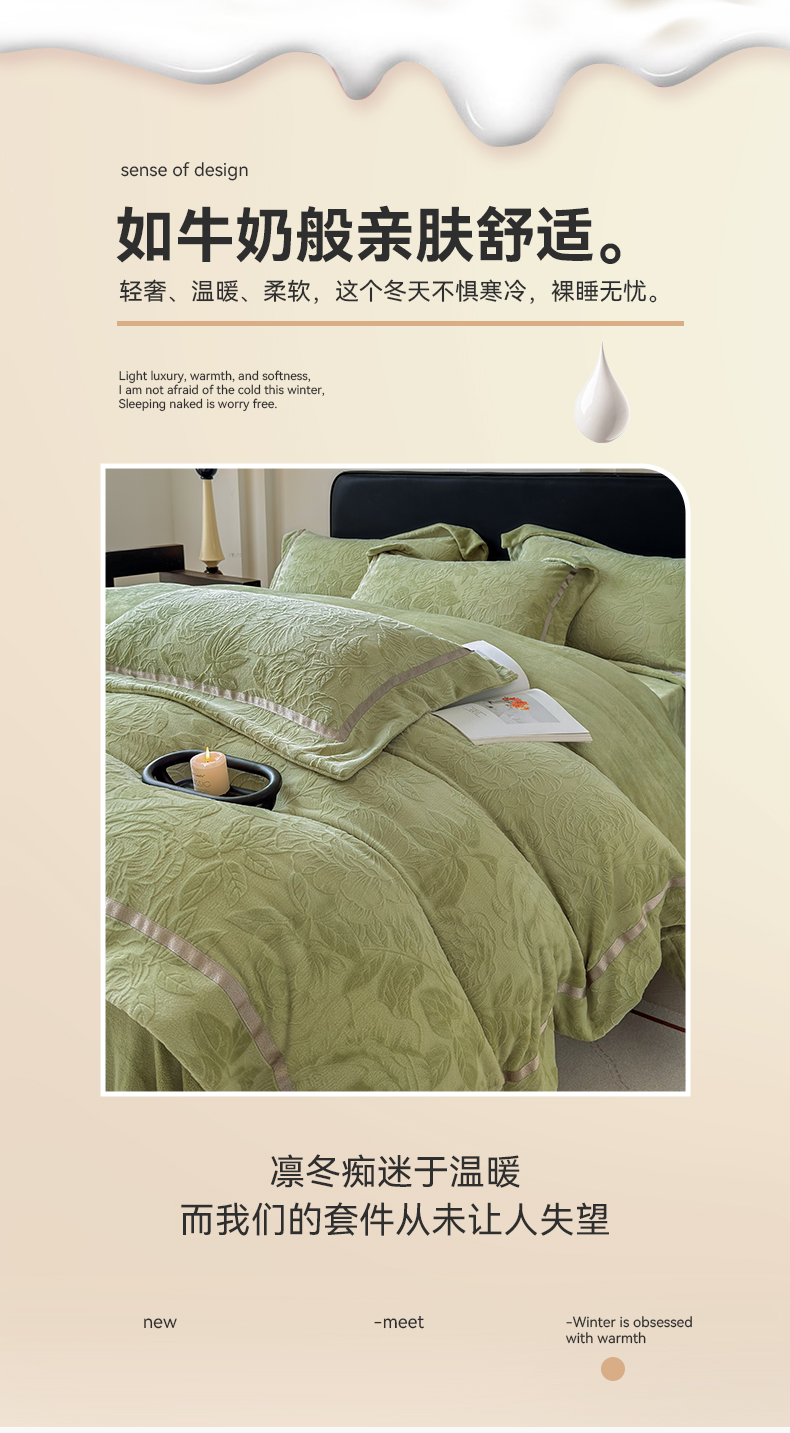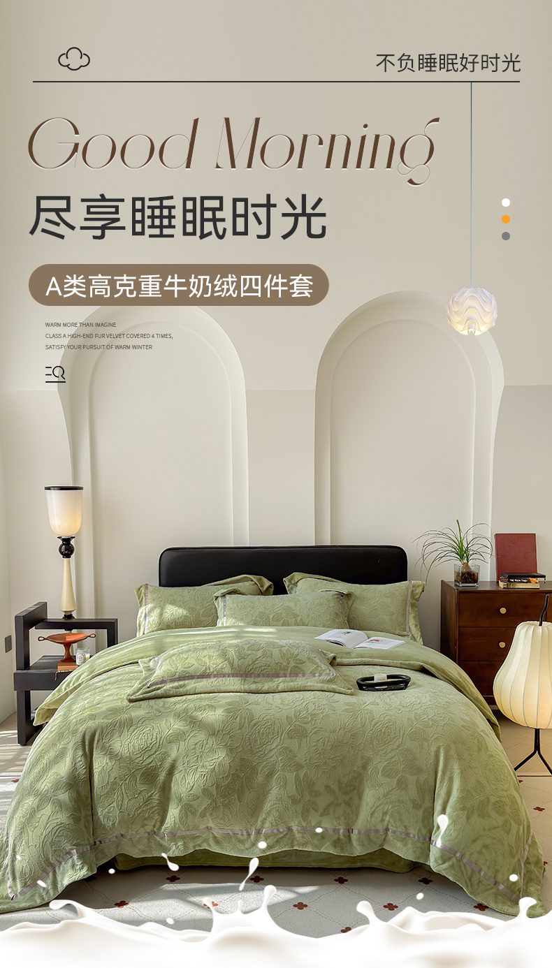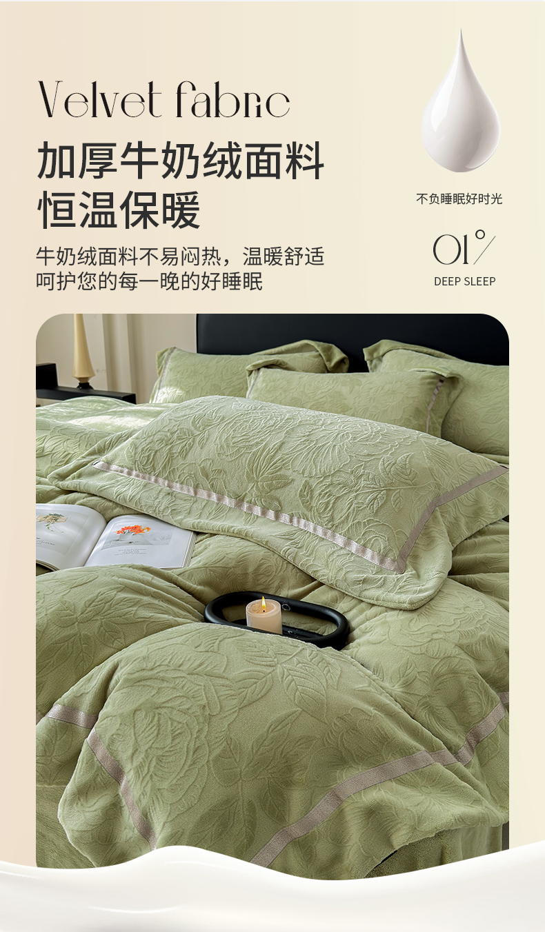 (总)家居1号家纺 2025新款230克全消光瑞丽牛奶绒烂花四件套(控价标准258加大278 会员优惠10元),瑞丽-卡其,瑞丽-苹果绿,瑞丽-绅士灰,瑞丽-温馨蓝,瑞丽-雅粉,瑞丽-优雅紫
