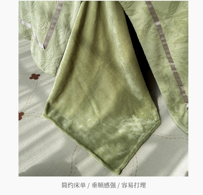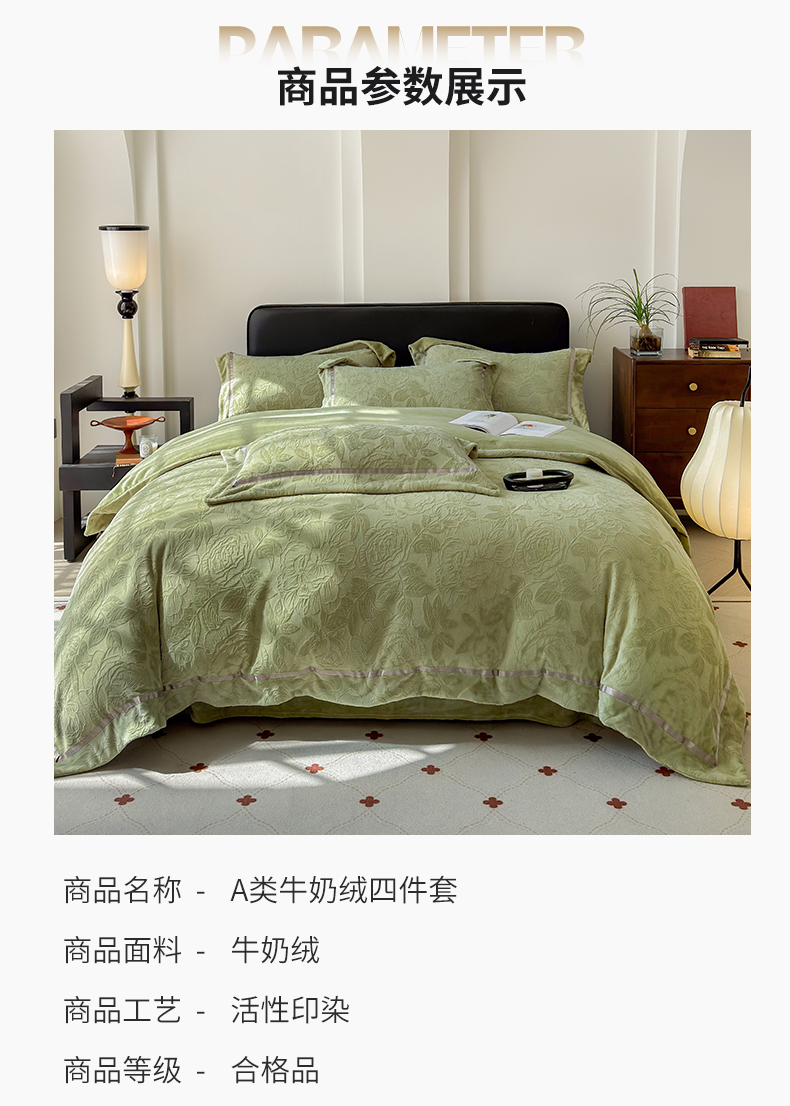 商品名称:家居1号家纺 2024新款230克牛奶绒四件套-花梦情缘 花梦情缘-草绿